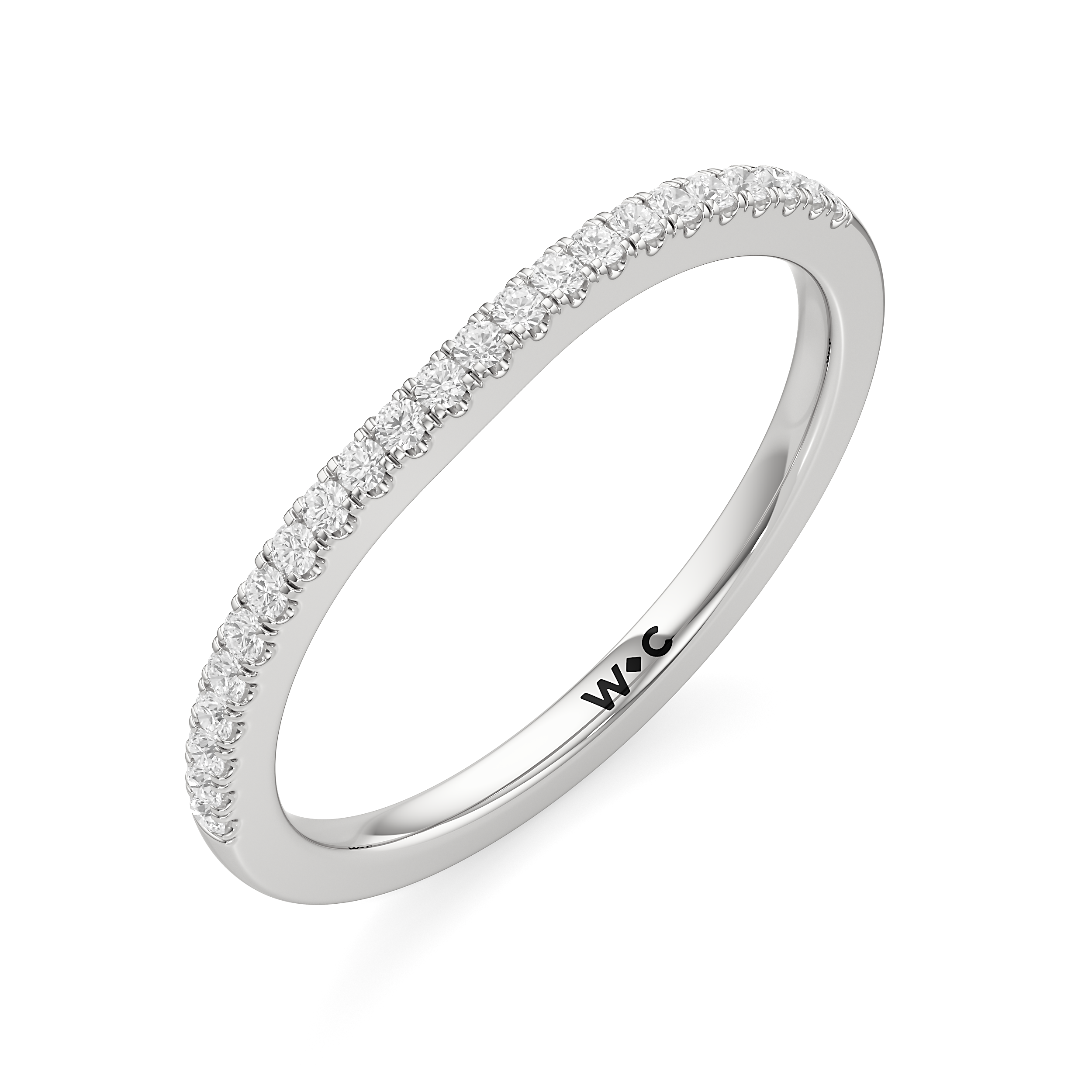 This curved diamond set wedding band is perfectly contoured to complement our The Darcy Diamond Wedding Band for a simple and sophisticated look.