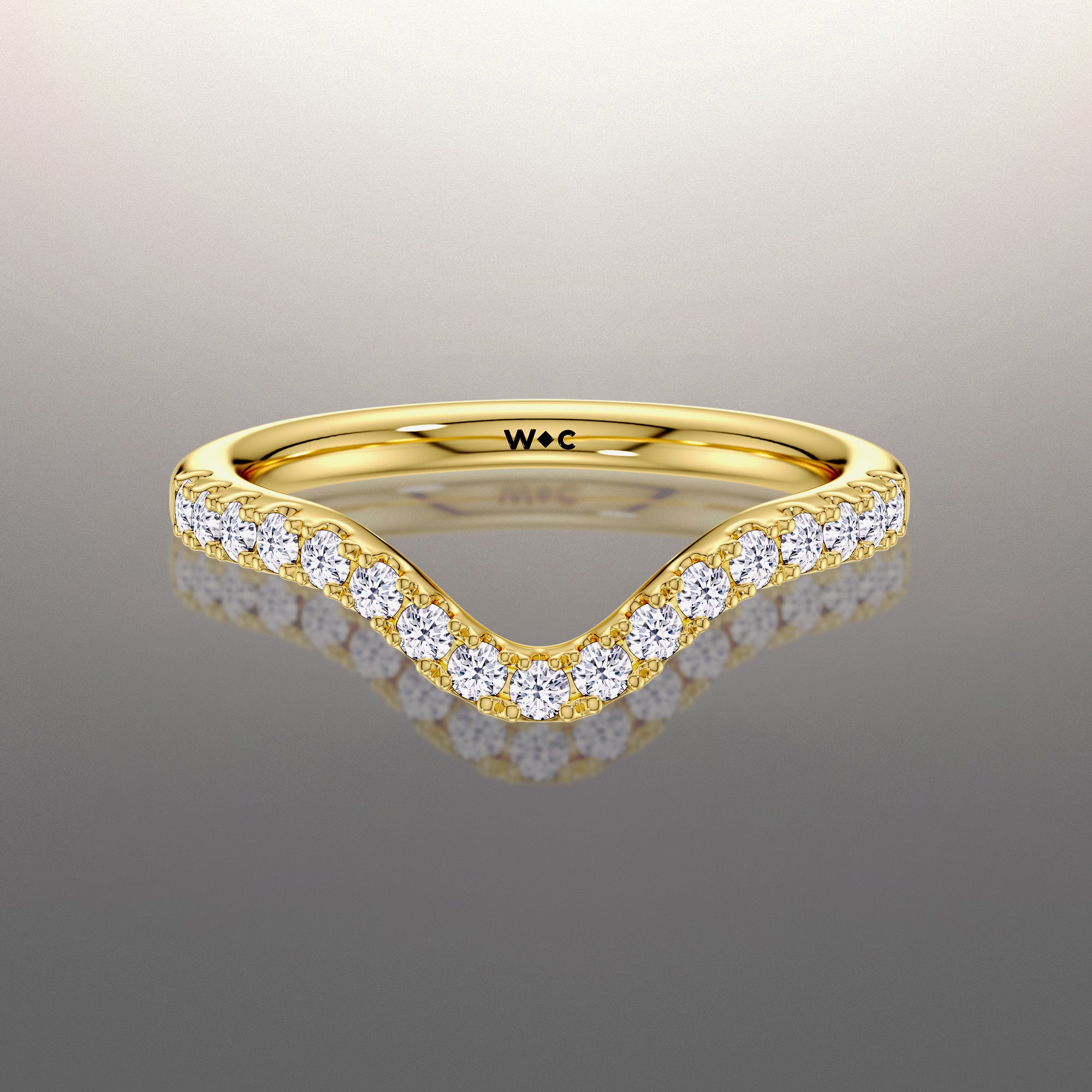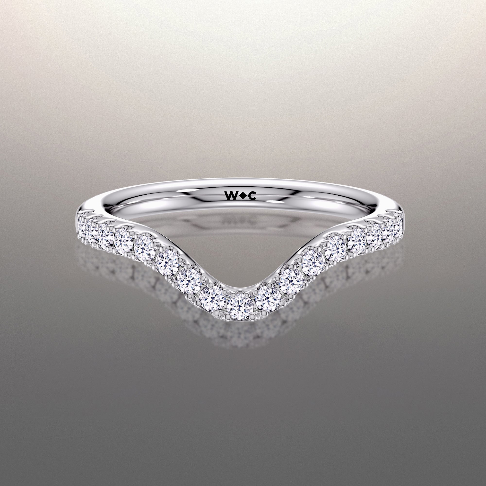 This curved diamond set wedding band is perfectly contoured to complement our the delacroix ring for a simple and sophisticated look.