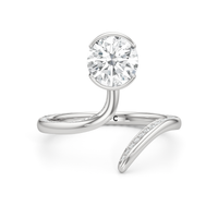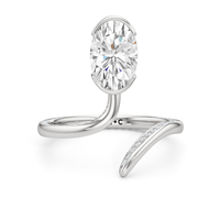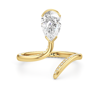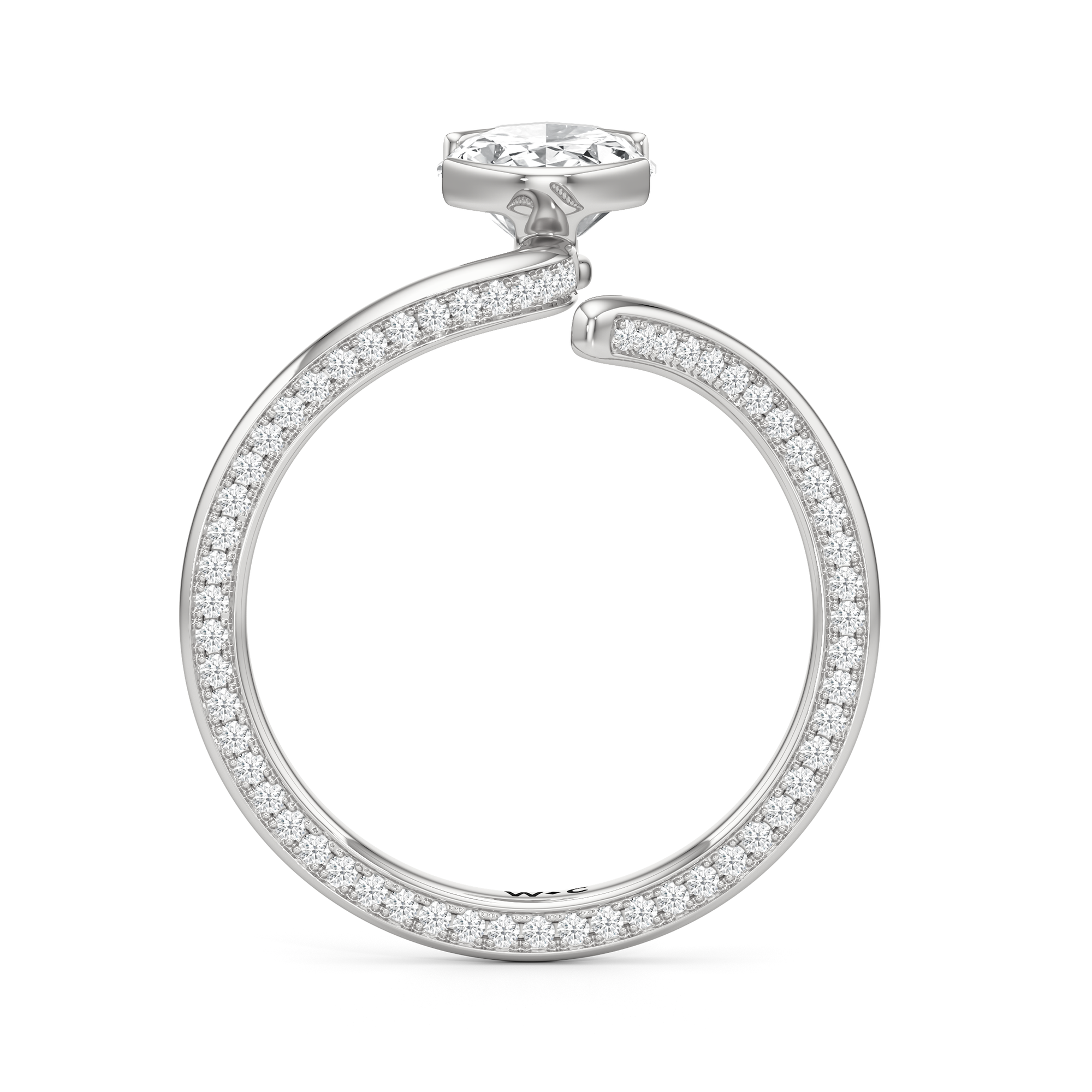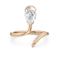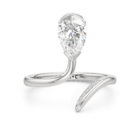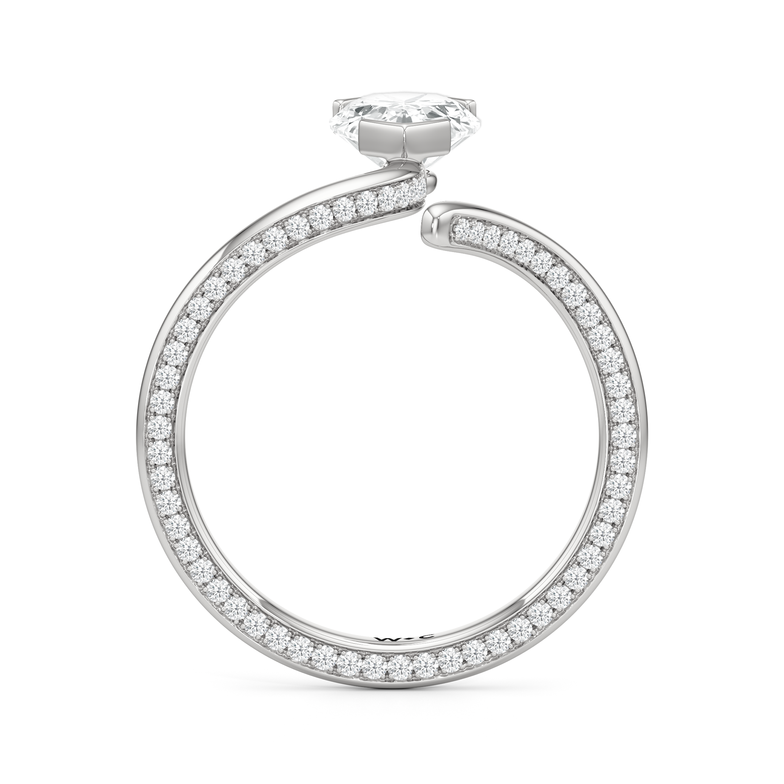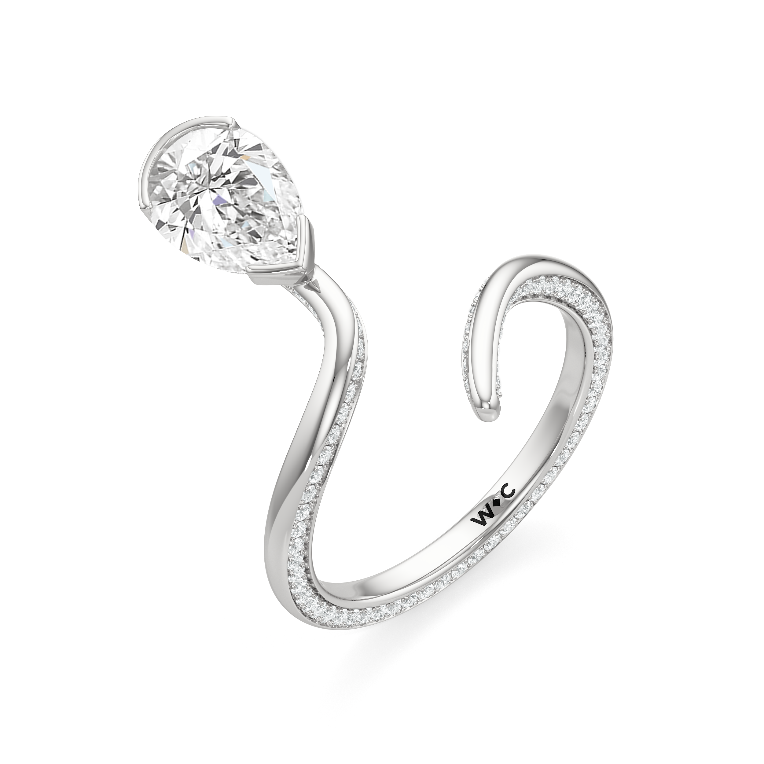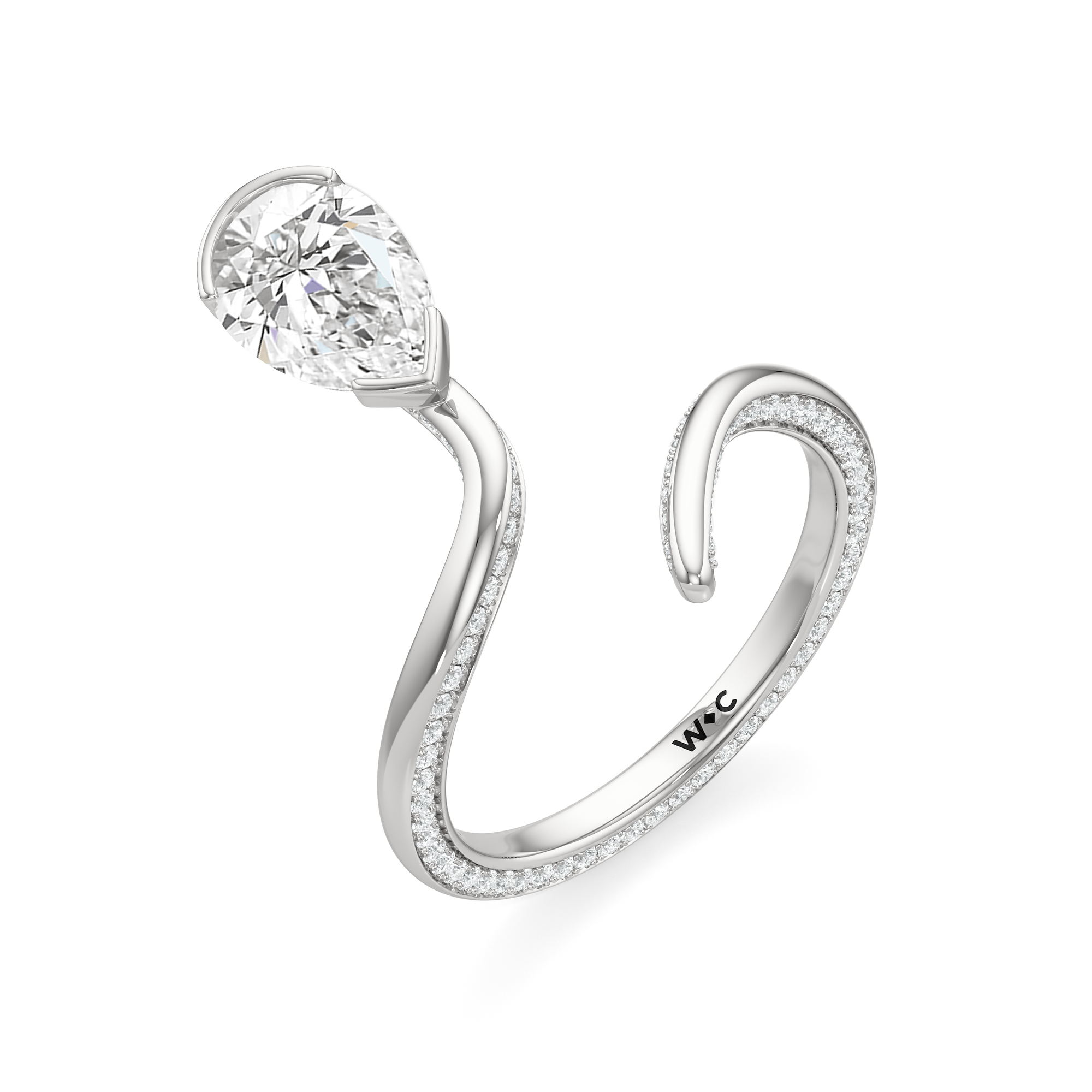 Sleek and sculptural, this ring's winding silhouette highlights the pear diamond in a display of focused light. A side view of the ring reveals the diamonds tracing the sinuous band, ensuring a look that glows bright, but never loud.