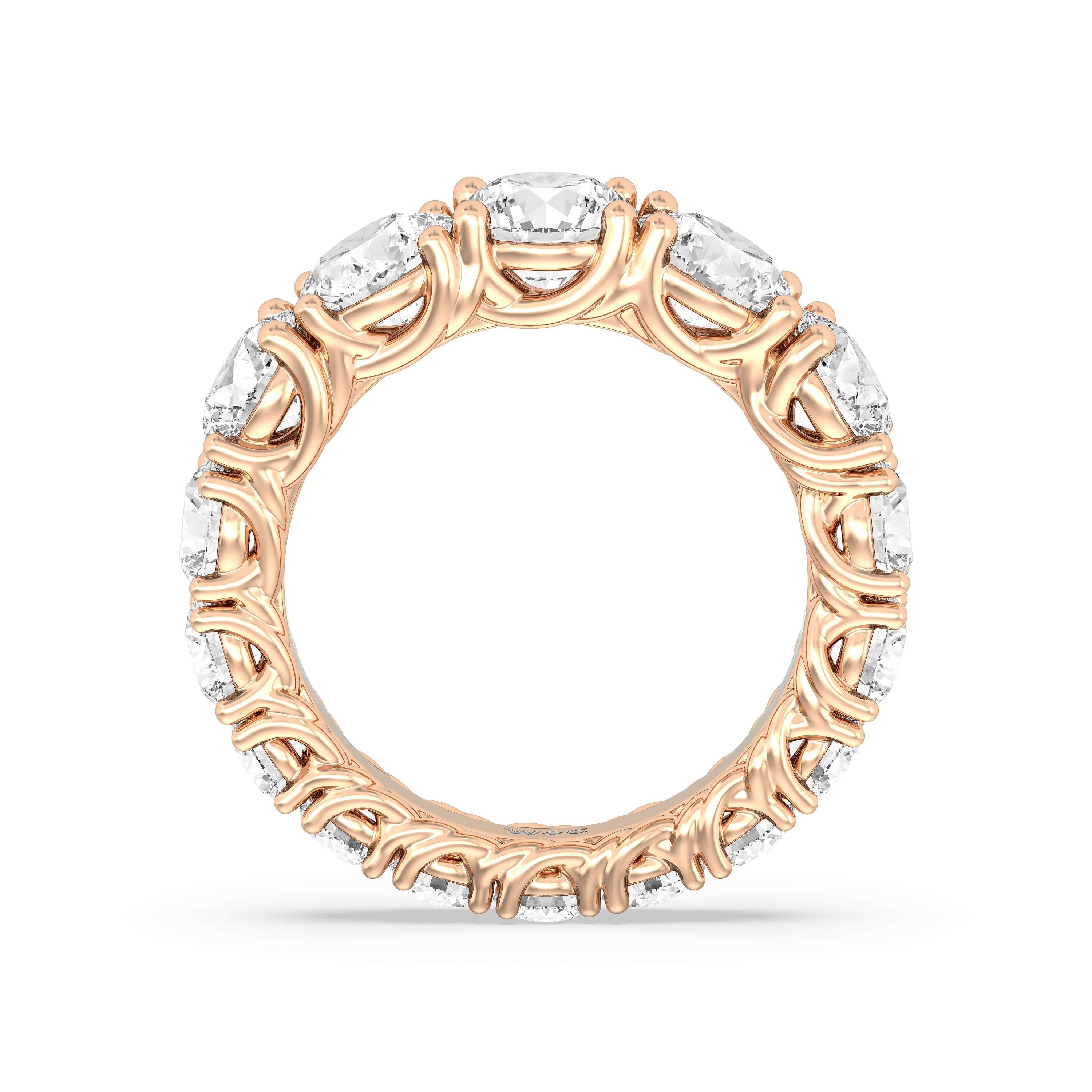 A ring of dynamic beauty. This diamond eternity band features round brilliant diamonds running along the ring's whole circumference. The round diamonds, set in trellis prongs, taper in size as they reach the back of the shank. Mark a milestone in your love journey with this ring that shines and sparkles for all eternity.