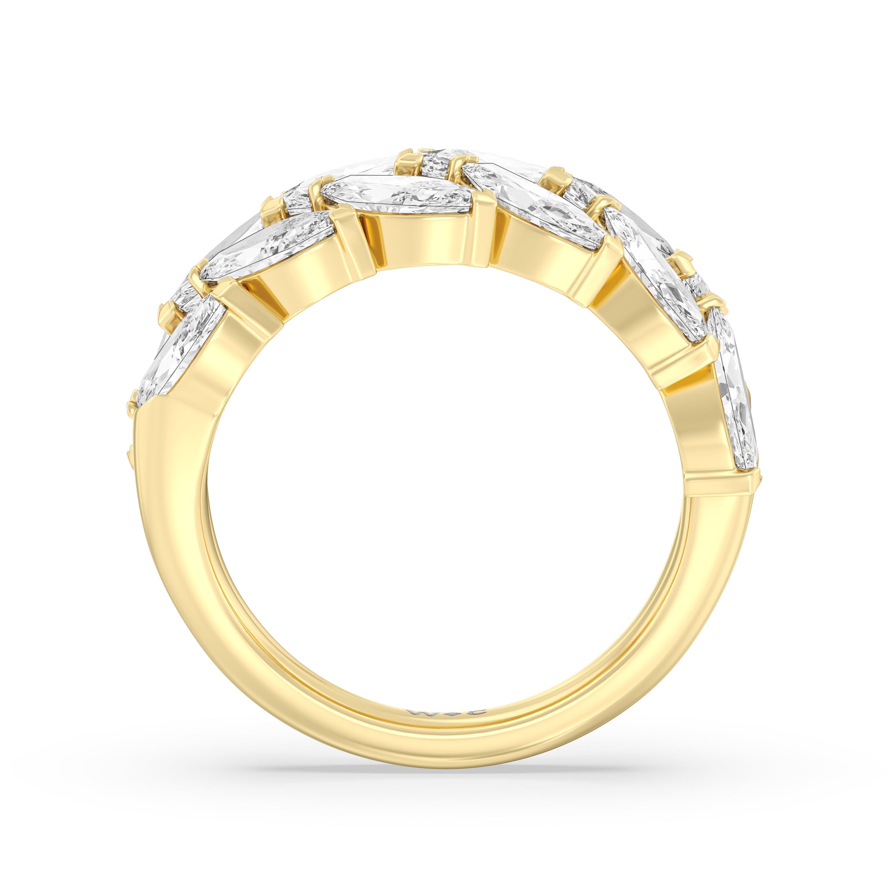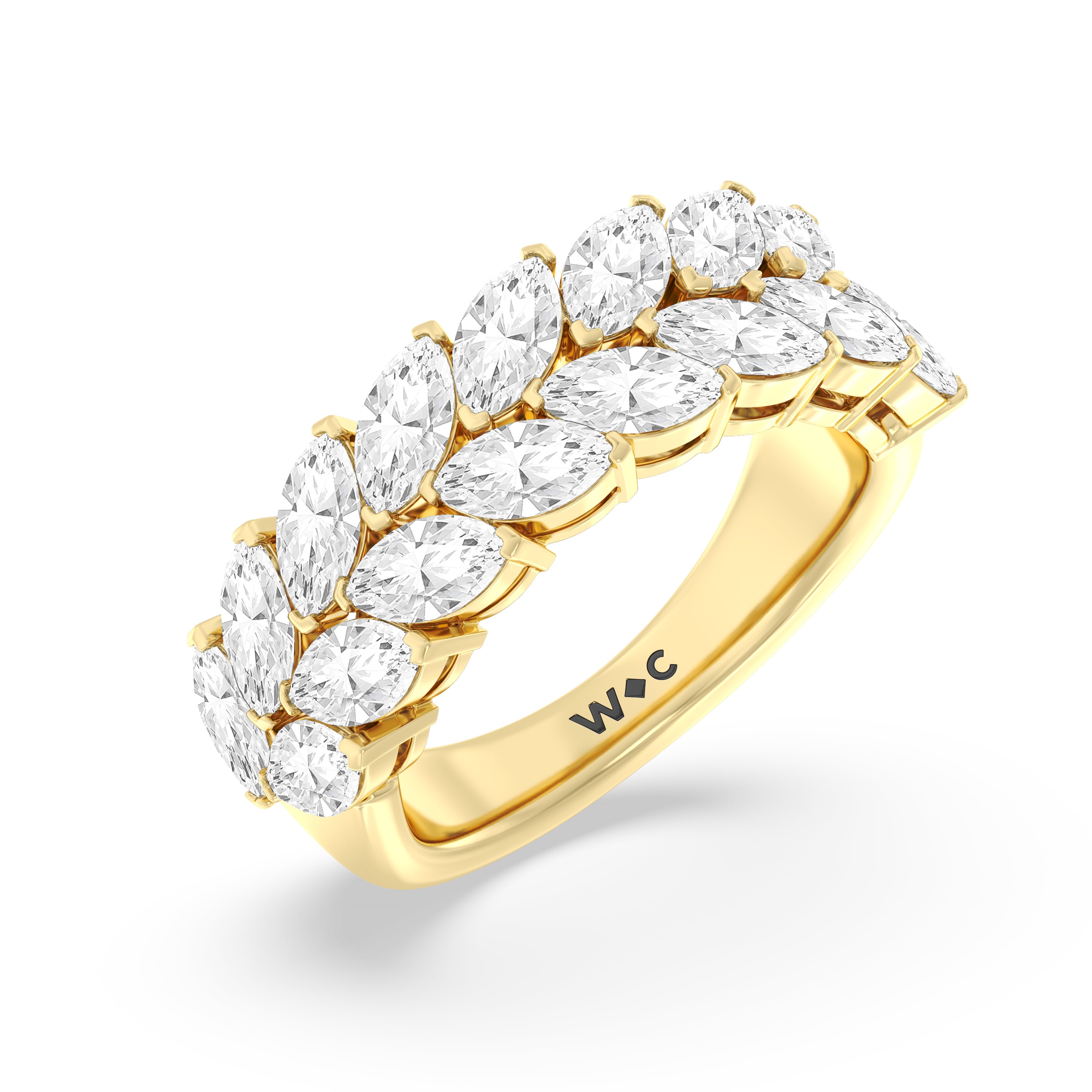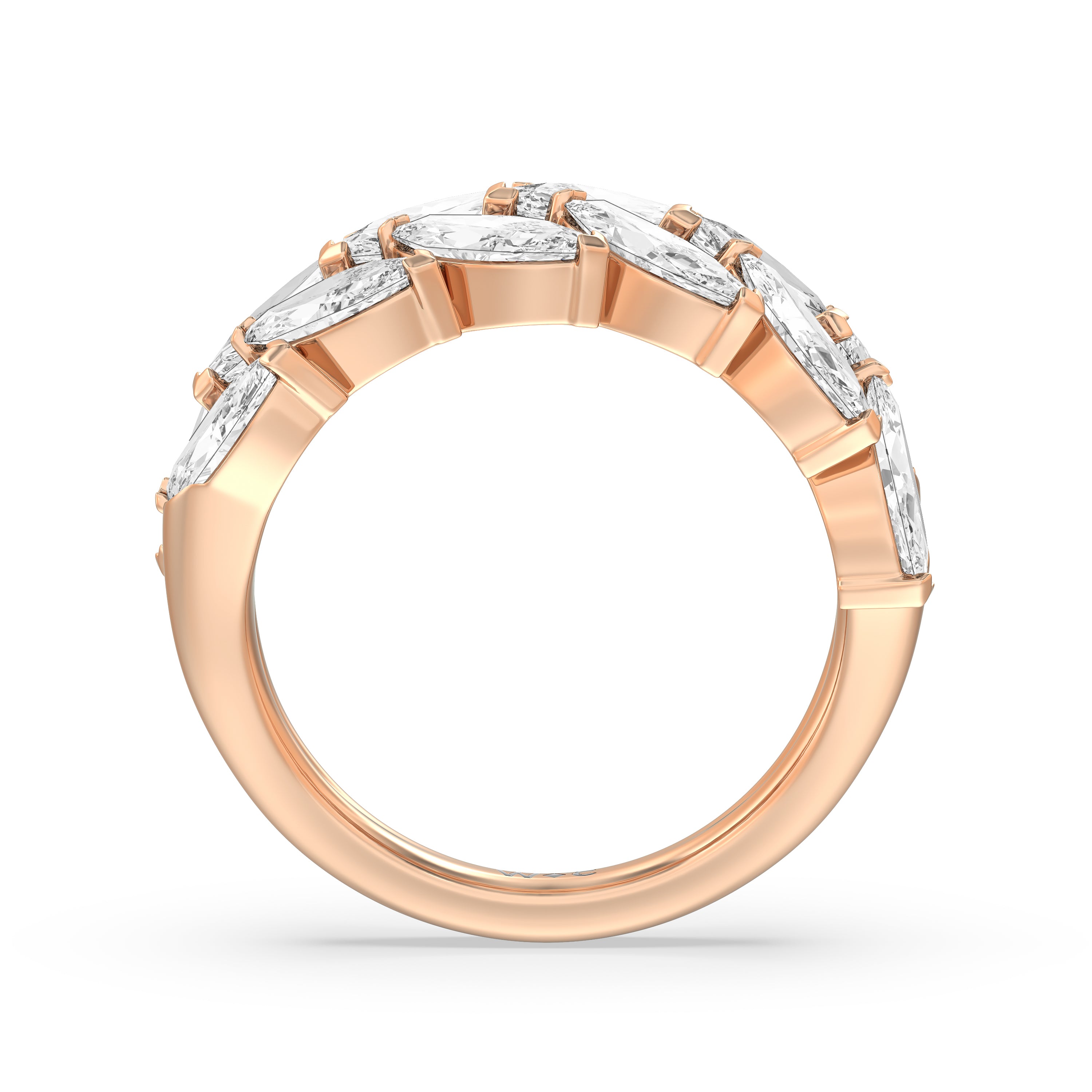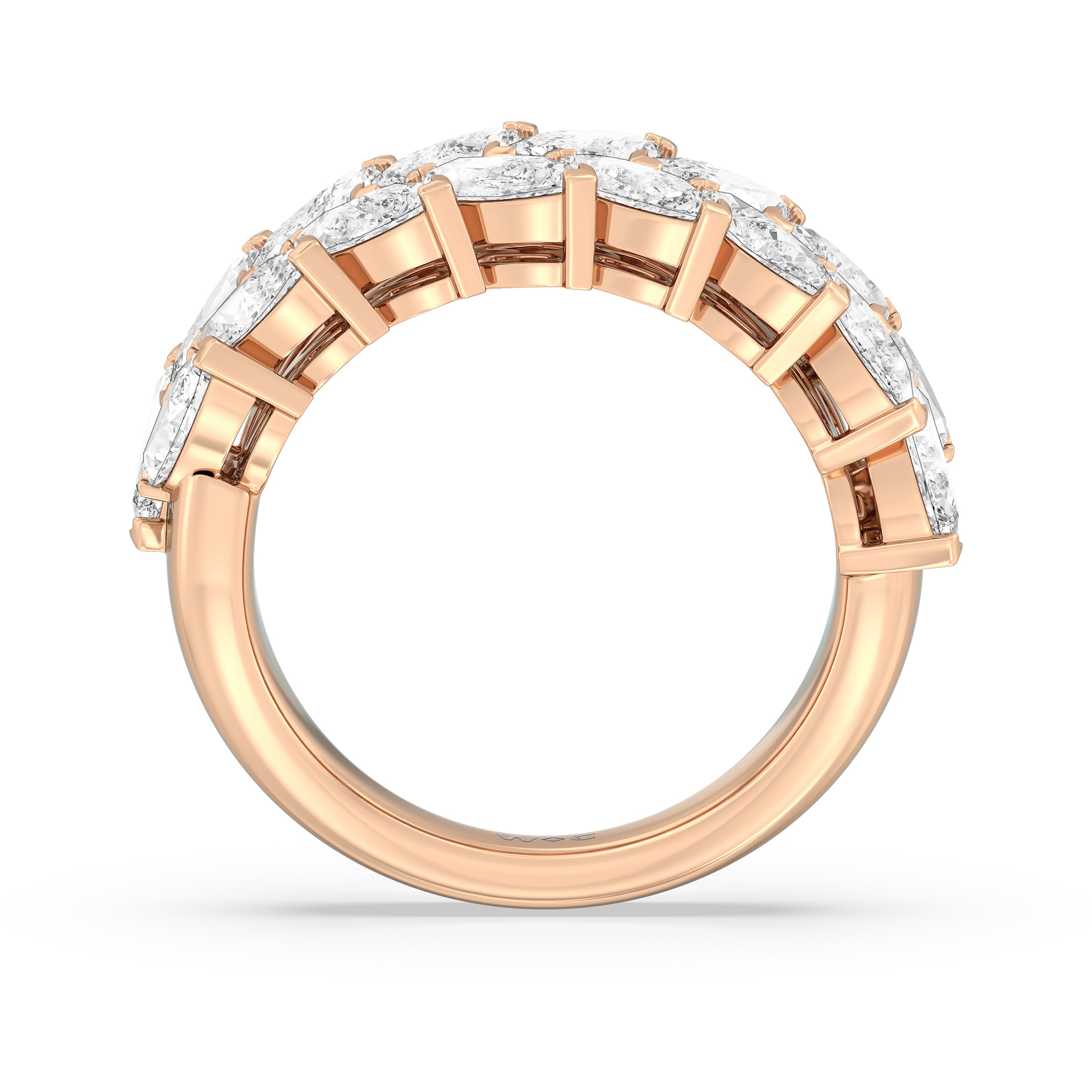 Your special someone with a big, hard-to-ignore personality will surely be drawn to the breathtaking sparkle of this ring. Crafted in white gold, the shank has a wide top dressed with marquise-cut stones in a wheat pattern. The creative and distinctive style of this anniversary band makes it the perfect choice for marking a milestone in your larger-than-life love story.