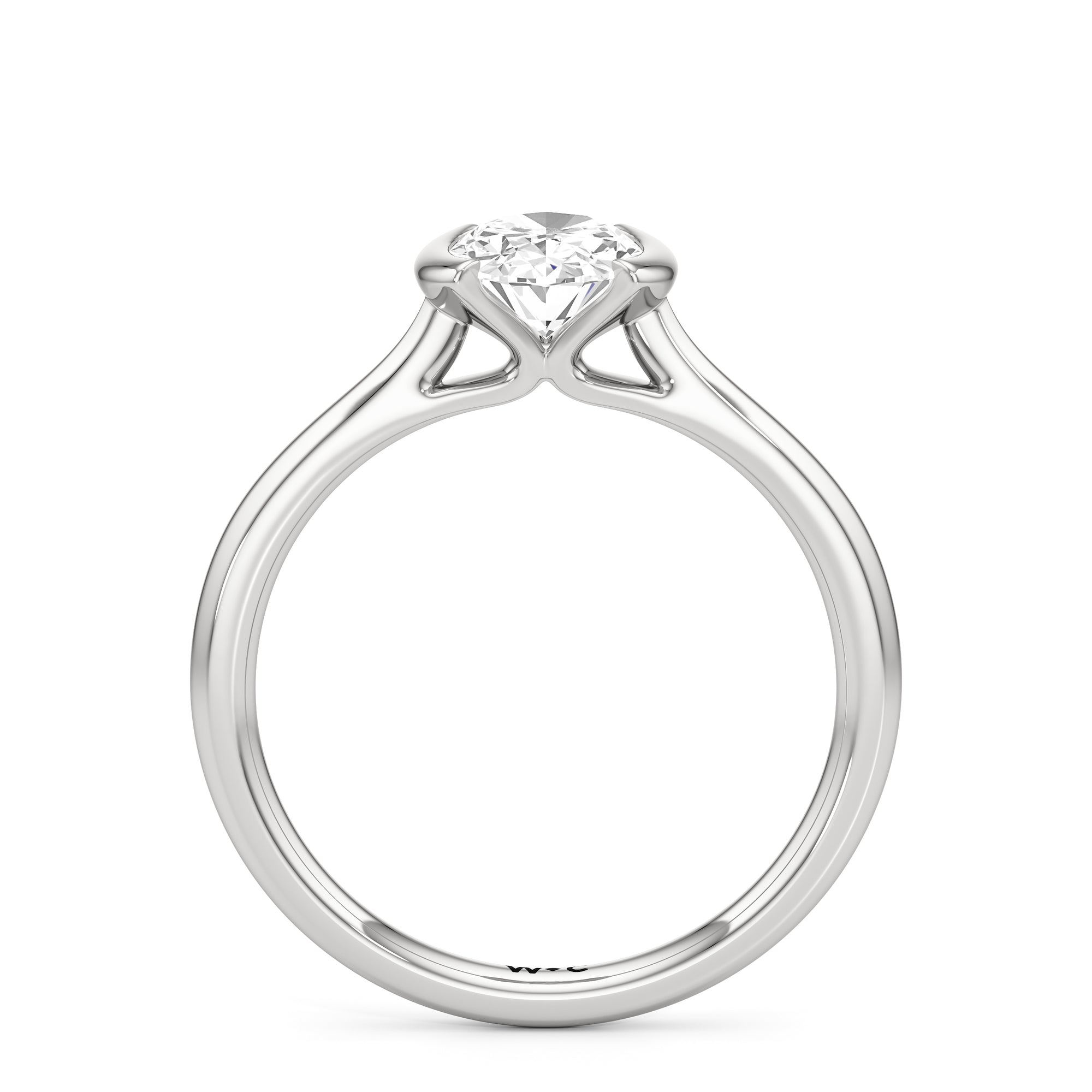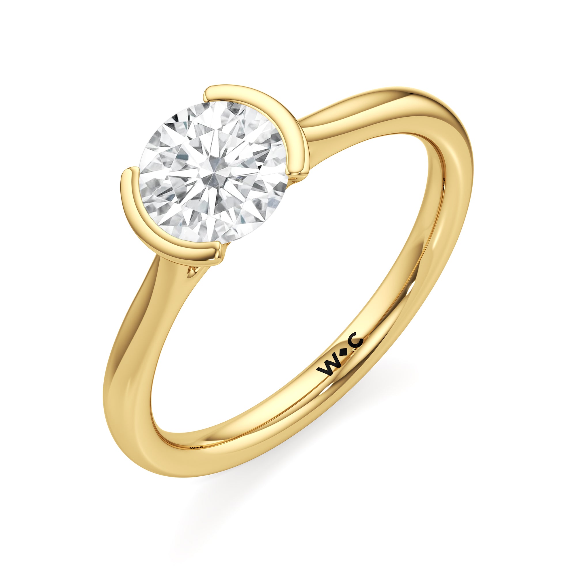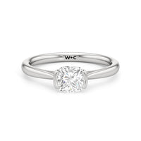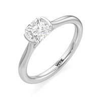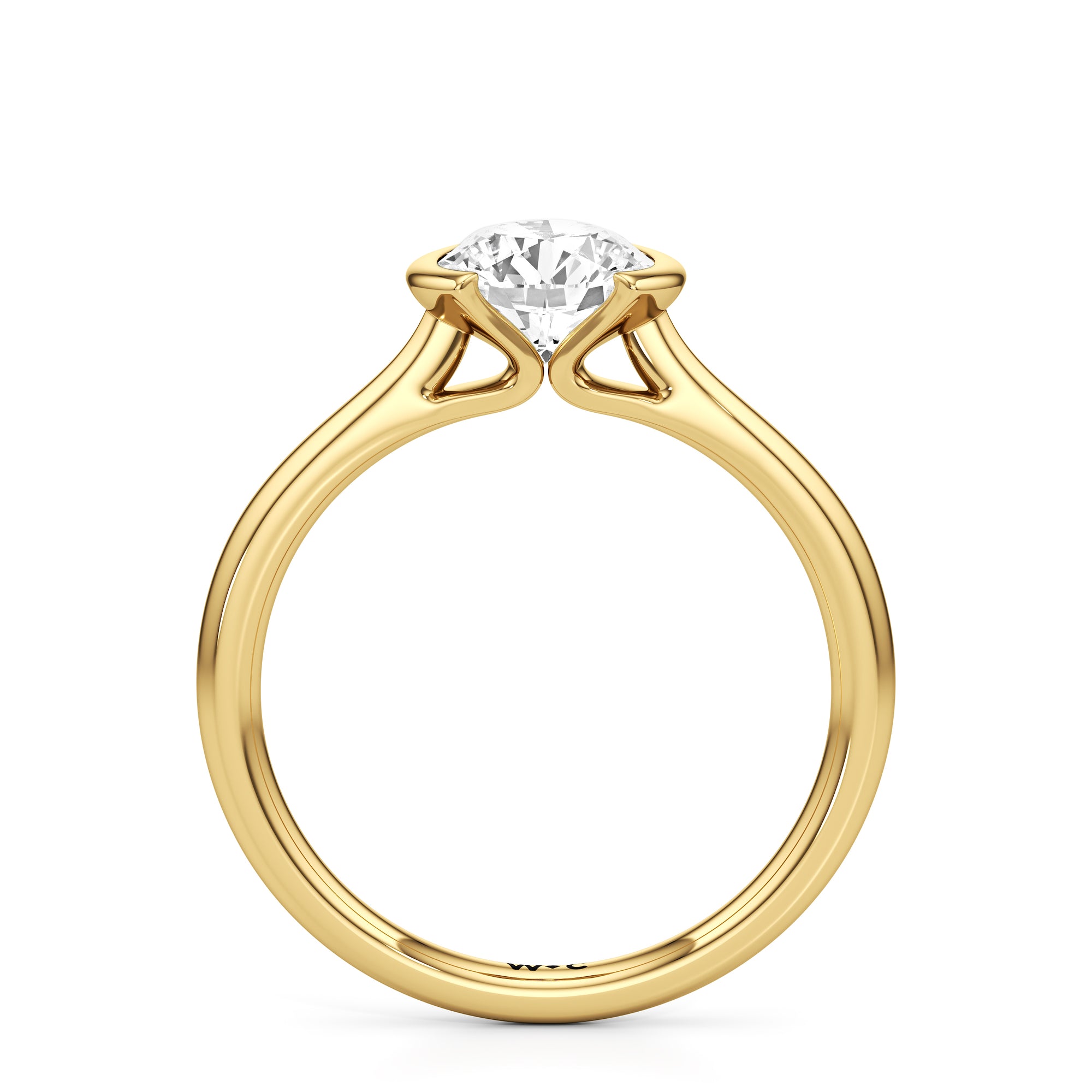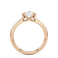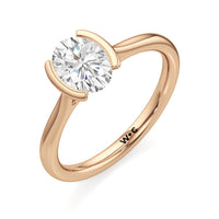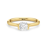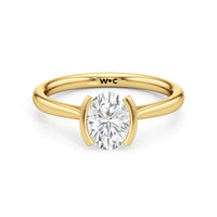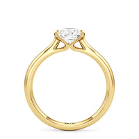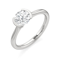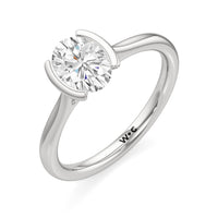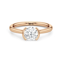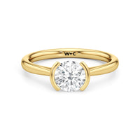 This diamond solitaire engagement ring is in a class of its own. It boasts a cathedral shank that subtly tapers as it approaches the band's base. The diamond is mounted in a half-bezel setting, allowing more light to enter the stone while ensuring a stable and secure hold. No doubt, this is a gorgeous solitaire ring to symbolize your commitment to forever.