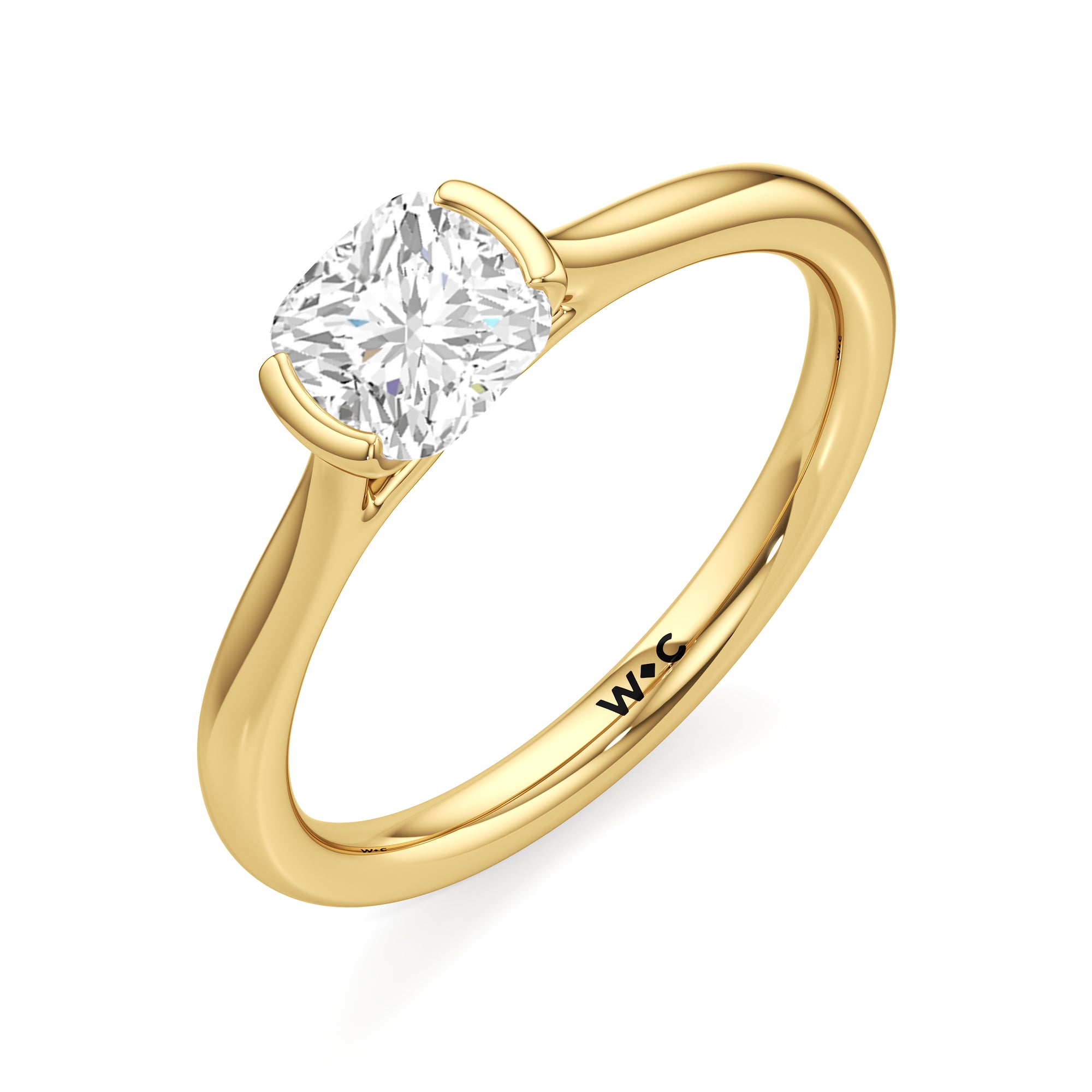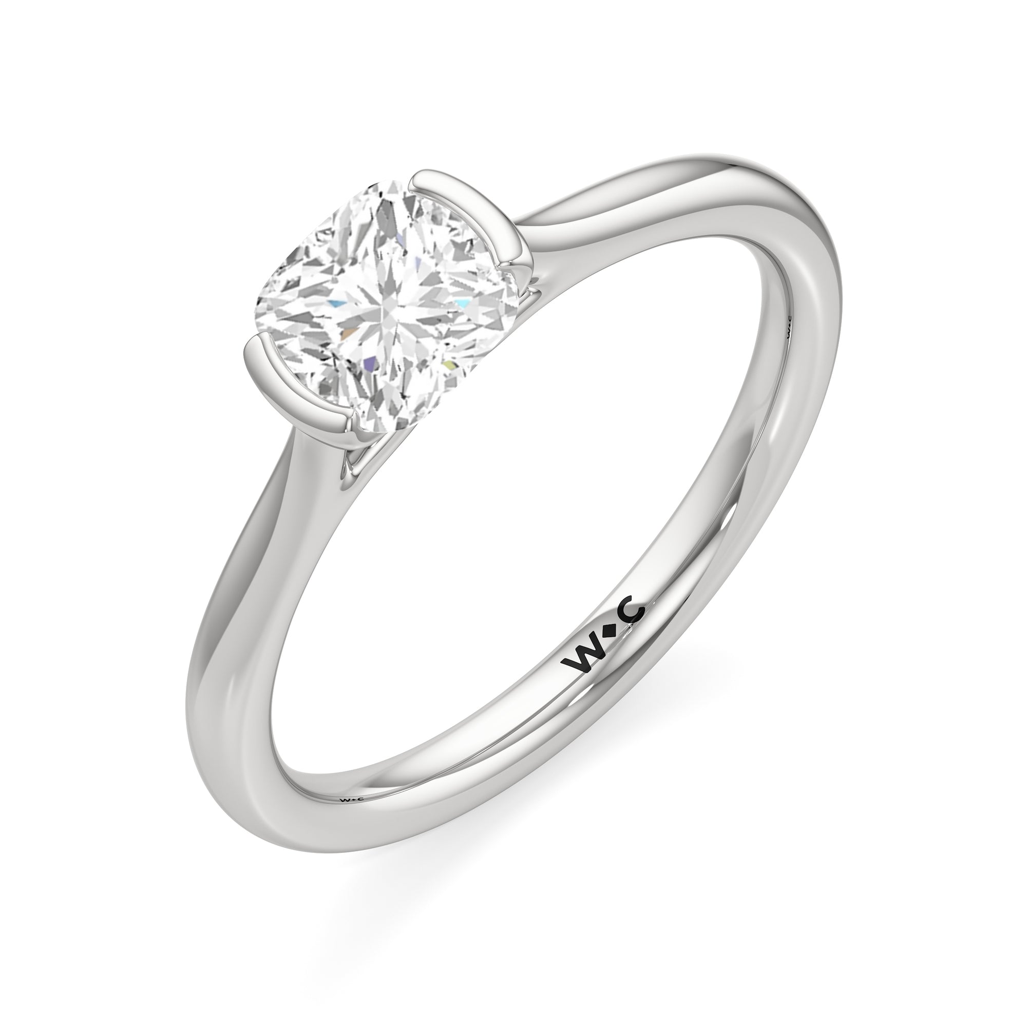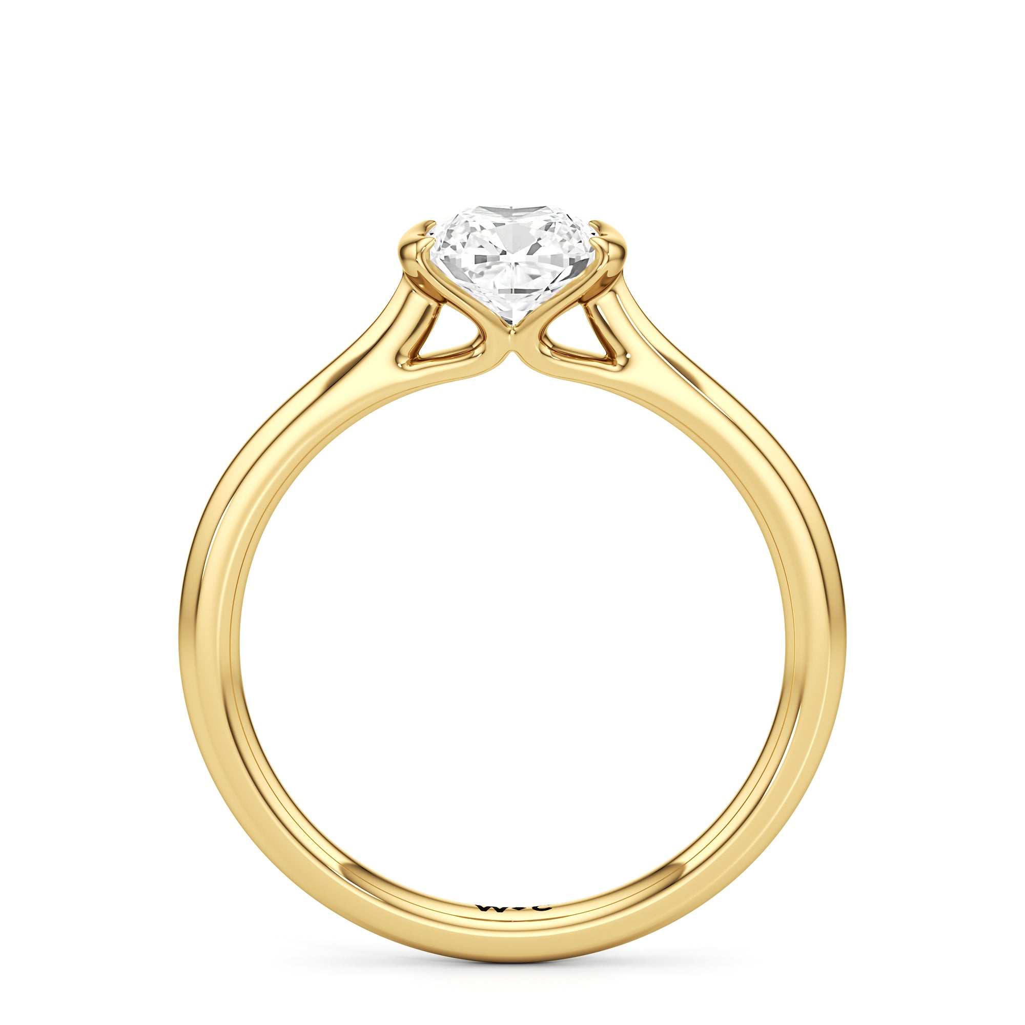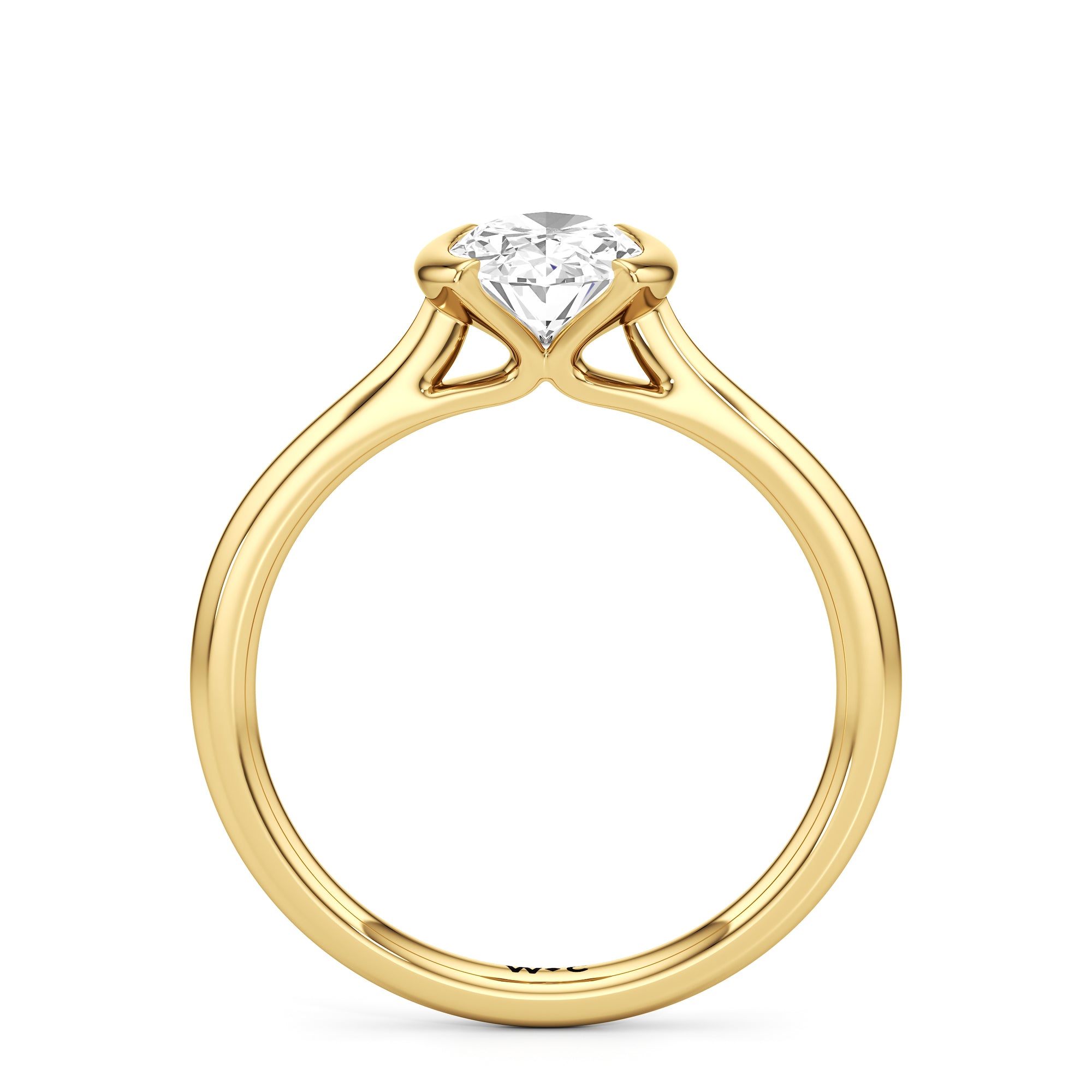 This diamond solitaire engagement ring is in a class of its own. It boasts a cathedral shank that subtly tapers as it approaches the band's base. The diamond is mounted in a half-bezel setting, allowing more light to enter the stone while ensuring a stable and secure hold. No doubt, this is a gorgeous solitaire ring to symbolize your commitment to forever.