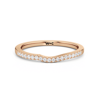 This curved diamond set wedding band is perfectly contoured to complement our the ellison diamond wedding band’ for a simple and sophisticated look.