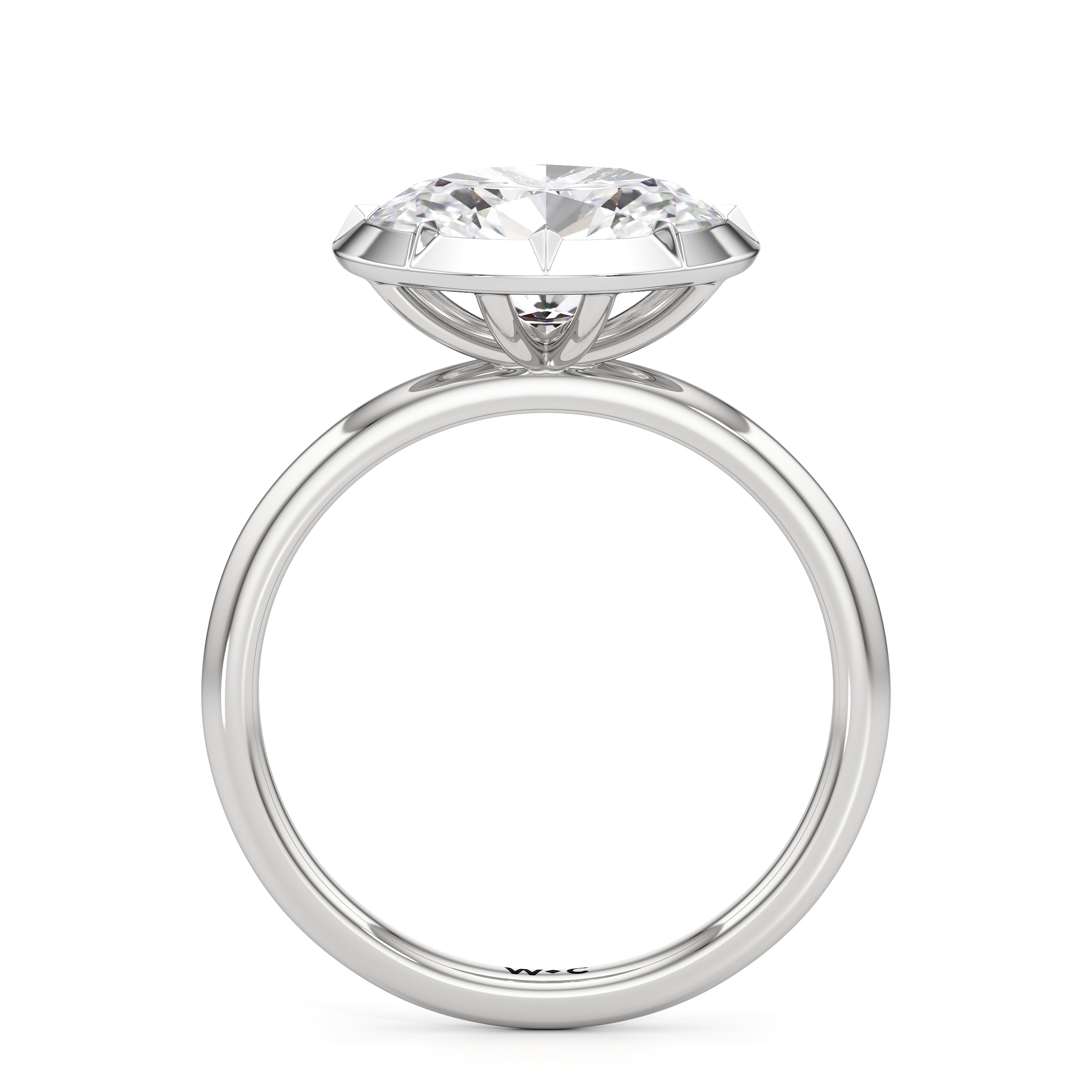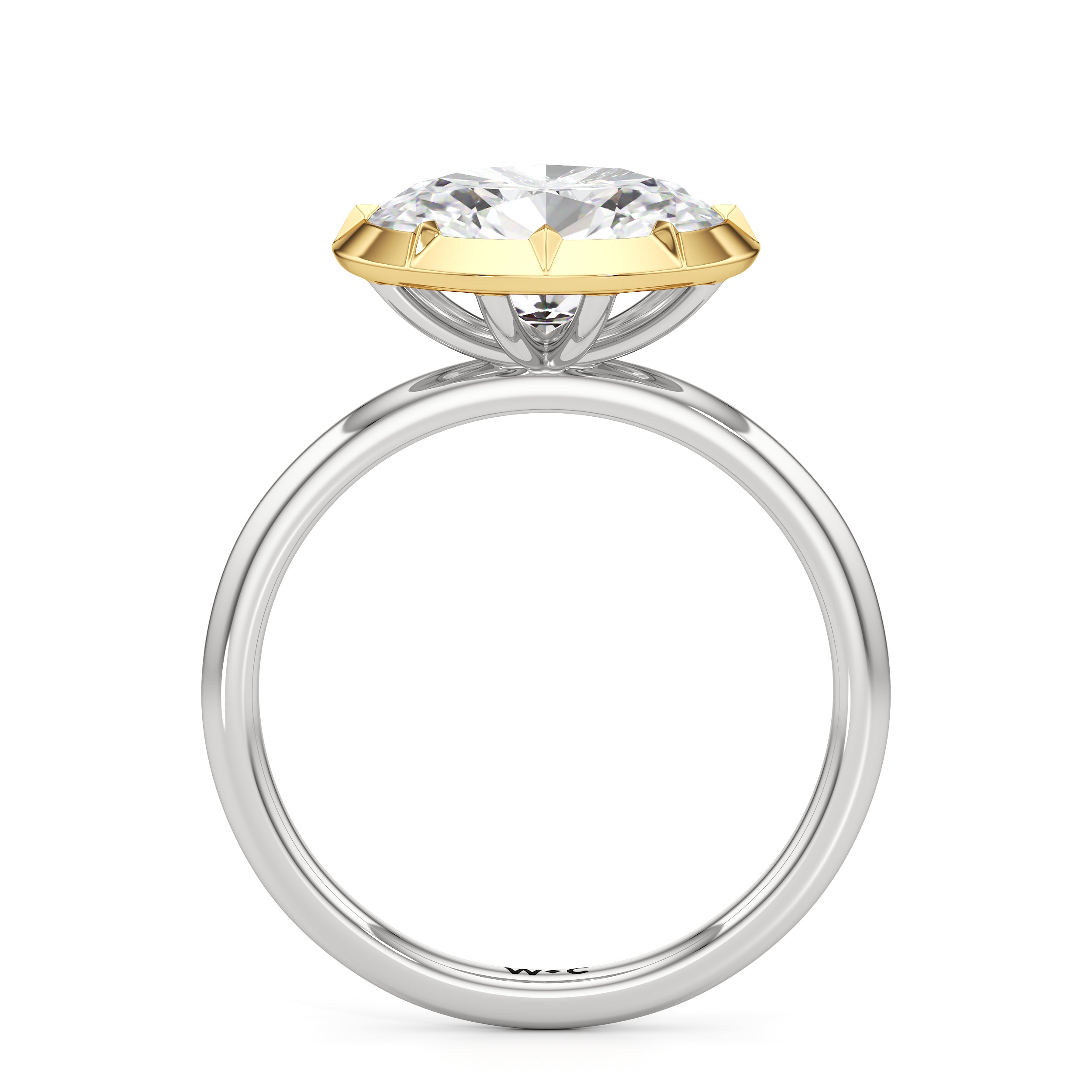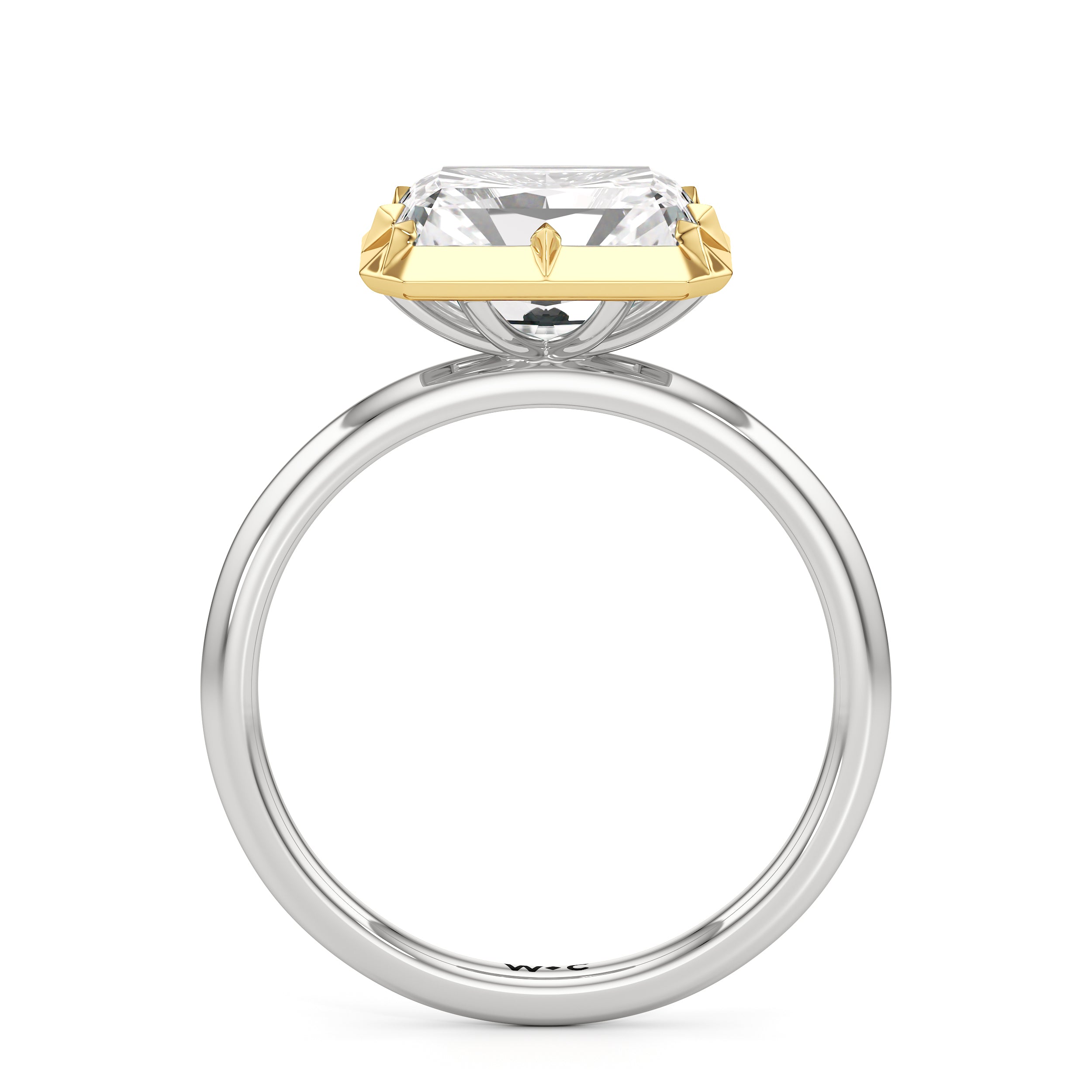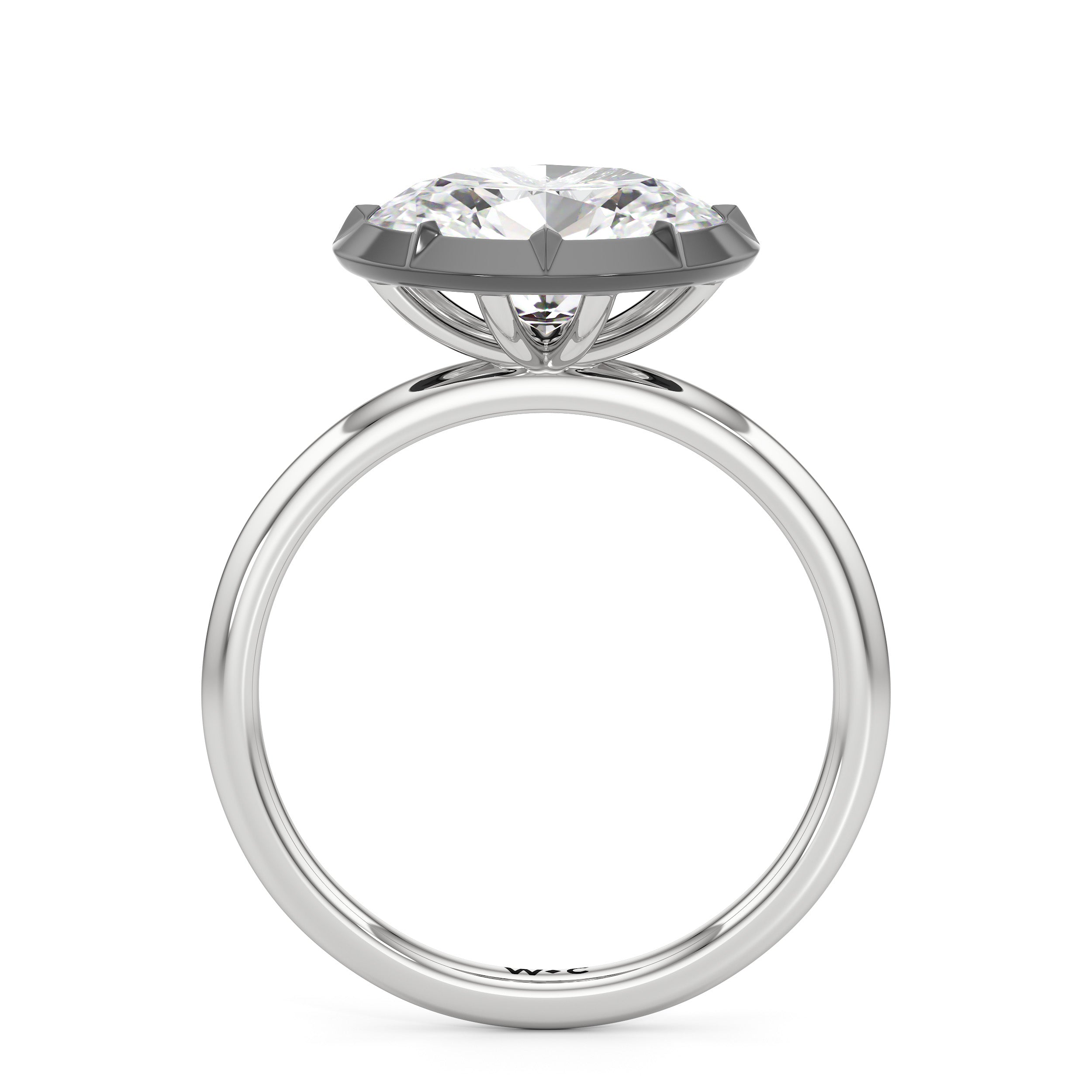 Celeste offers a fresh perspective on a time-honored style. The east-west center stone sits in a sleek version of the Georgian button-back setting, also known as serti dressé. Instead of the traditional closed back, the diamond's basket is open to let in more light for greater brilliance. The result is a clean, elegant design that keeps the vintage spirit while being modern and wearable.