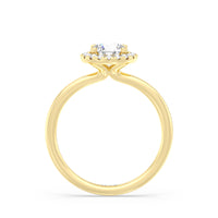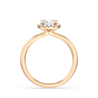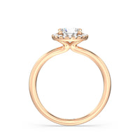The Eloise Engagement Ring displays beauty in a modest yet dignified way. Its domed shank is unembellished, ensuring that eyes are drawn to the beautiful centrepiece. The band gracefully lifts a diamond centre stone embraced by a halo of more round diamonds. If your soon-to-be fiancé prefers an elevated solitaire that is subtly detailed, the Eloise ring may be the one for her.
