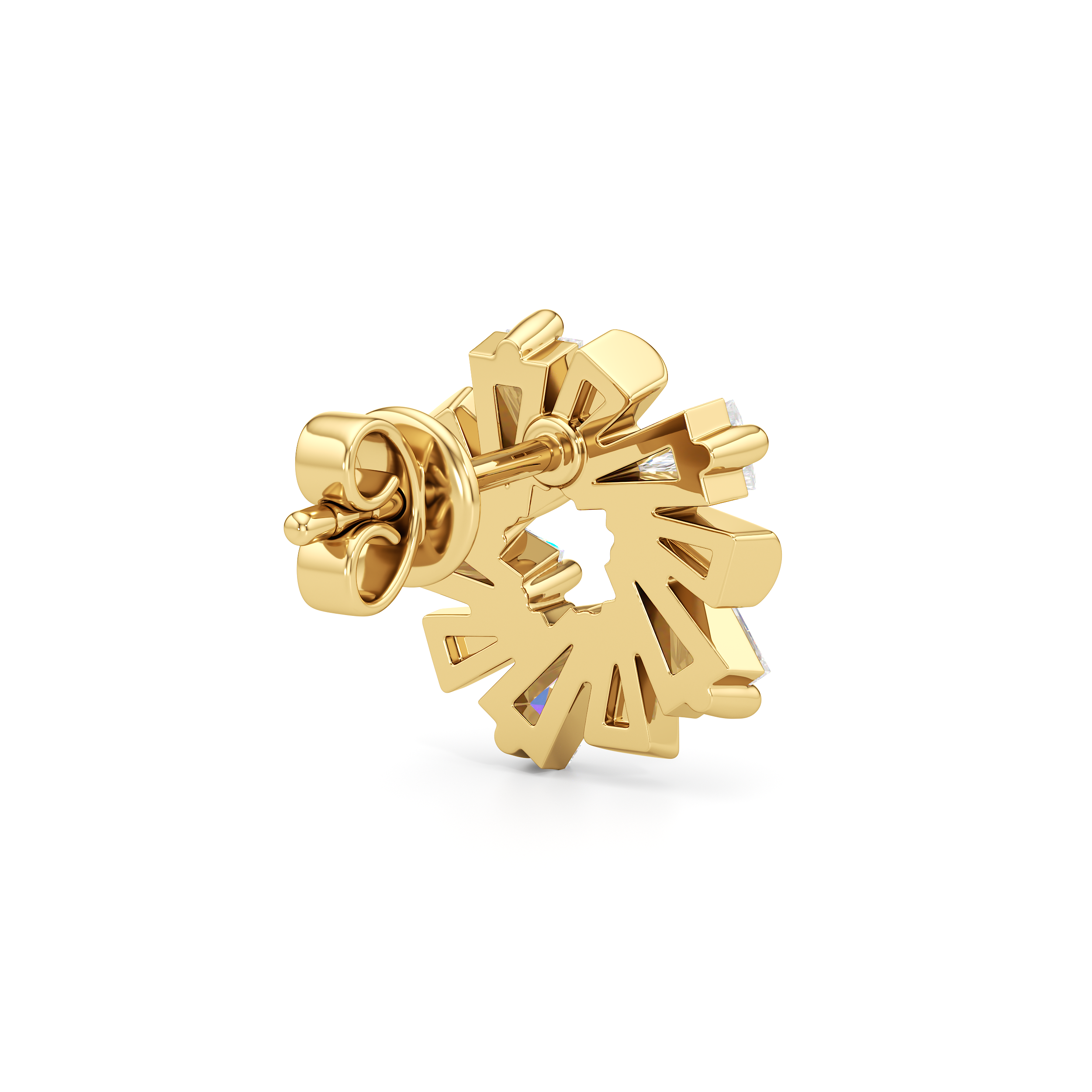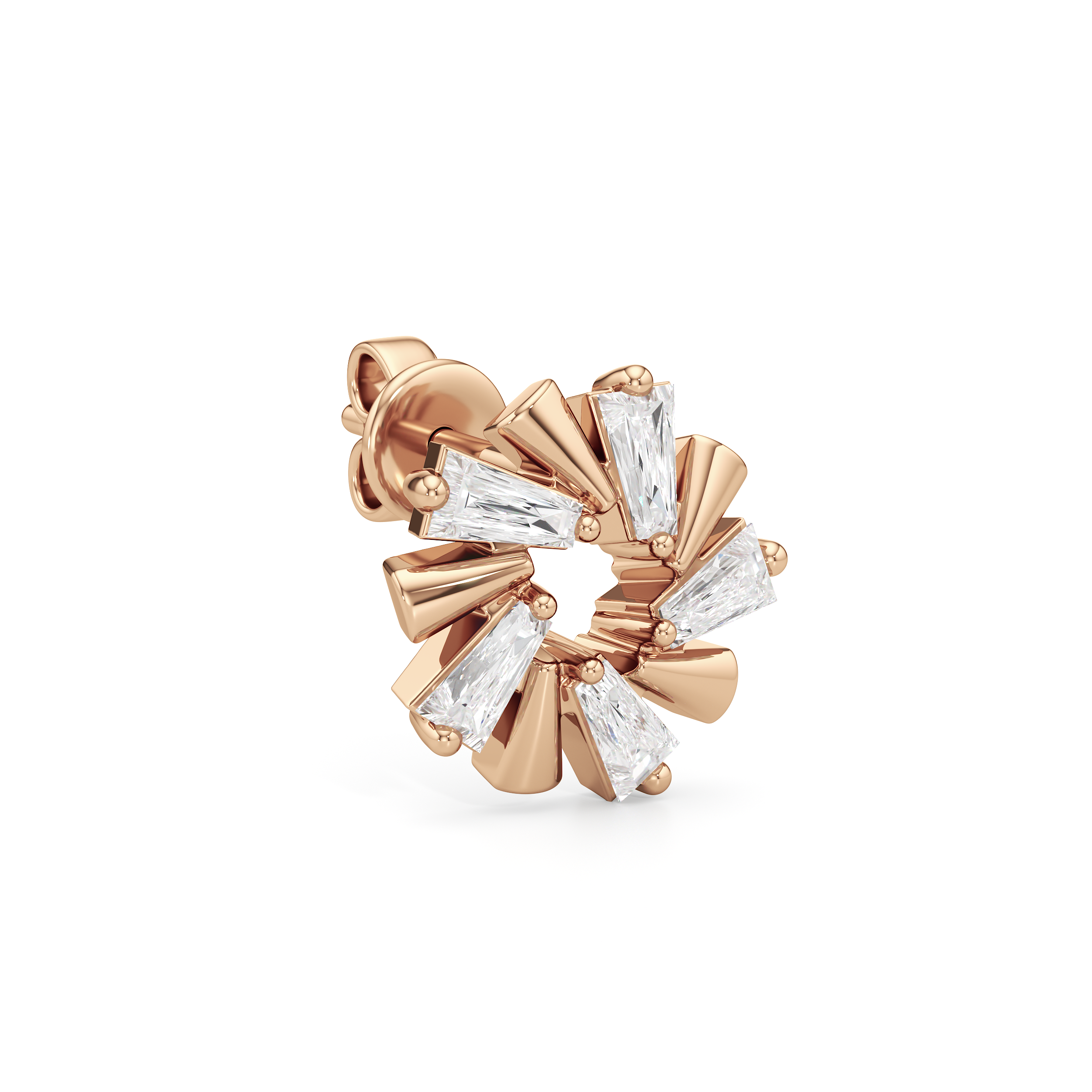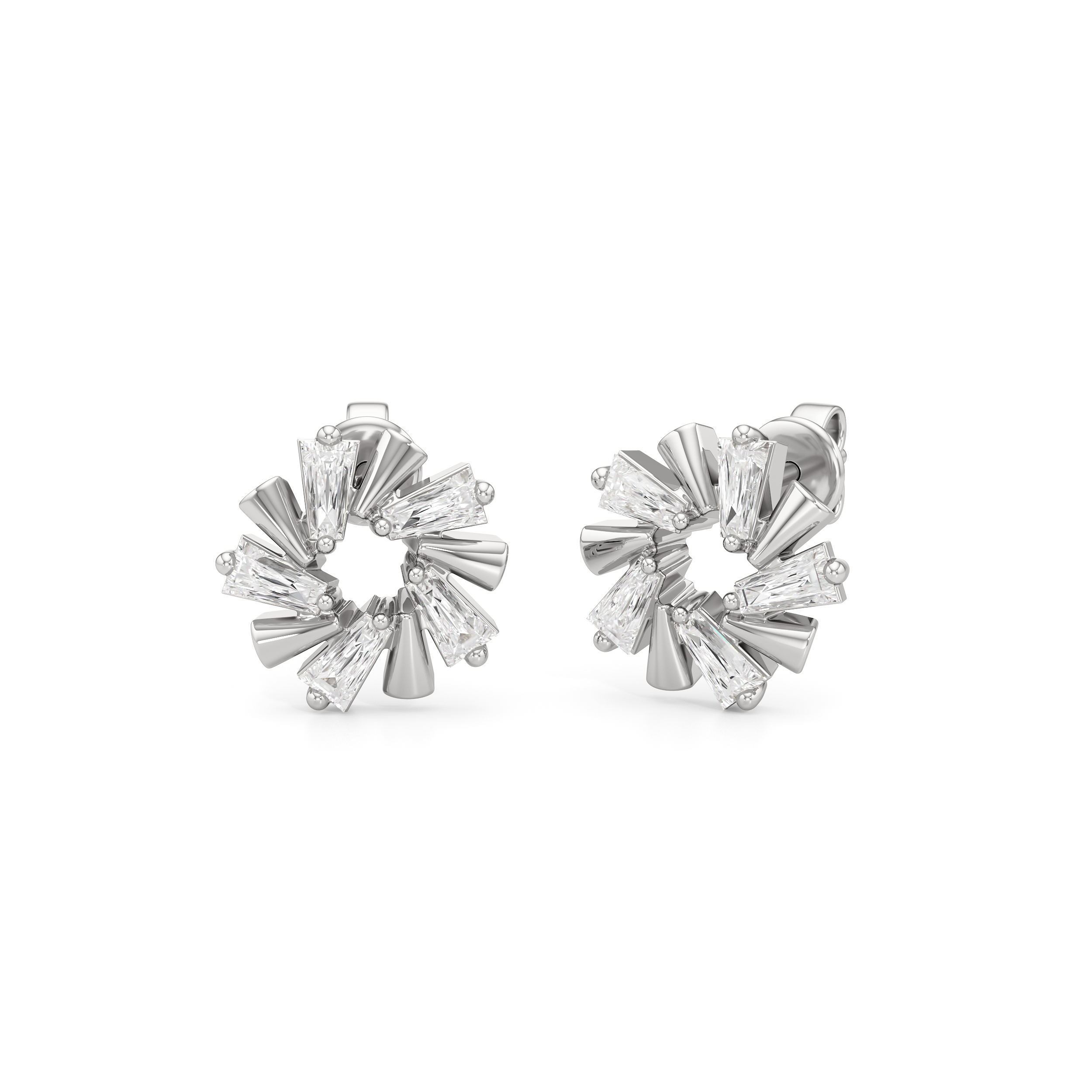 Outshine the ordinary with this pair of diamond earrings. It features a spiraling pattern of alternating tapered baguette diamonds and conical gold tubes. Its dynamic shine commands attention with every turn of the head.