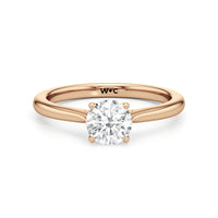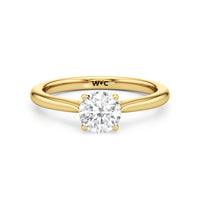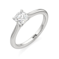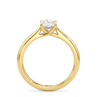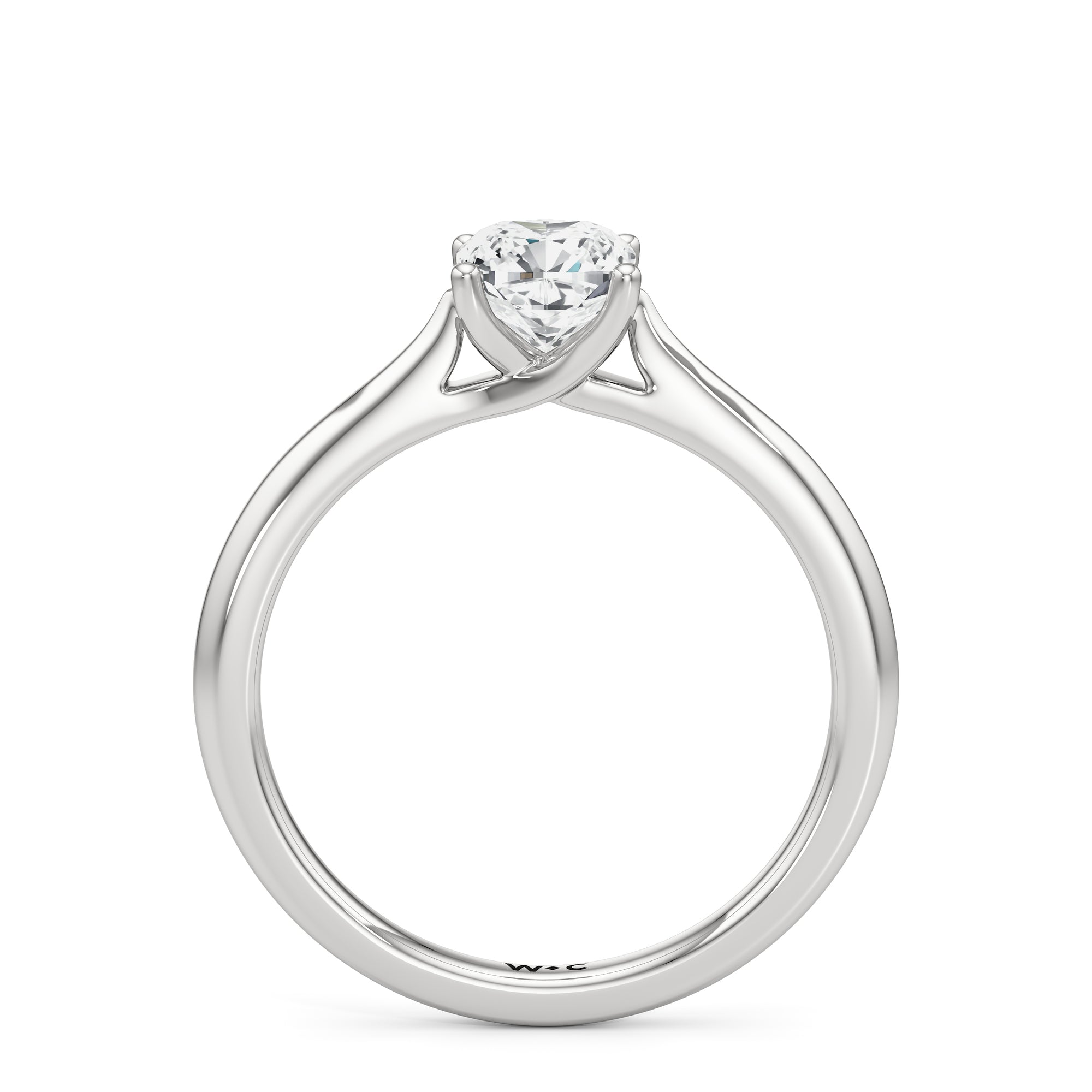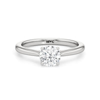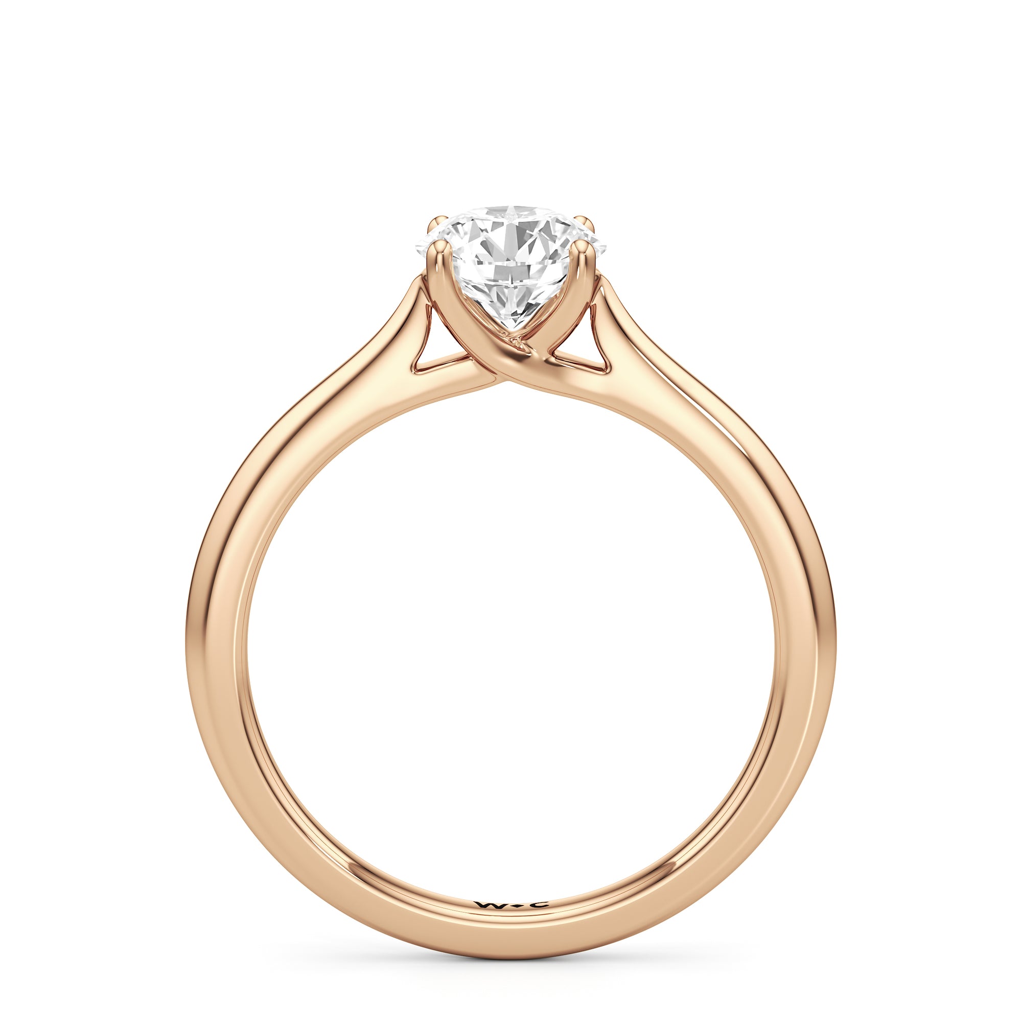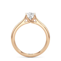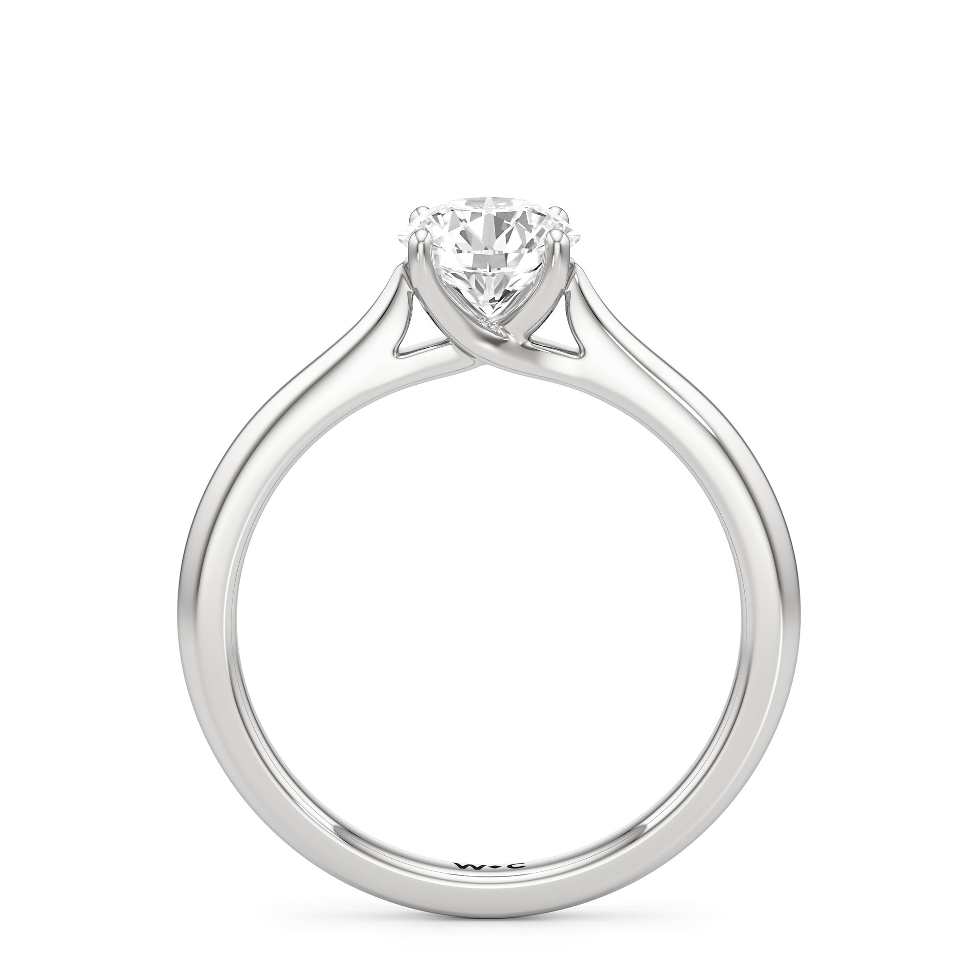 Simple, but different enough; a perfect fit for the minimalist bride-to-be. This classic solitaire engagement ring features a polished cathedral shank where the band gradually thins toward the back of the ring. The band's two arches support a solitary centre stone that is securely cradled by cross-over prongs, offering a gorgeous contour that wraps the central gem.