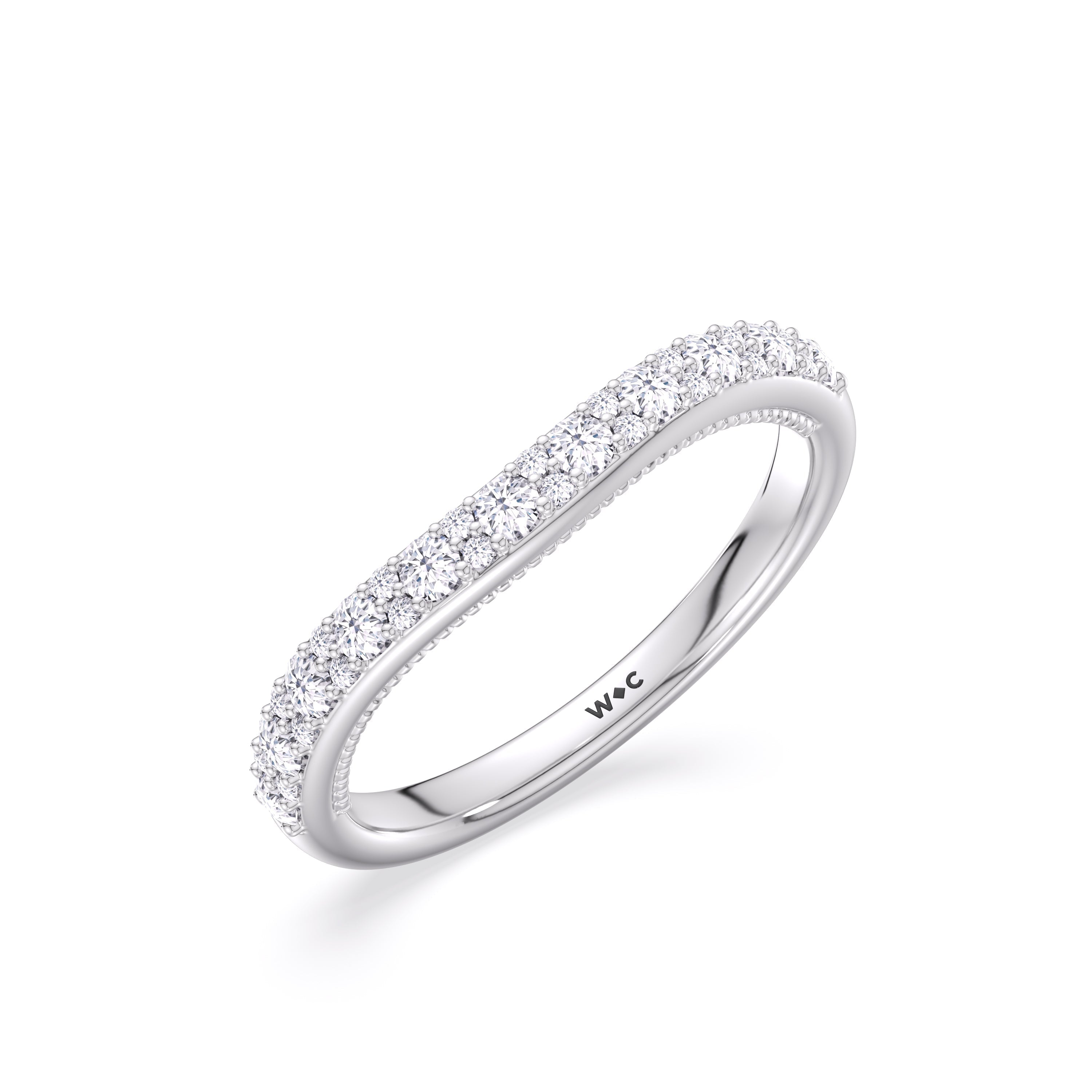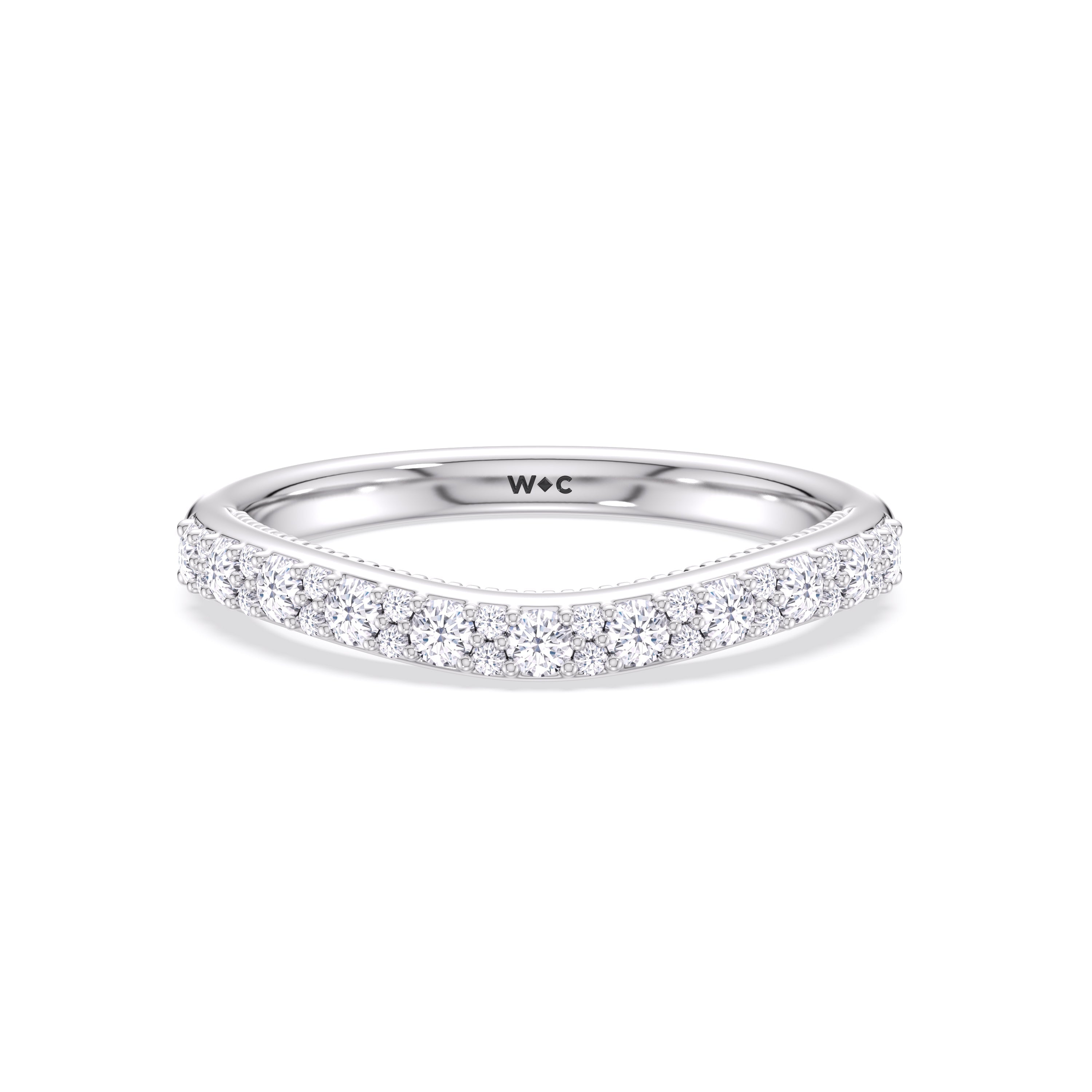 This curved diamond set wedding band is perfectly contoured to complement our The Finley Diamond Wedding Band for a simple and sophisticated look.