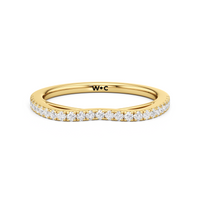 This curved diamond set wedding band is perfectly contoured to complement our the Flora diamond wedding band for a simple and sophisticated look.