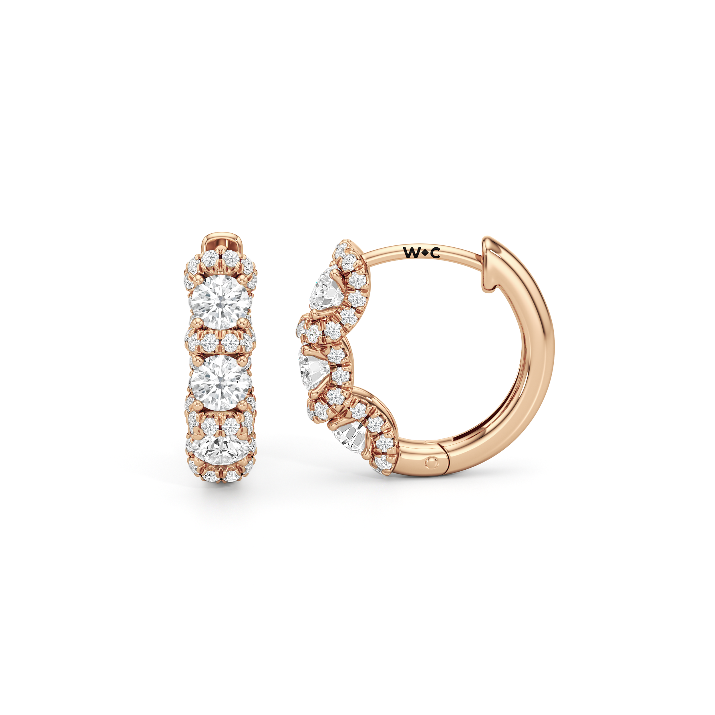 The Fulton Half Hoops displays form and contrast in motion. Three diamonds follow the hoop's curve, subtly broken by a ribbon of pavé diamonds that catch light in all the right places. Understated and compact, this pair brings the kind of detail that finishes a look without trying.