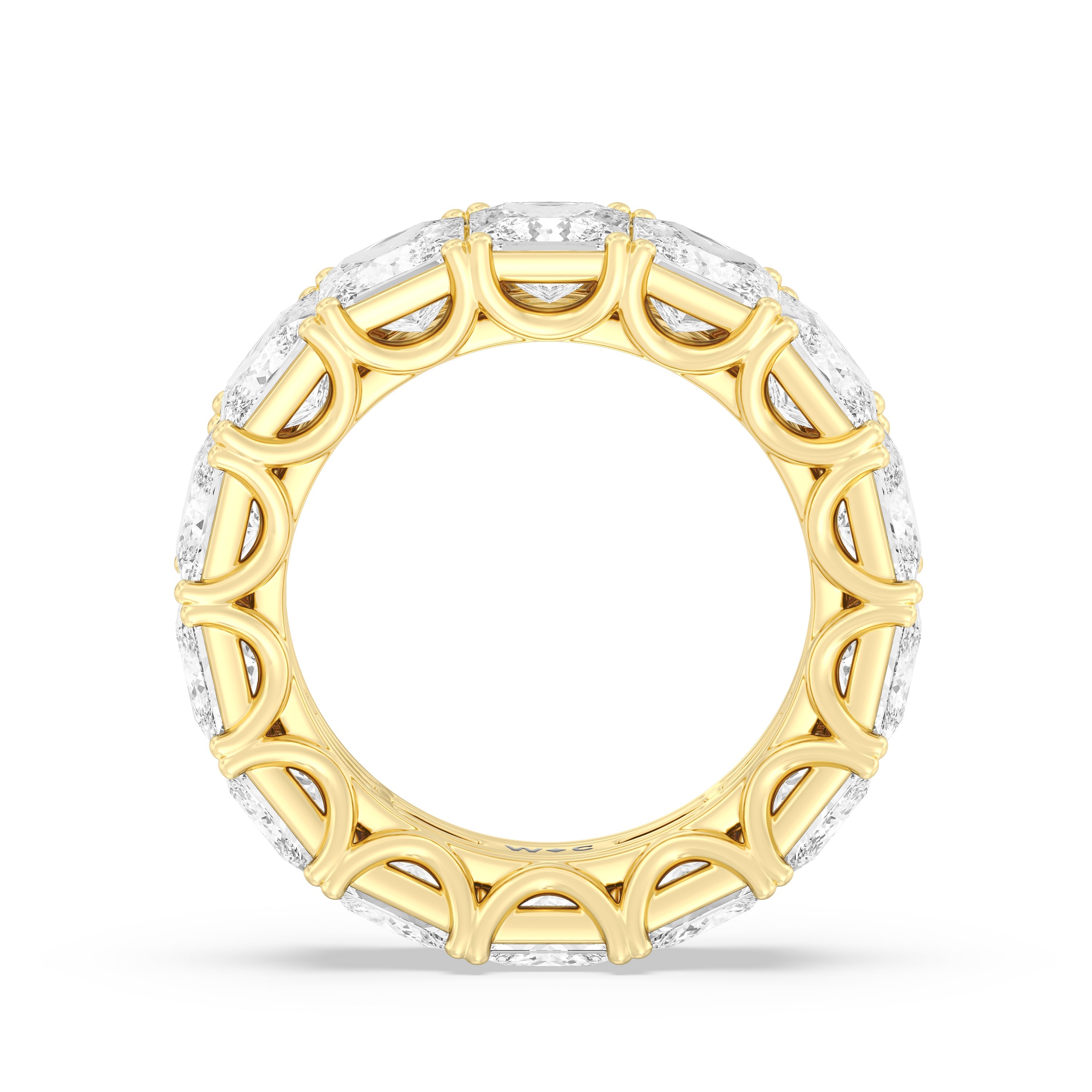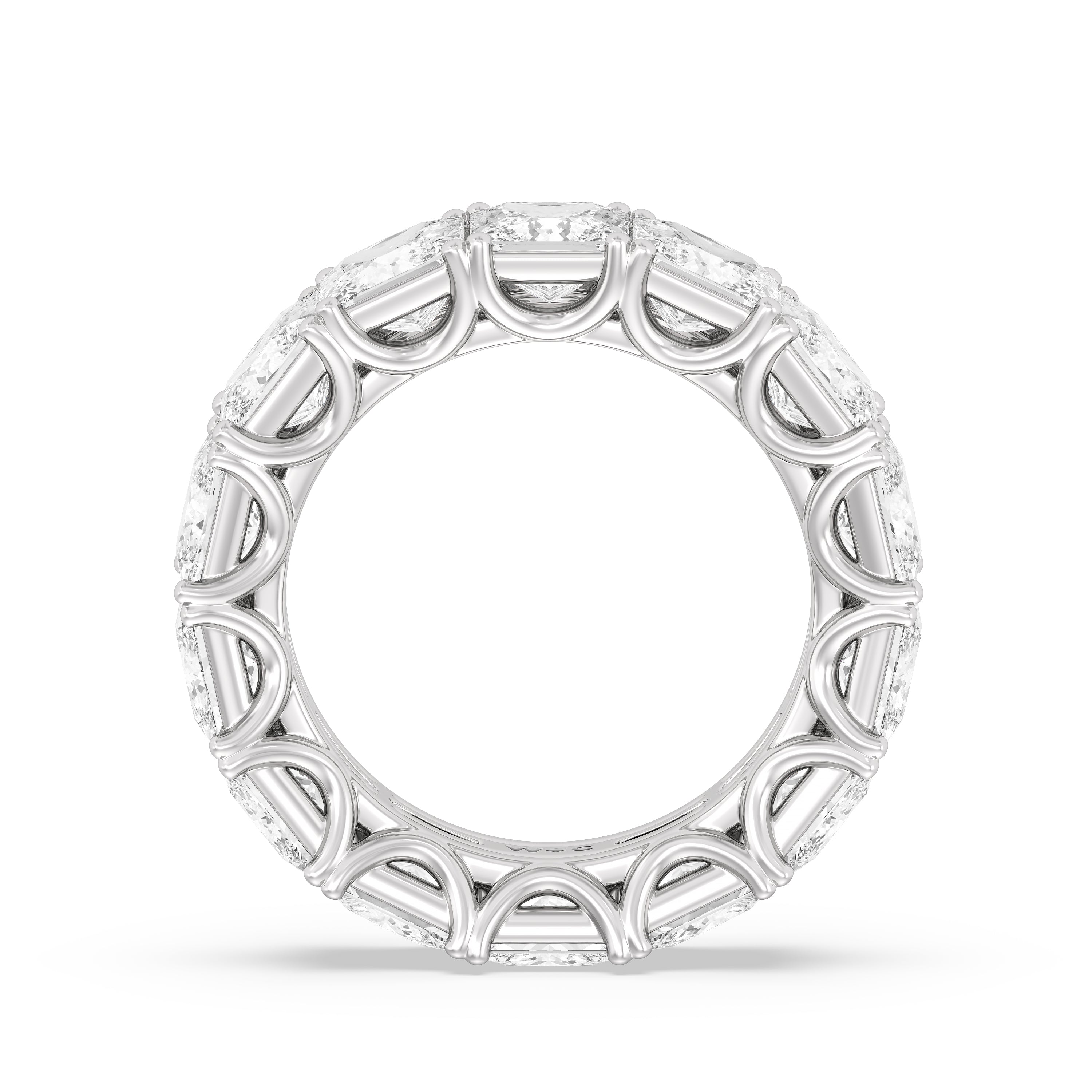 A ring of everlasting shine for love that is never-ending. This classic diamond eternity ring offers full-coverage sparkle as the band is entirely covered with princess-cut diamonds on u-shaped claw prongs, bringing a dazzling shimmer to this ring.