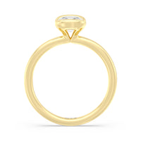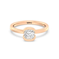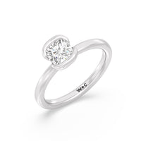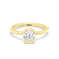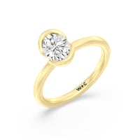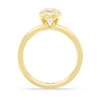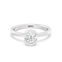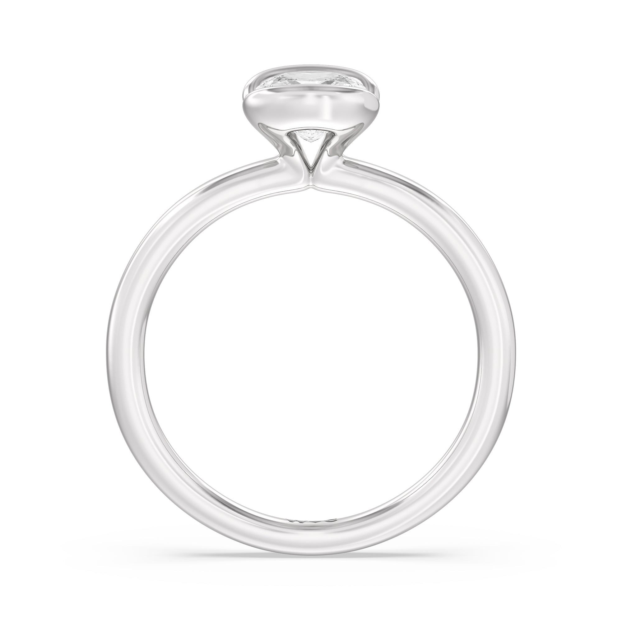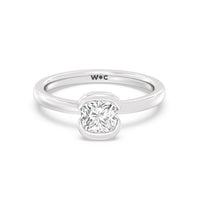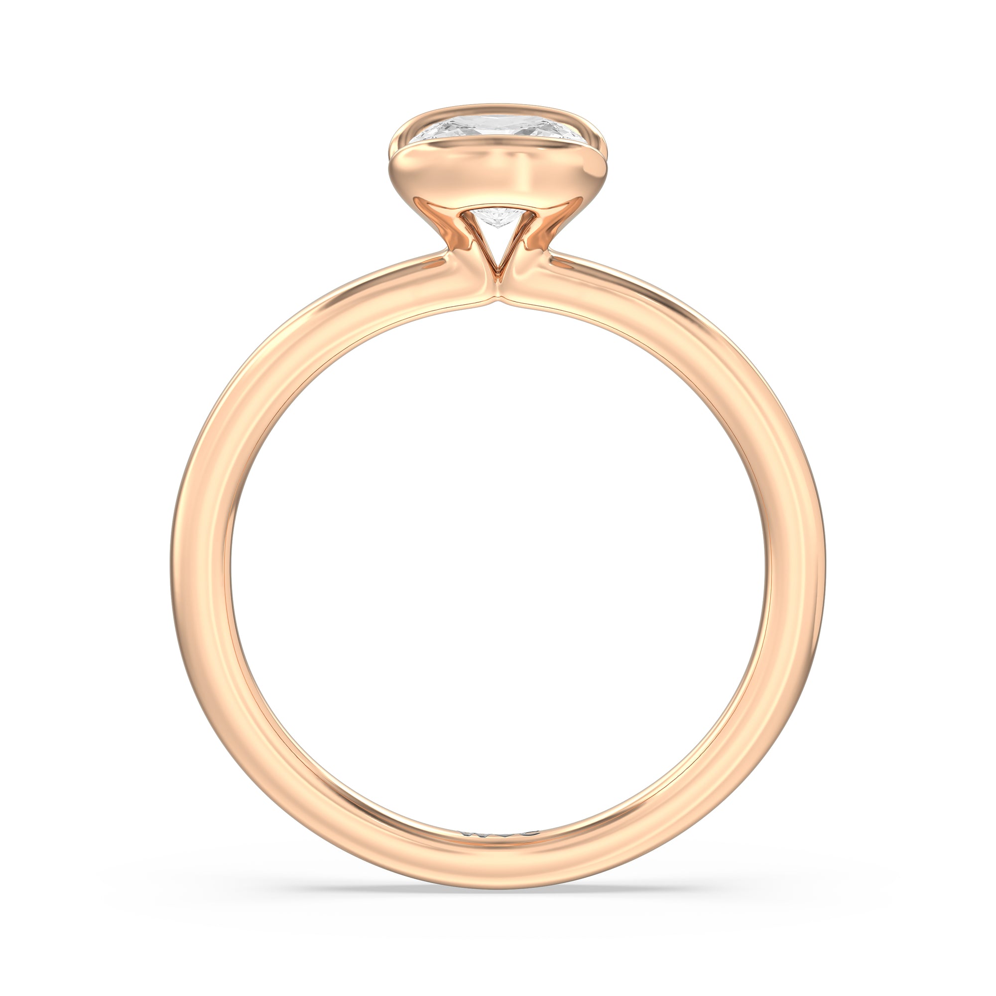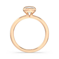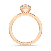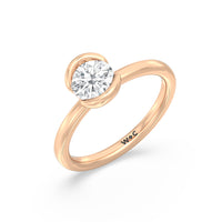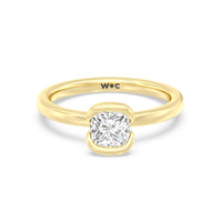 This is a sleek and modern spin on the classic solitaire engagement ring. Its band extends upward, forming the ring's head and acting as bezels that secure the diamond centre stone in place. A top view of the ring shows the centre stone cradled by half bezels. The design of the Iris Engagement Ring is perfect for future brides who need a ring that can keep up with the demands of an active lifestyle.