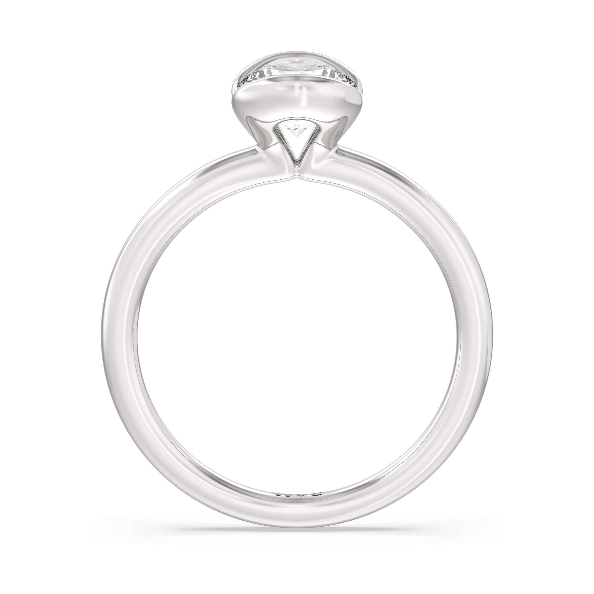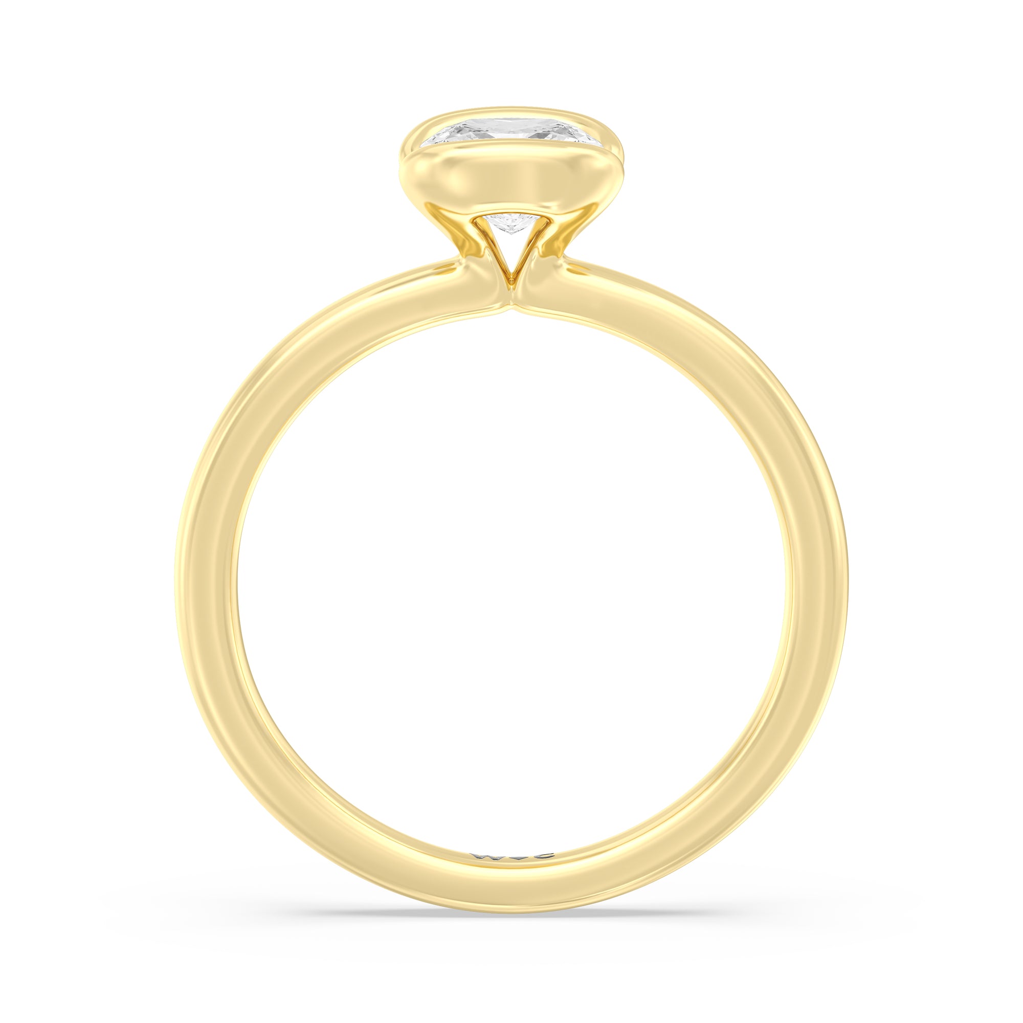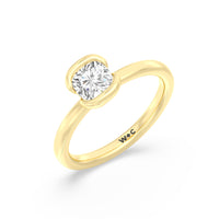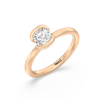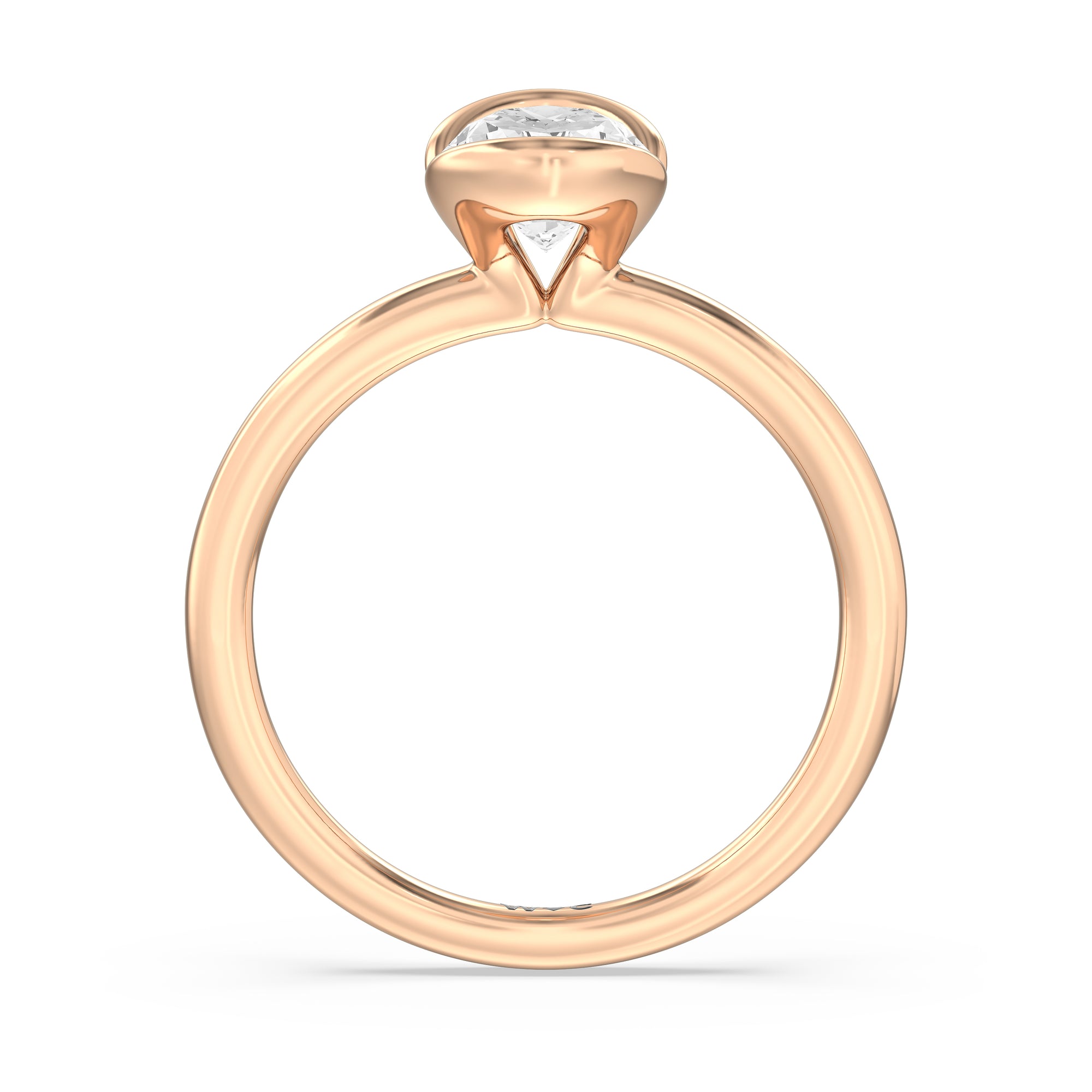 This is a sleek and modern spin on the classic solitaire engagement ring. Its band extends upward, forming the ring's head and acting as bezels that secure the diamond centre stone in place. A top view of the ring shows the centre stone cradled by half bezels. The design of the Iris Engagement Ring is perfect for future brides who need a ring that can keep up with the demands of an active lifestyle.