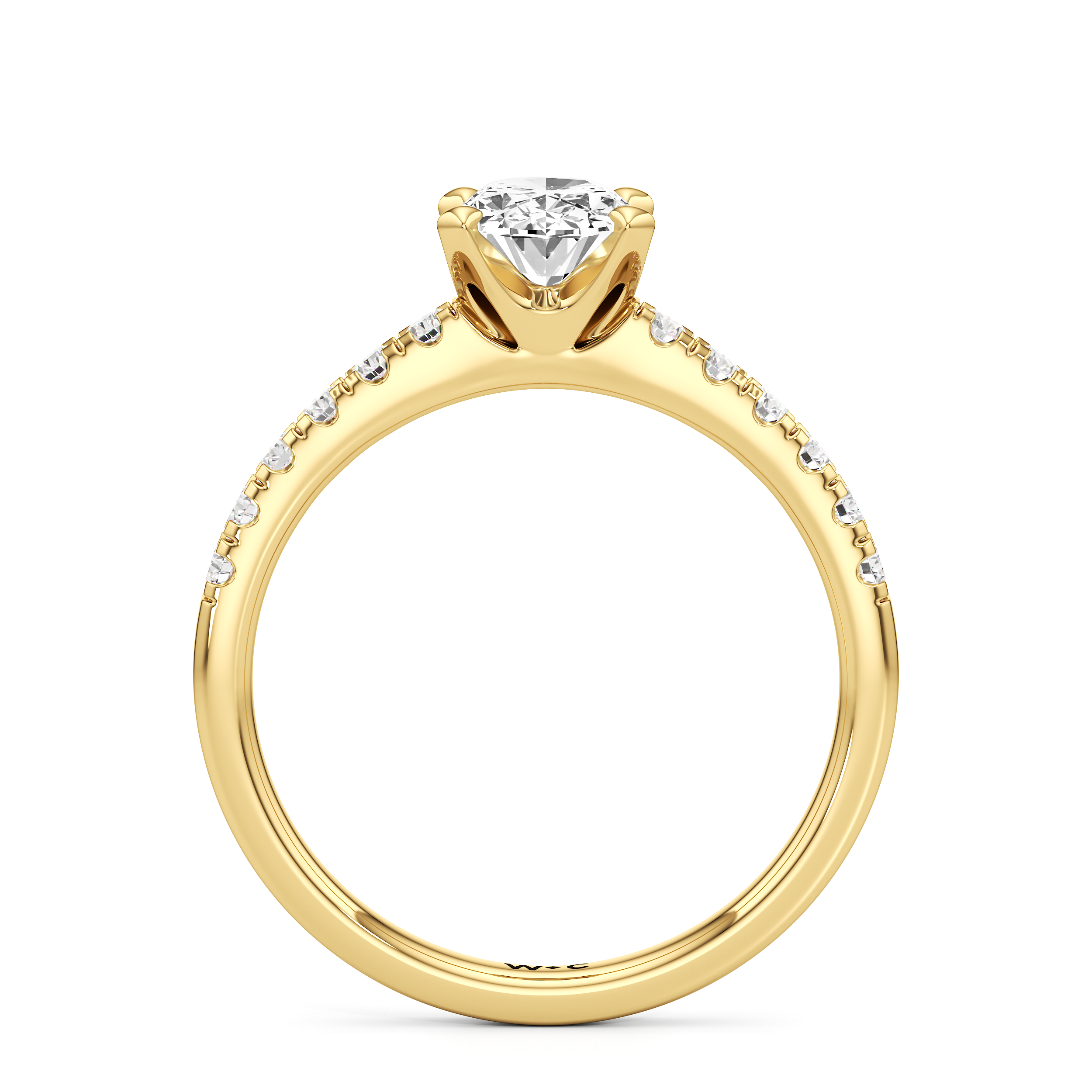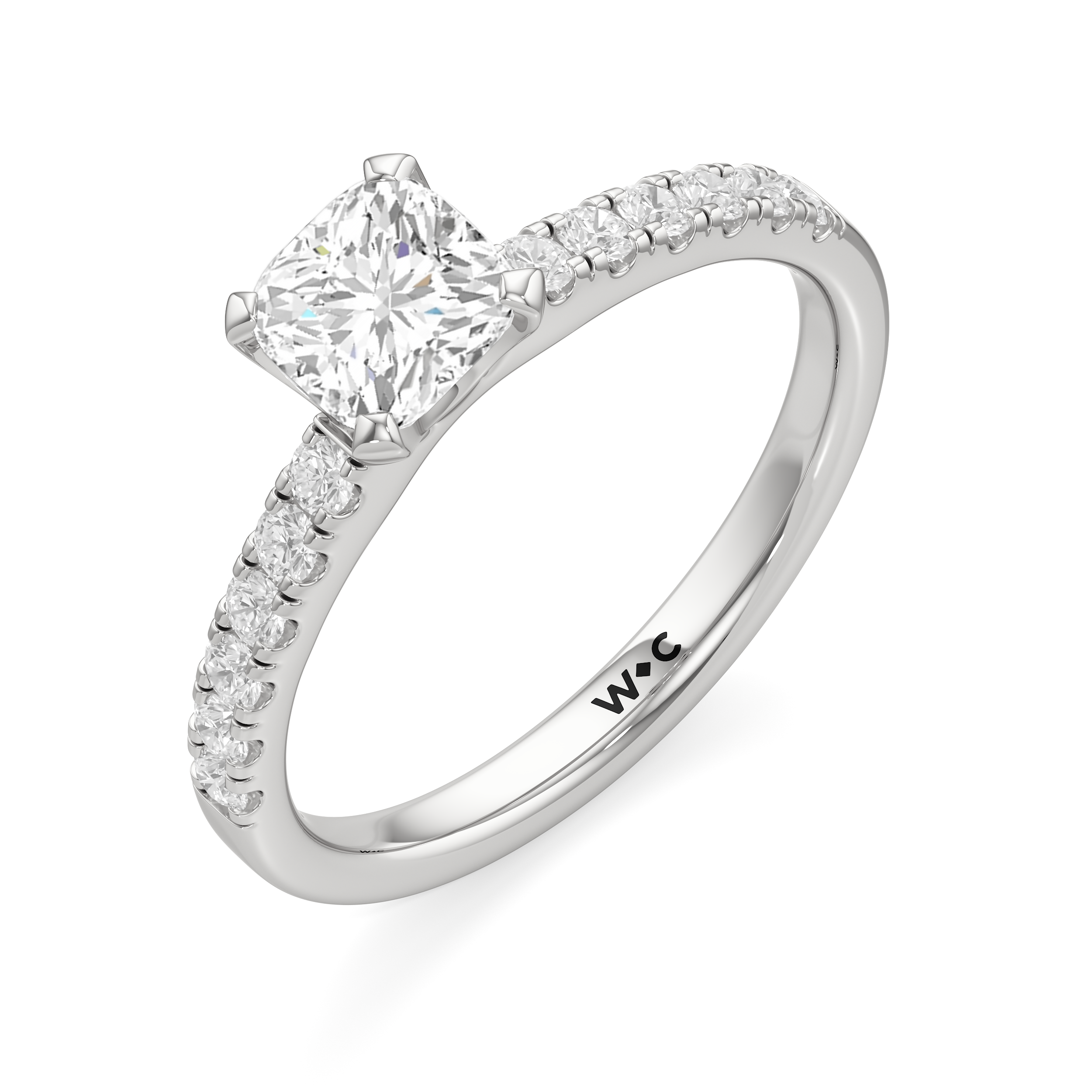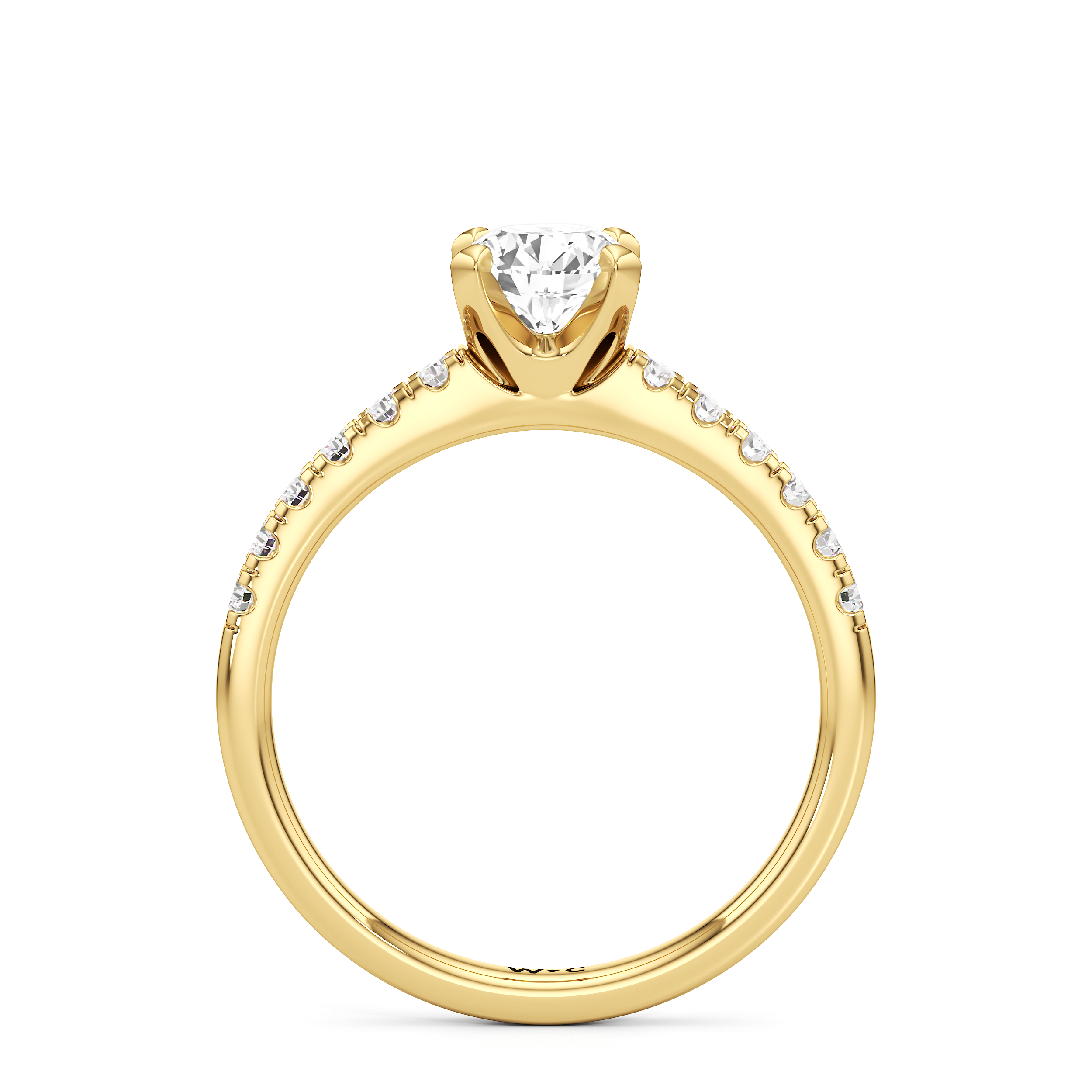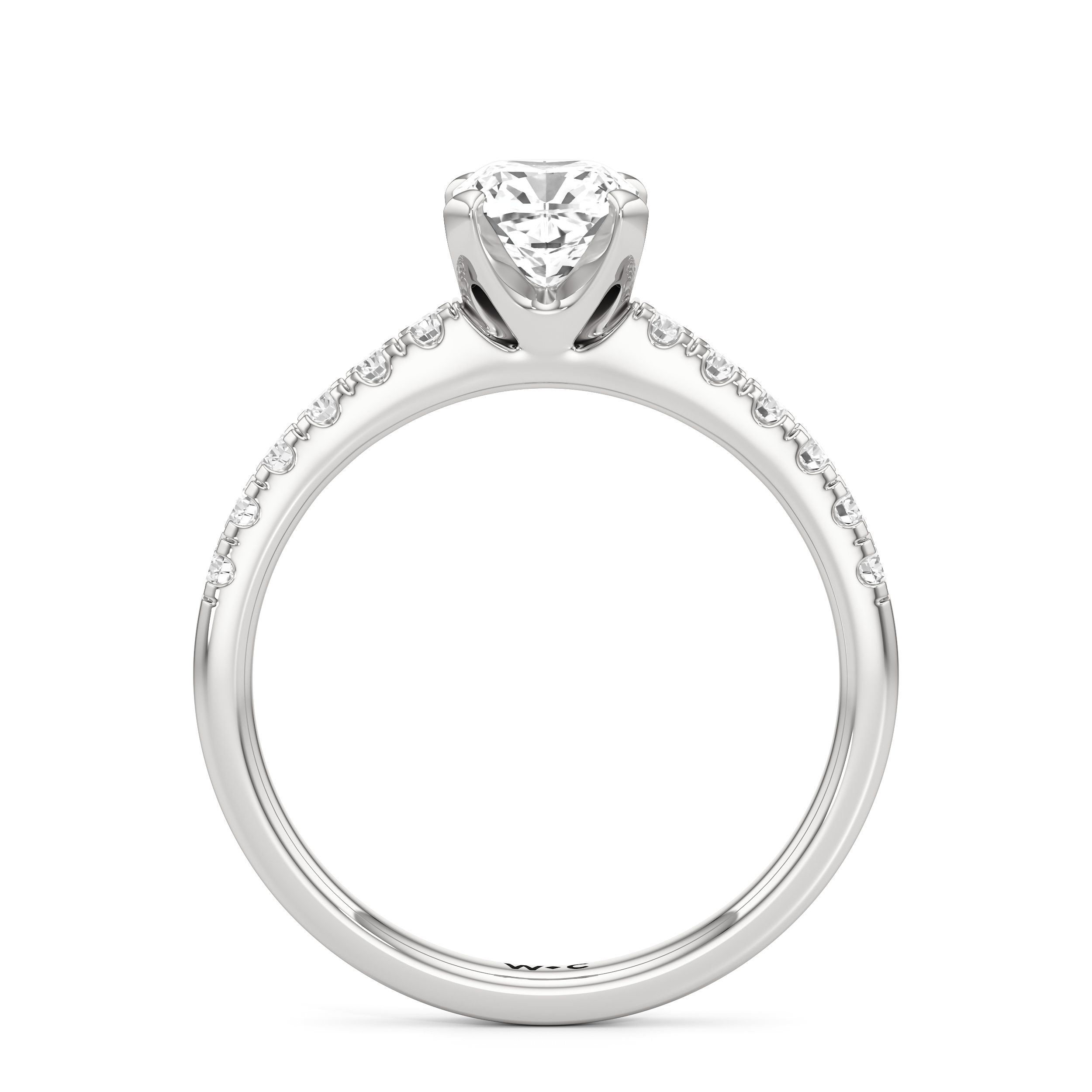 Dainty and delicate yet with an unmistakable shine, the Isabel Engagement Ring is an ideal choice to mark your unique love story. The ring features a round diamond centre stone set on four prongs. It sits on a classic polished band with shoulders adorned with diamonds on split prongs. The centre stone basks in the spotlight, while the accent diamonds ensure a continuous sparkle.