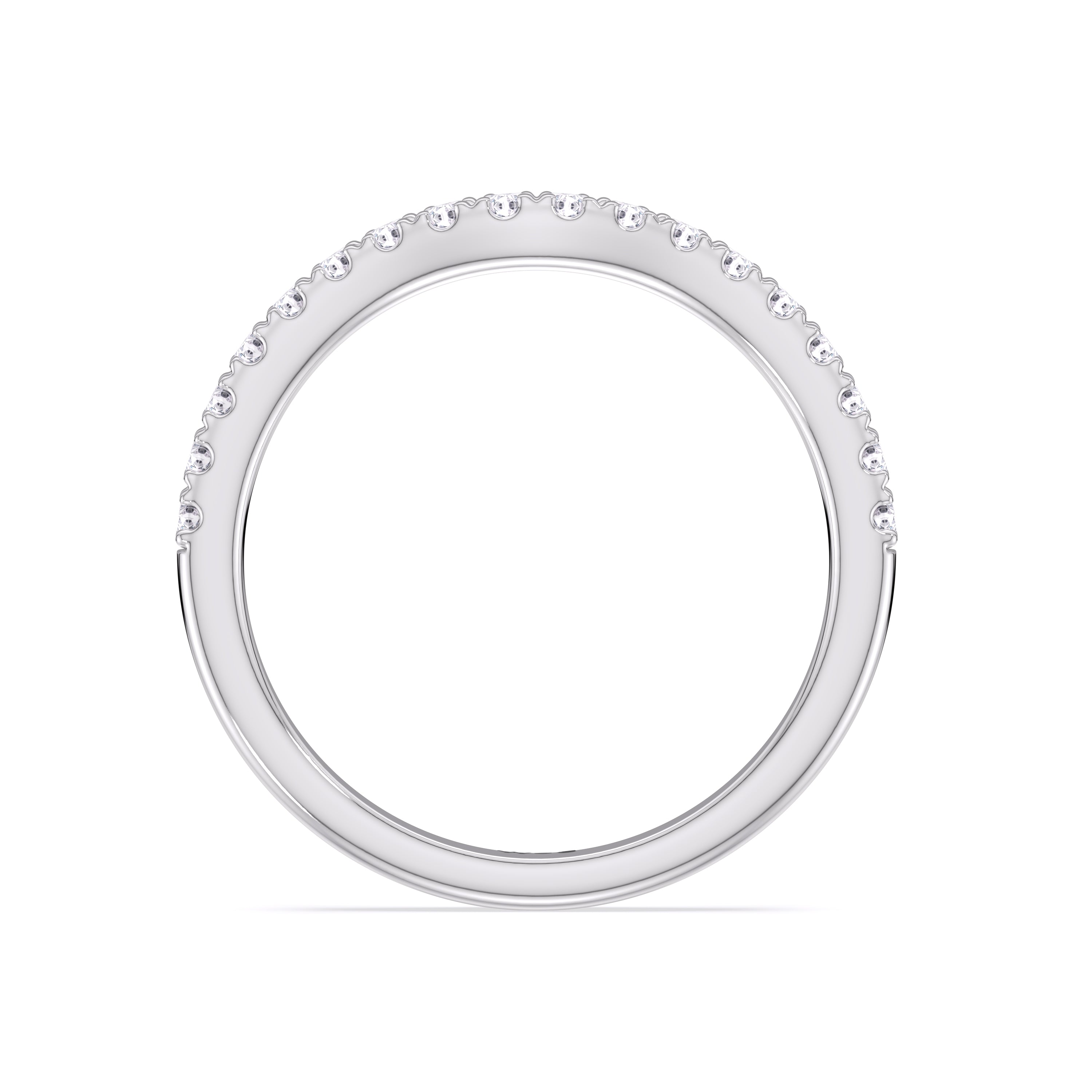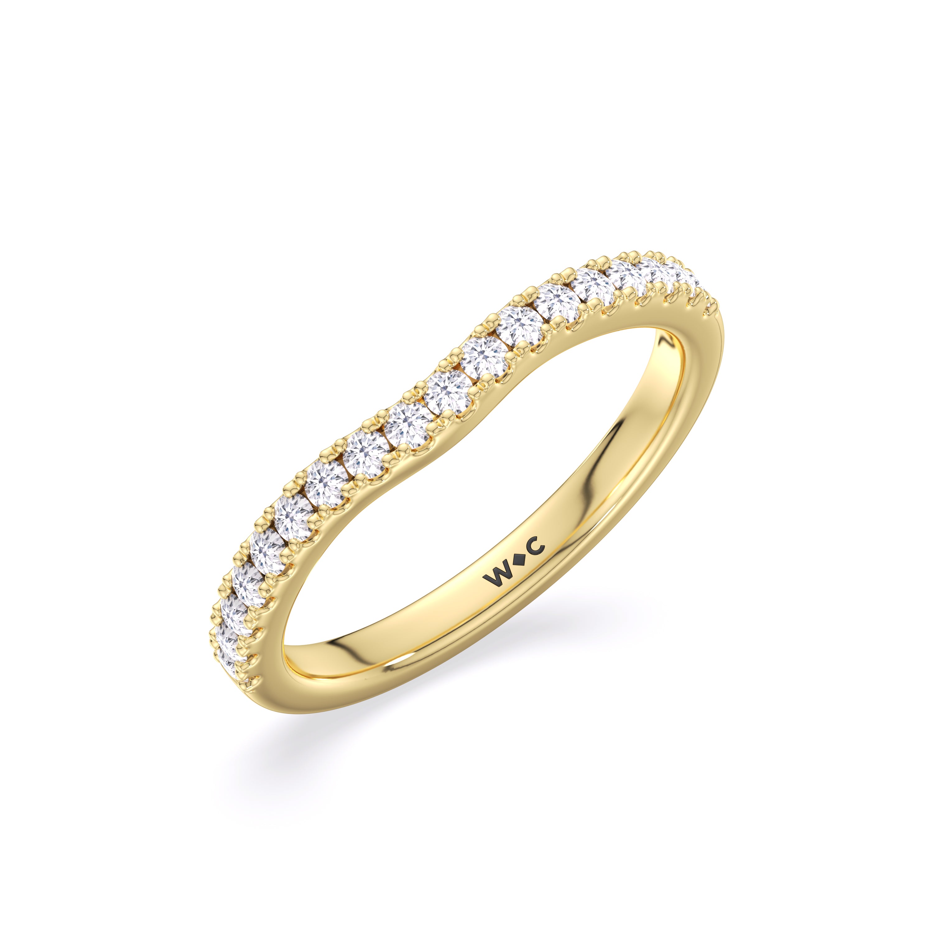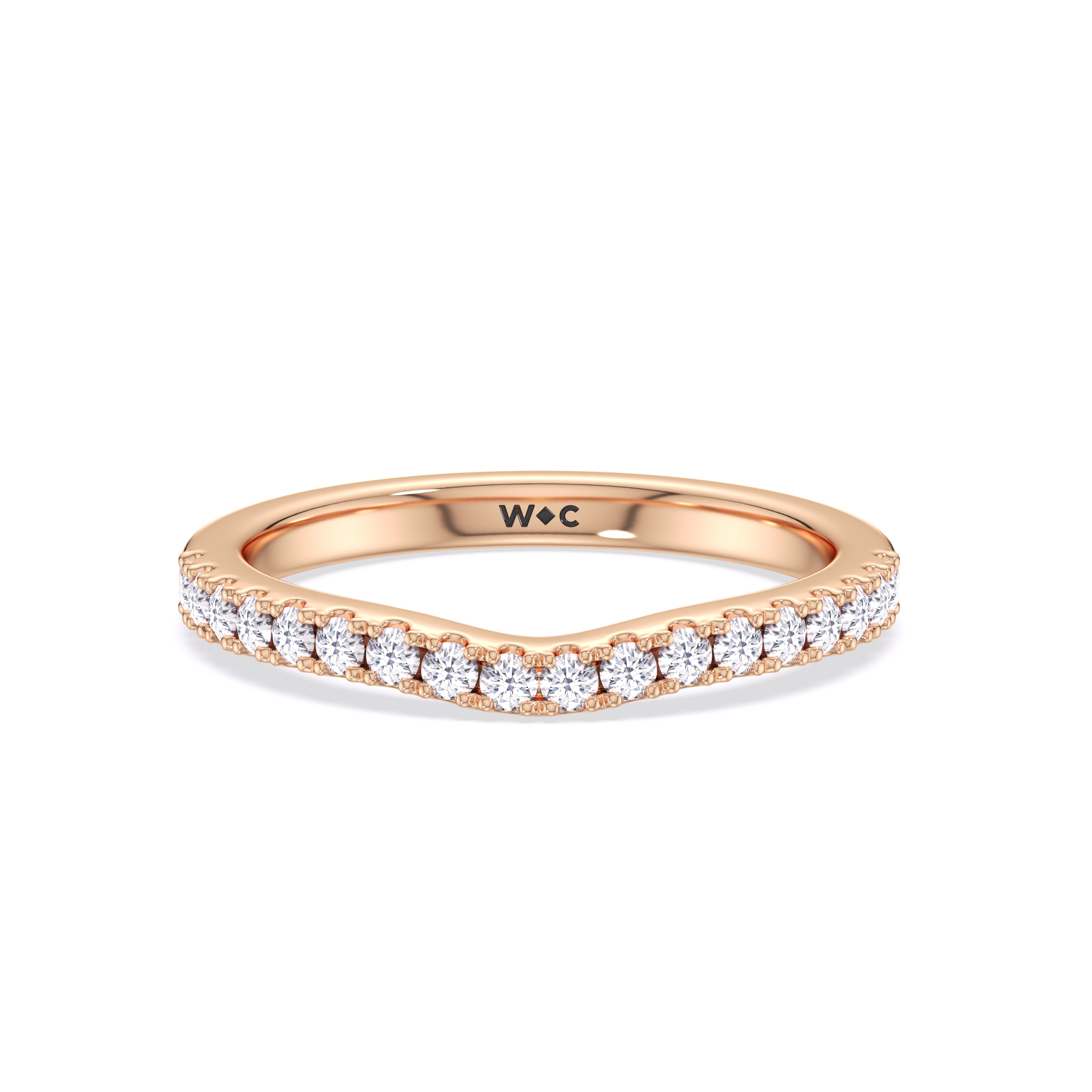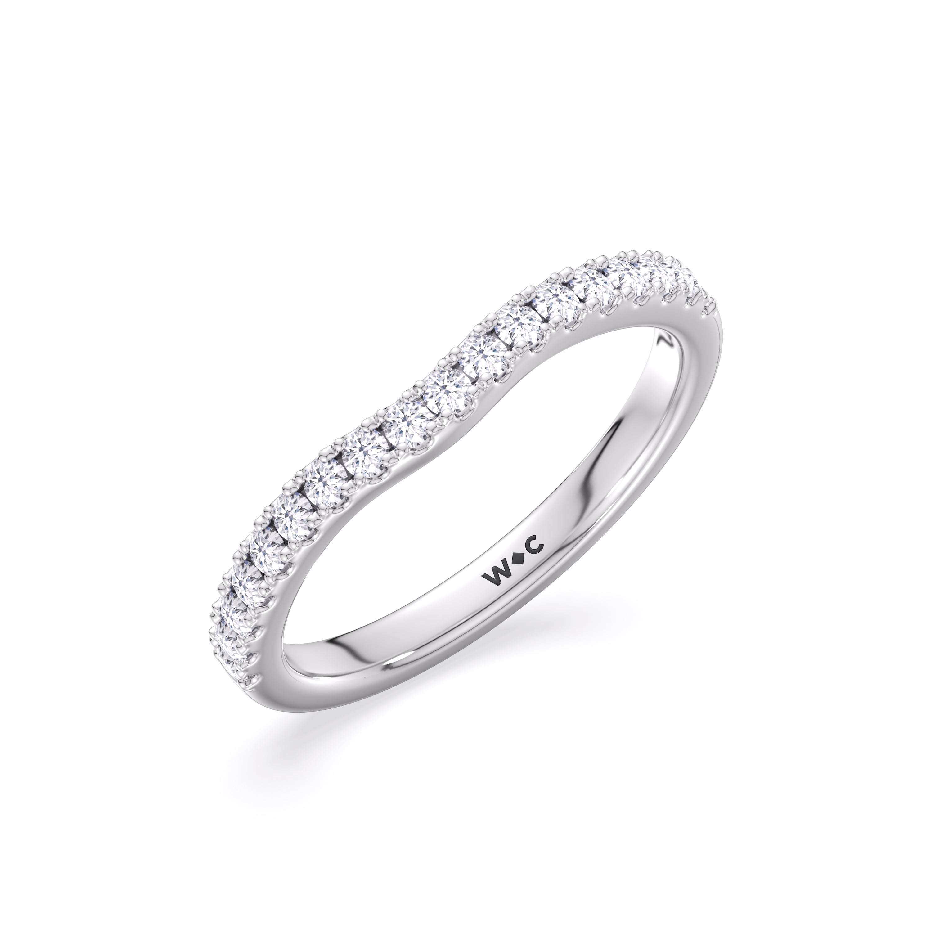This curved diamond set wedding band is perfectly contoured to complement our The Kaia Diamond Wedding Band for a simple and sophisticated look.