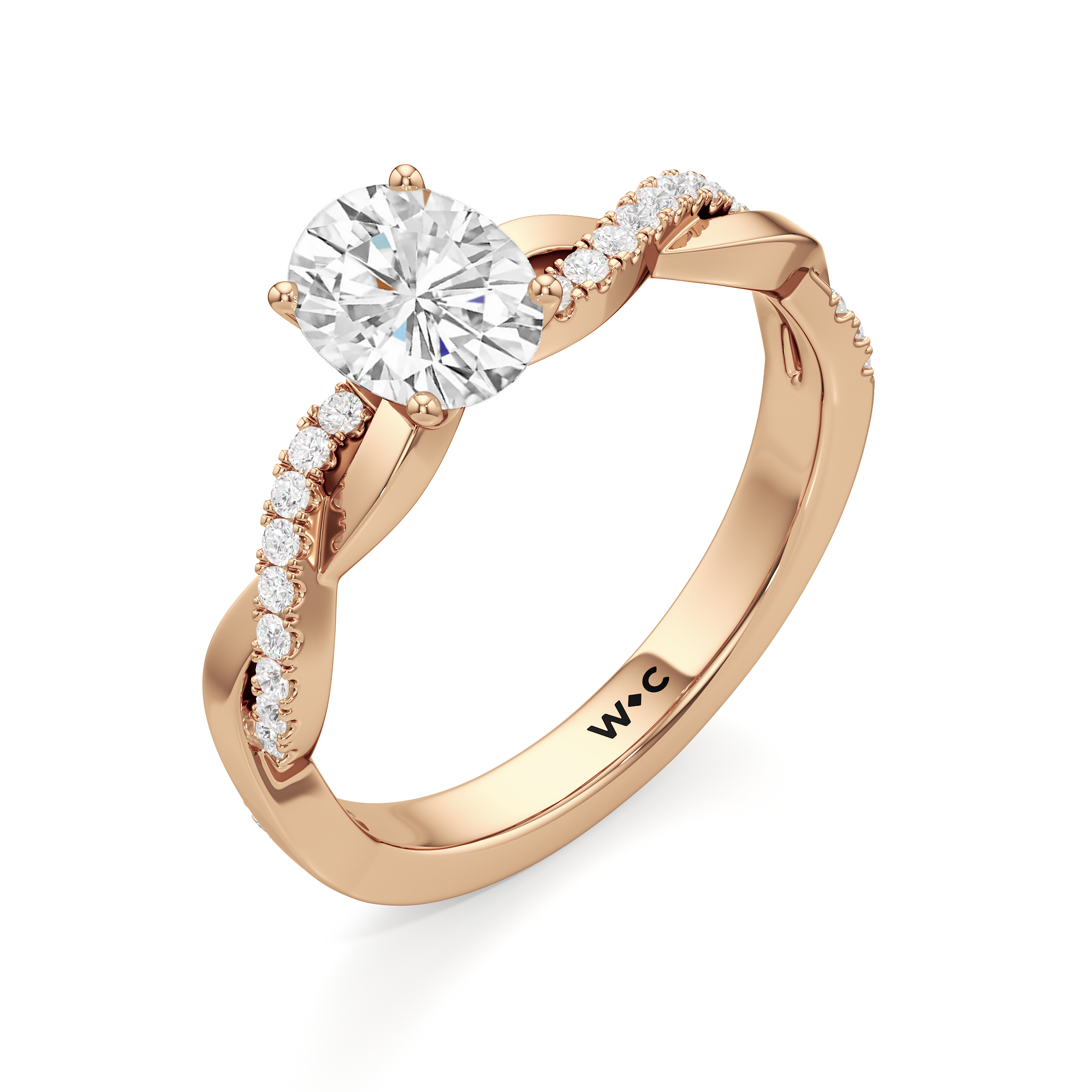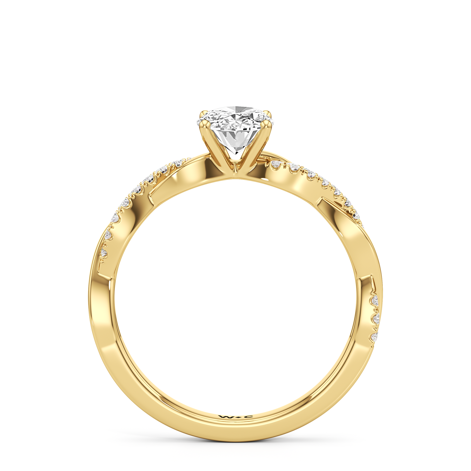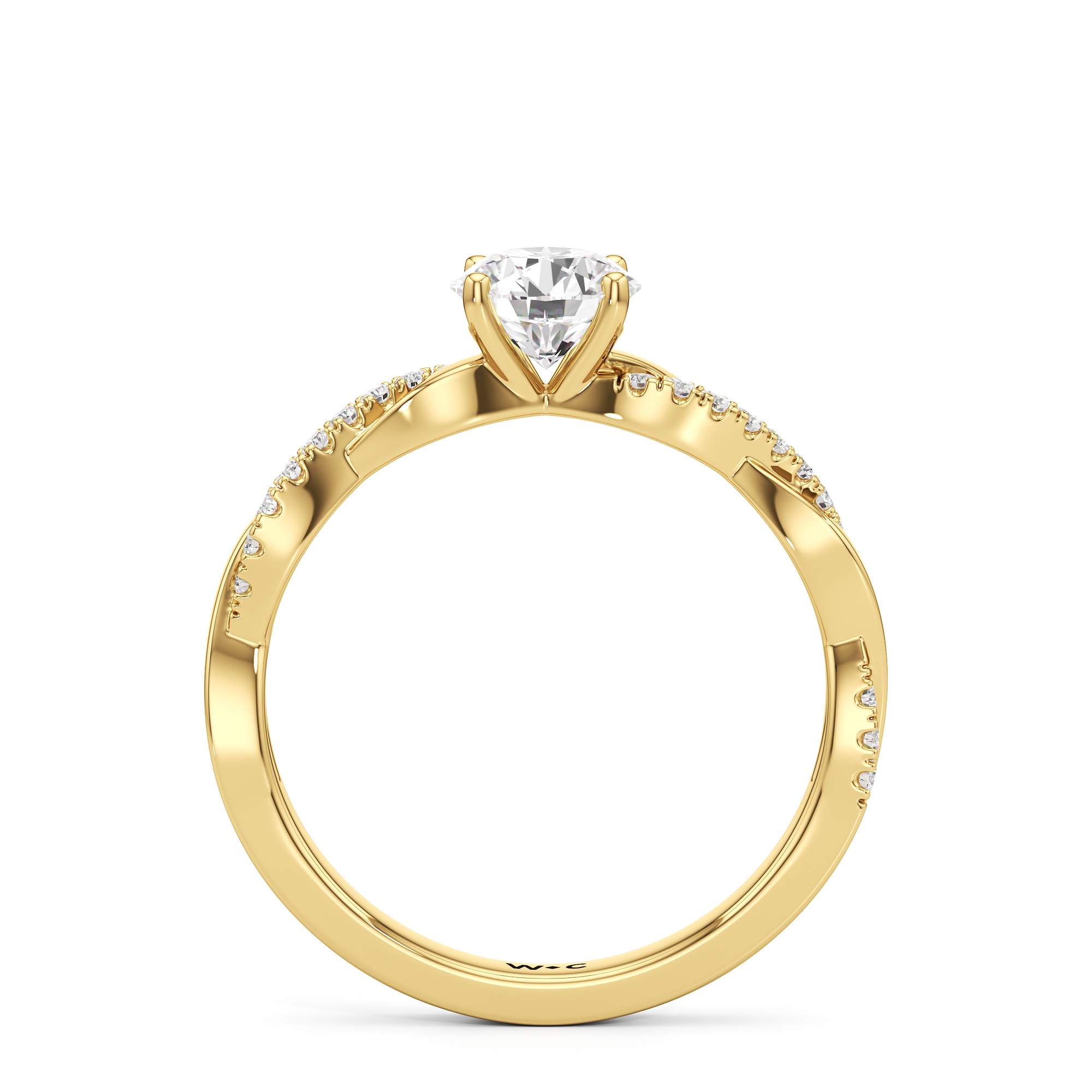 Twisted and timeless, the Lennon Engagement Ring makes a fine alternative to the conventional solitaire pavé ring. This ring features a polished band with split shoulders that intertwine. One strand has a plain, polished finish, while the other is adorned with petite round diamonds held in split prongs. The curvy band directs the eye to the diamond centre stone.