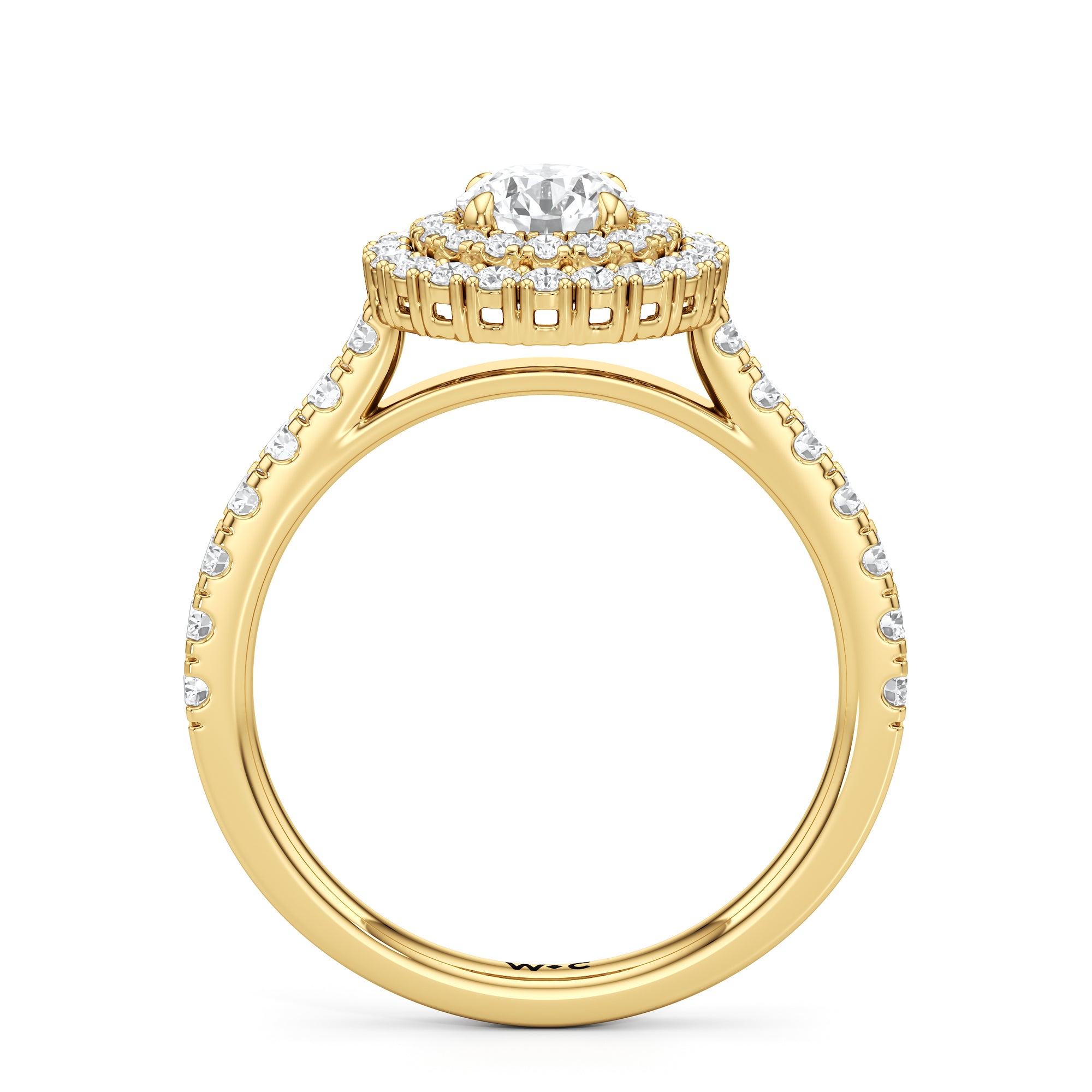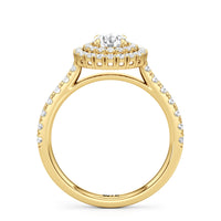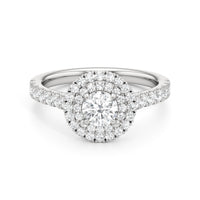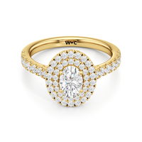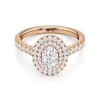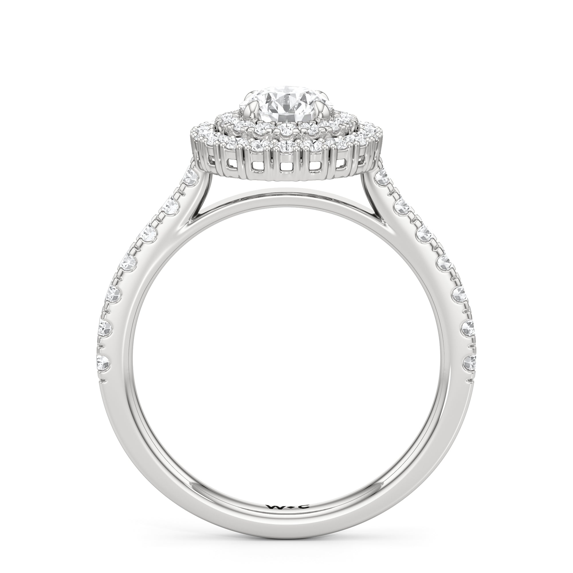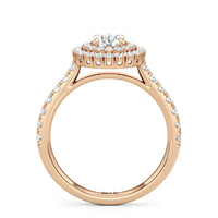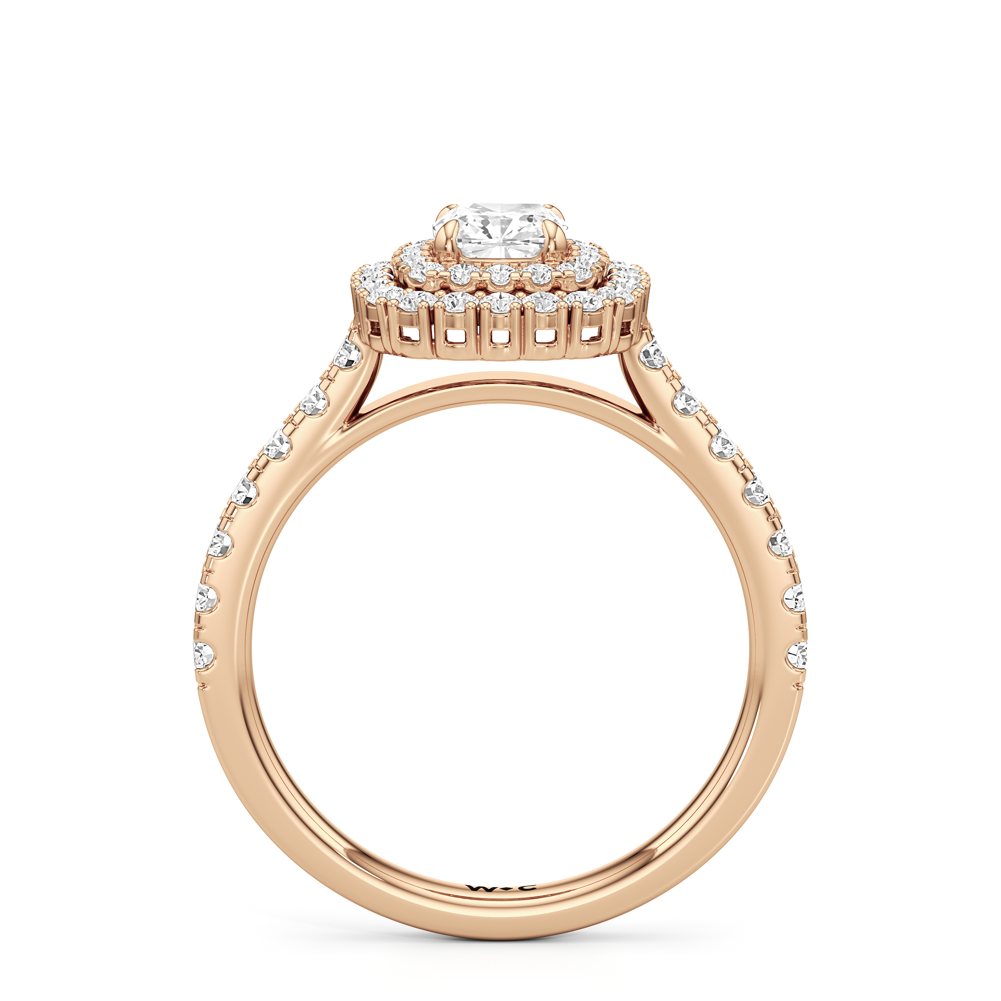 Meet Lottie, a masterfully crafted two-toned engagement ring with an elegantly layered halo. This luxurious symbol of love carries a diamond centre stone framed by double halos. The cathedral shank and its arching shoulders are pave-set with more diamonds, ensuring endless shimmer from all angles. The Lottie Engagement Ring is the piece to pick to symbolise your endless love.