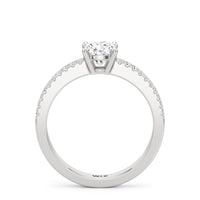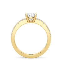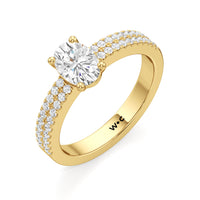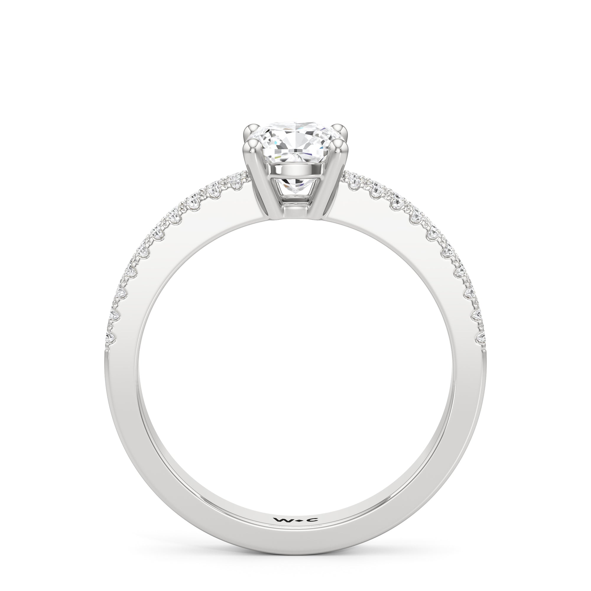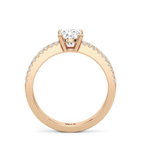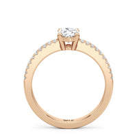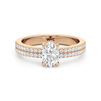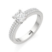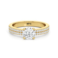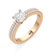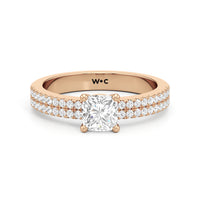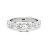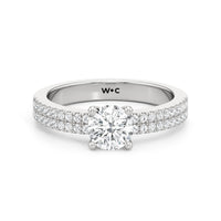 The Louisa Engagement Ring boasts a band that reinforces the beauty and brilliance of the centre stone. This marvelous piece features two rows of pave diamonds on its band, highlighting a centre diamond on four prongs. For an engagement ring that delivers on glamour and sophistication, this ring makes an excellent choice. The Louisa engagement ring can also be stacked with a wedding band.