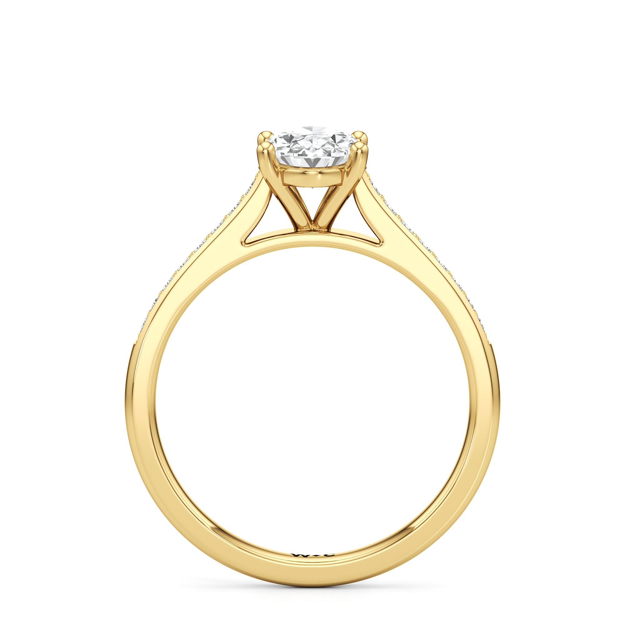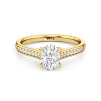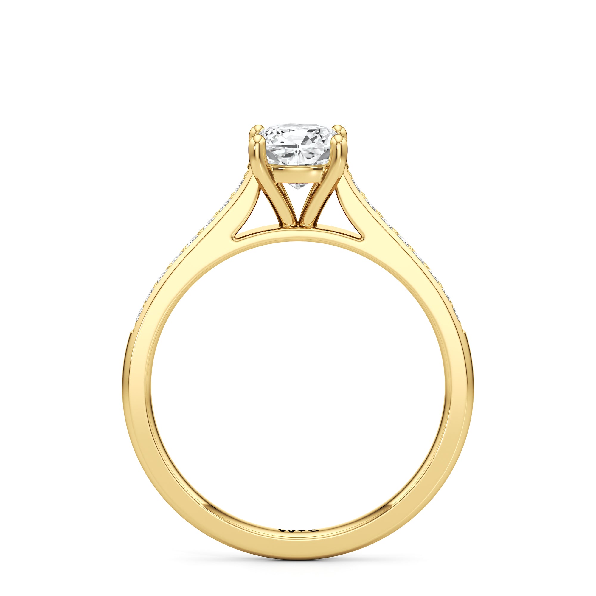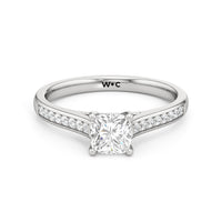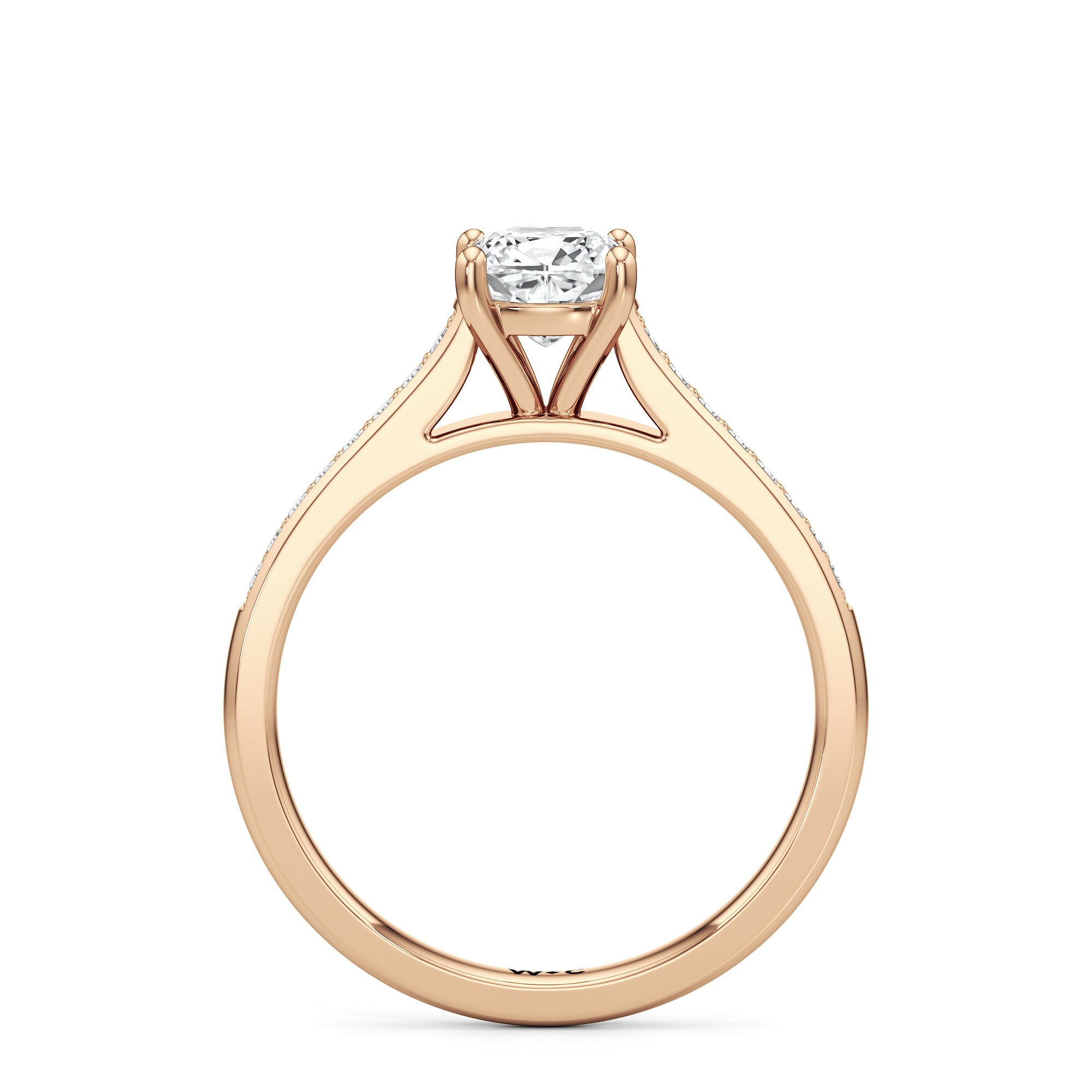 Introducing the Margot Engagement Ring, an undeniable symbol of unfading and unending love and elegance. Designed with a cathedral shank with graceful shoulders traced by a striking row of diamonds. The classic pavé band directs attention to the magnificent centre stone, which is cradled by a four-prong setting.