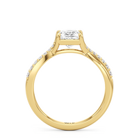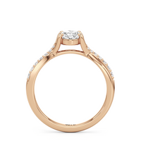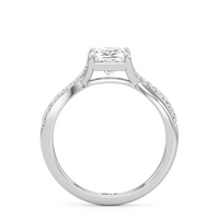 Begin your forever with the charming and refined Melody Engagement Ring. This brilliant design rests on a cathedral shank with split criss-cross shoulders that gracefully lift the center diamond. Petite round diamonds that gradually ascend in size cascade down one strand on each split shoulder. These curved rows of brilliance made a simple cathedral setting look completely unique.