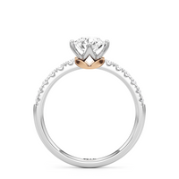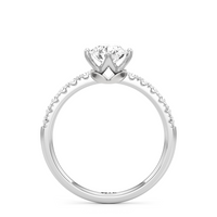 An infinitely charming symbol of commitment, this diamond engagement ring takes inspiration from nature. It features a diamond-studded band topped with a diamond centre stone on a compass split-prong setting. Underneath the focal stone is a leaf-shaped accent, providing the ring with added visual interest.