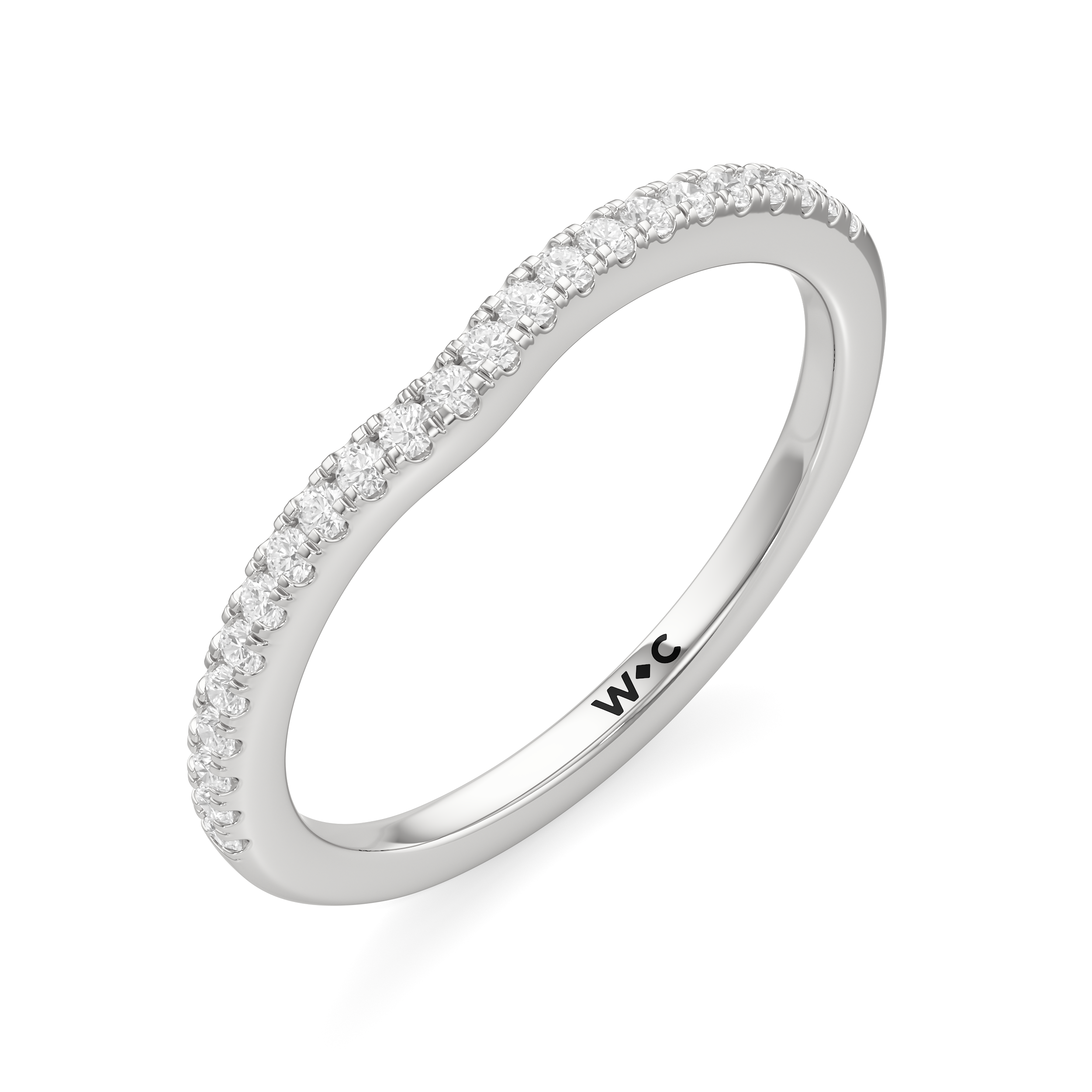 This curved diamond set wedding band is perfectly contoured to complement our The Miriam Diamond Wedding Band for a simple and sophisticated look.