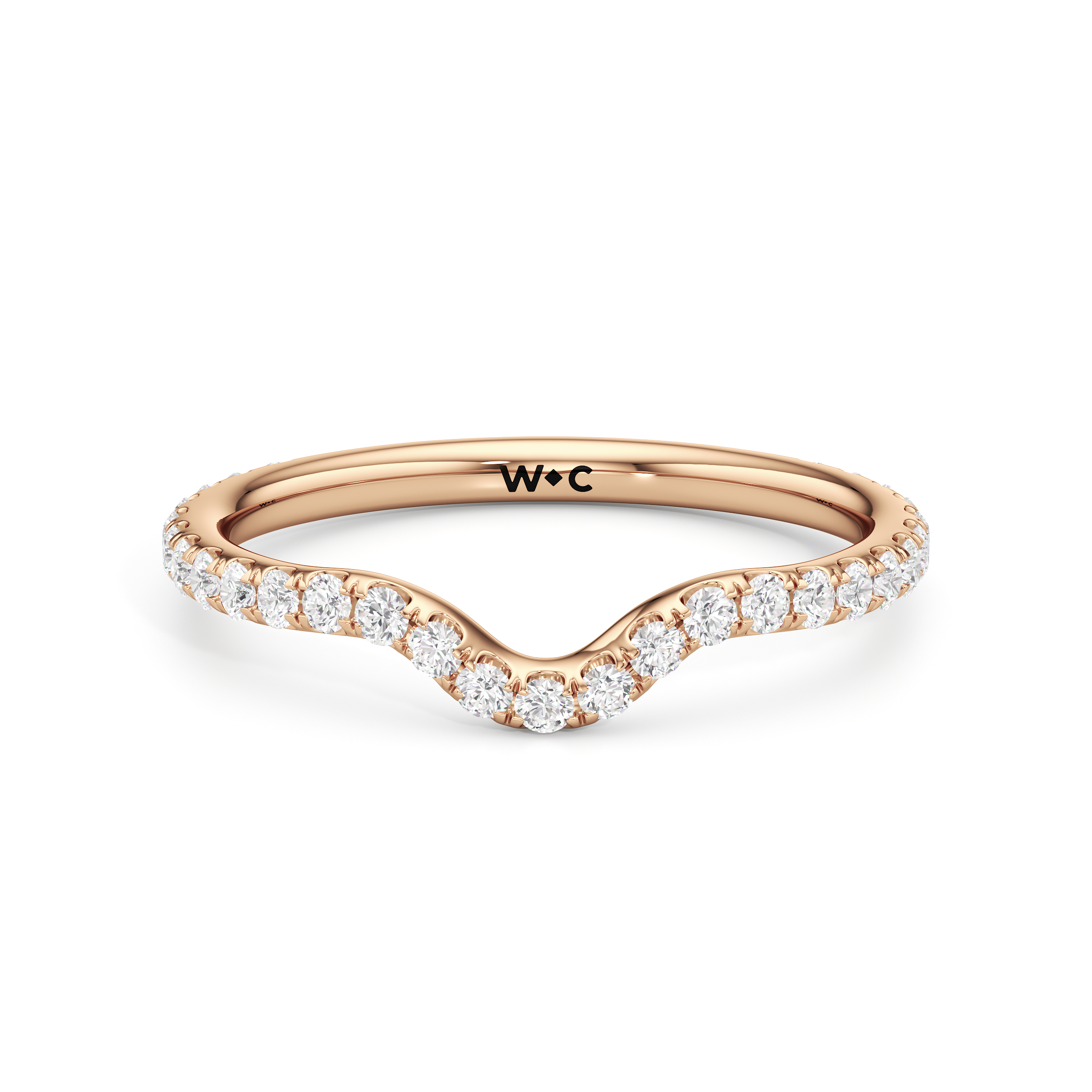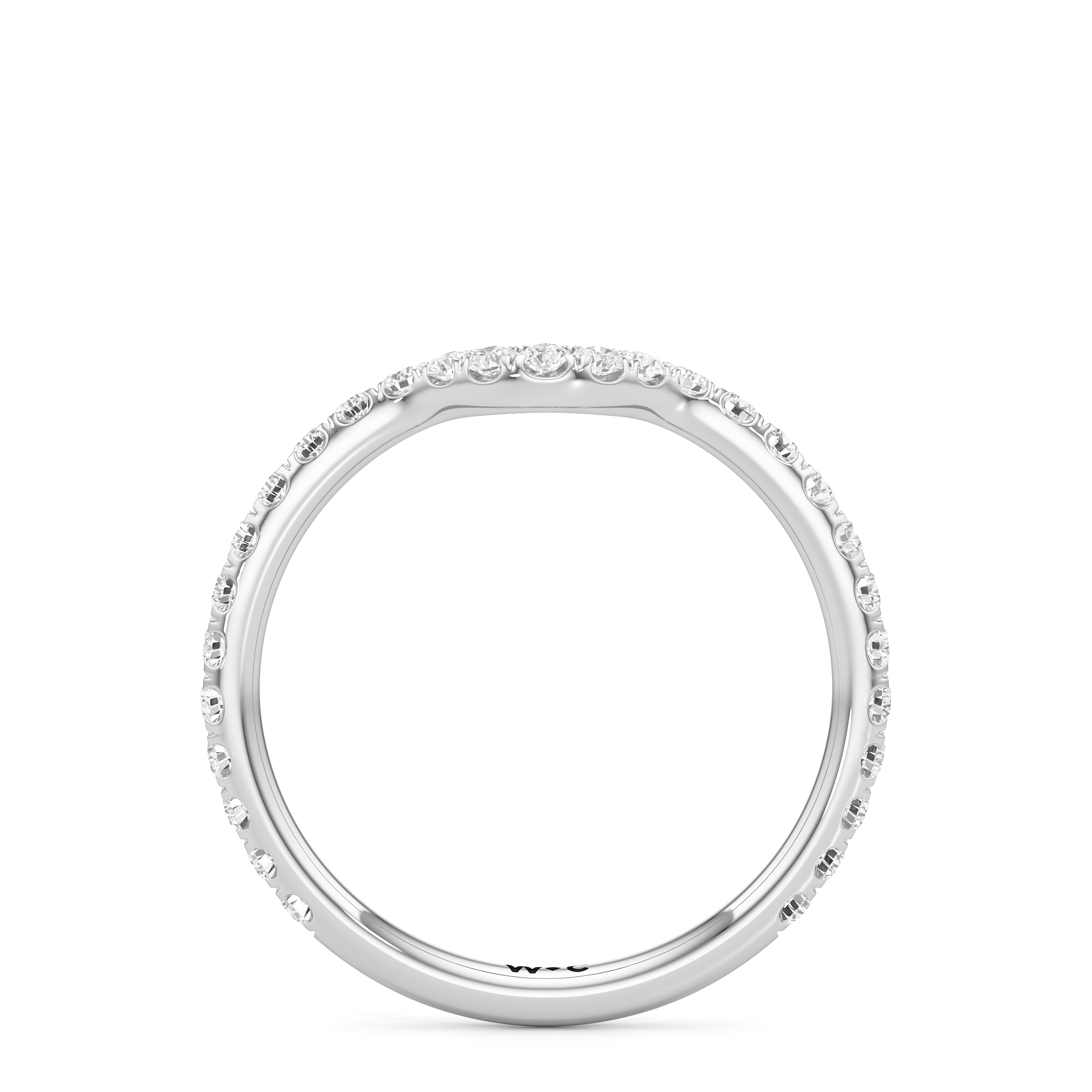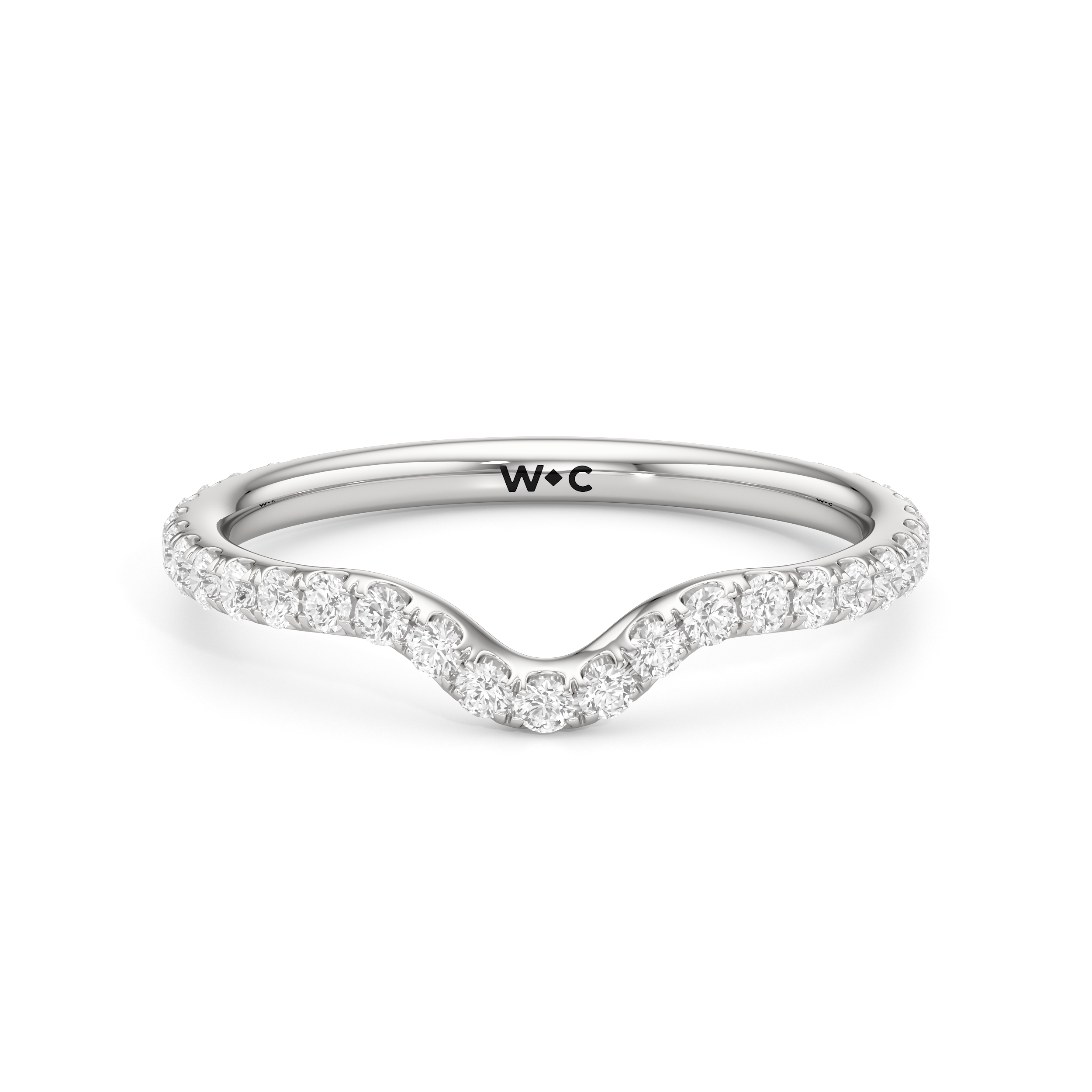 This curved diamond set wedding band is perfectly contoured to complement our The Frankie Three Stone Diamond Wedding Band for a simple and sophisticated look.