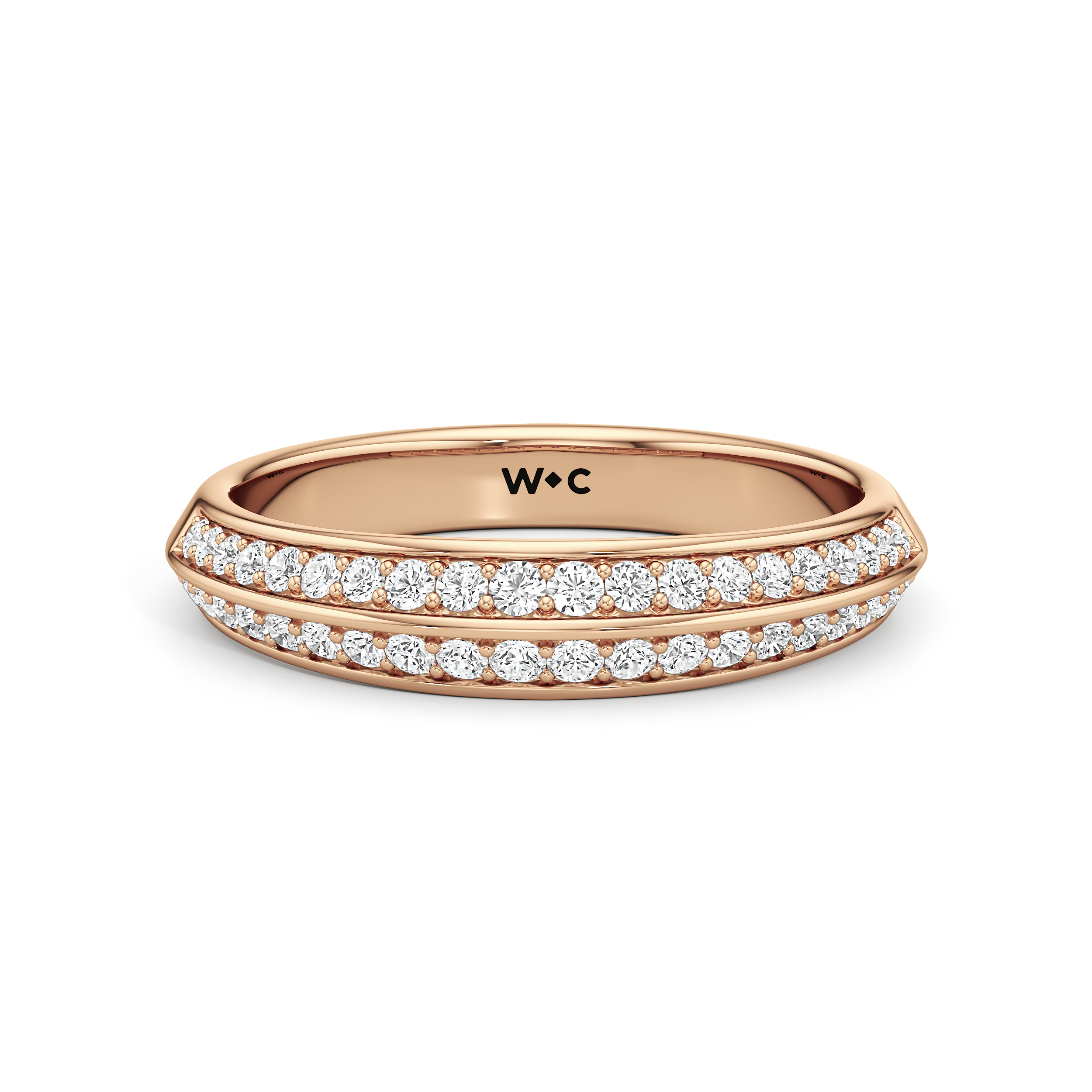 Shimmering pave diamonds cascade down this band to create a timeless beauty that will never go out of style. Designed to be paired with our The Scarlett Diamond Wedding Band for a simple and sophisticated look.