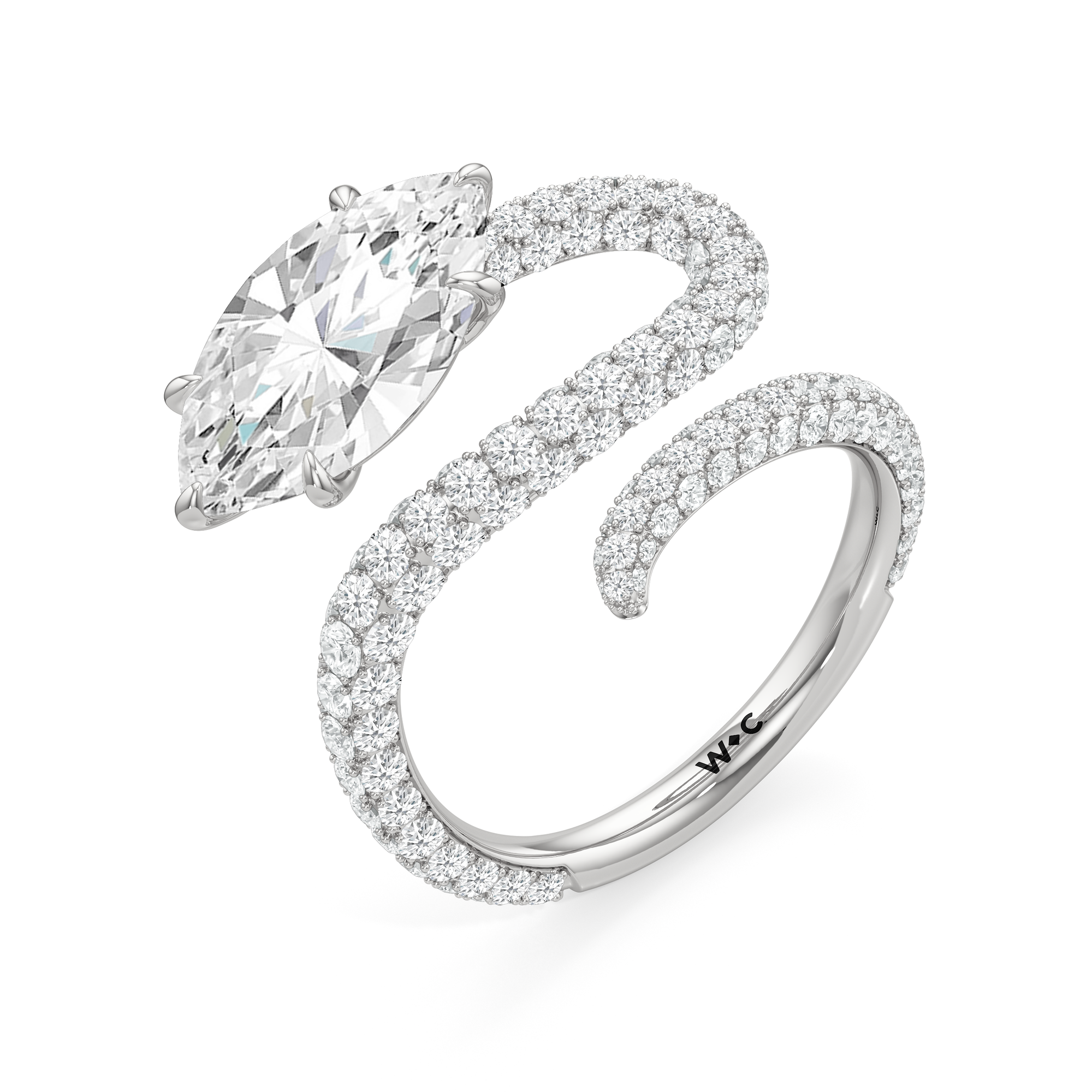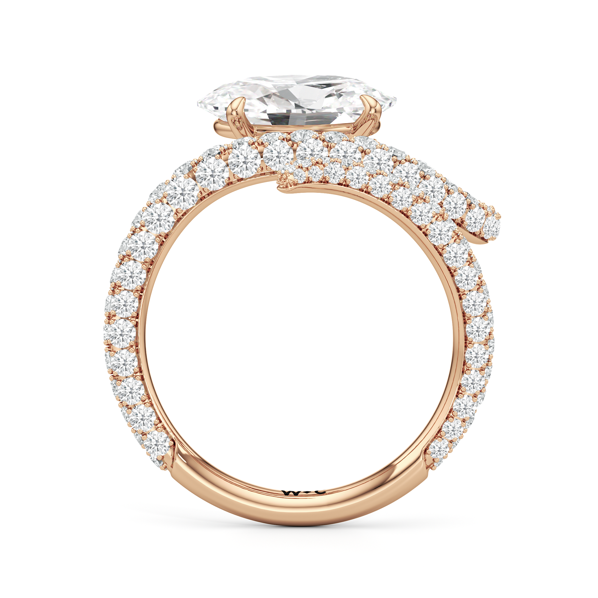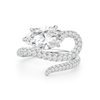 Minimal yet commanding. This ring's sinuous curves draw the eye to a brilliant oval diamond, making a statement with quiet confidence.