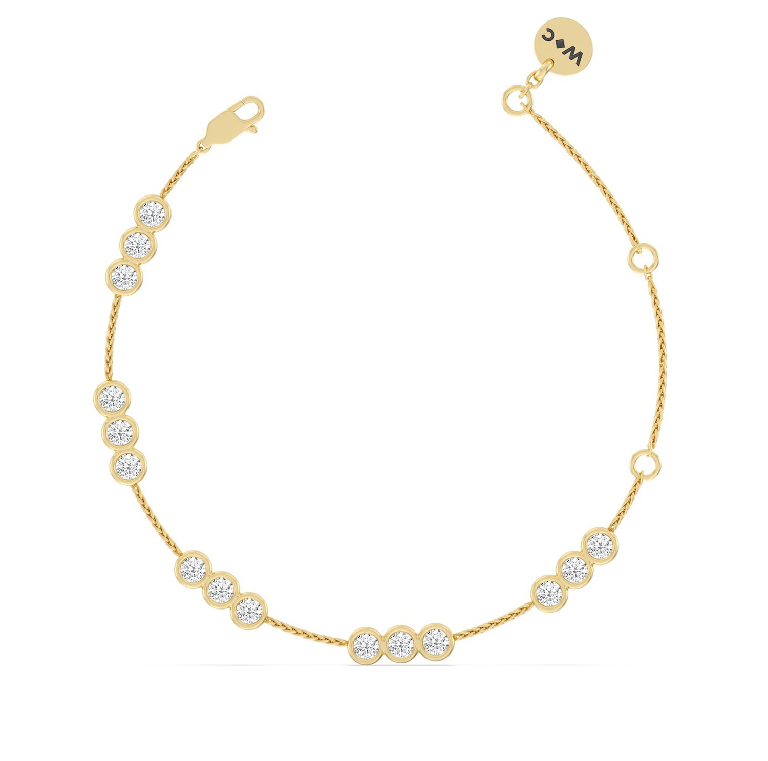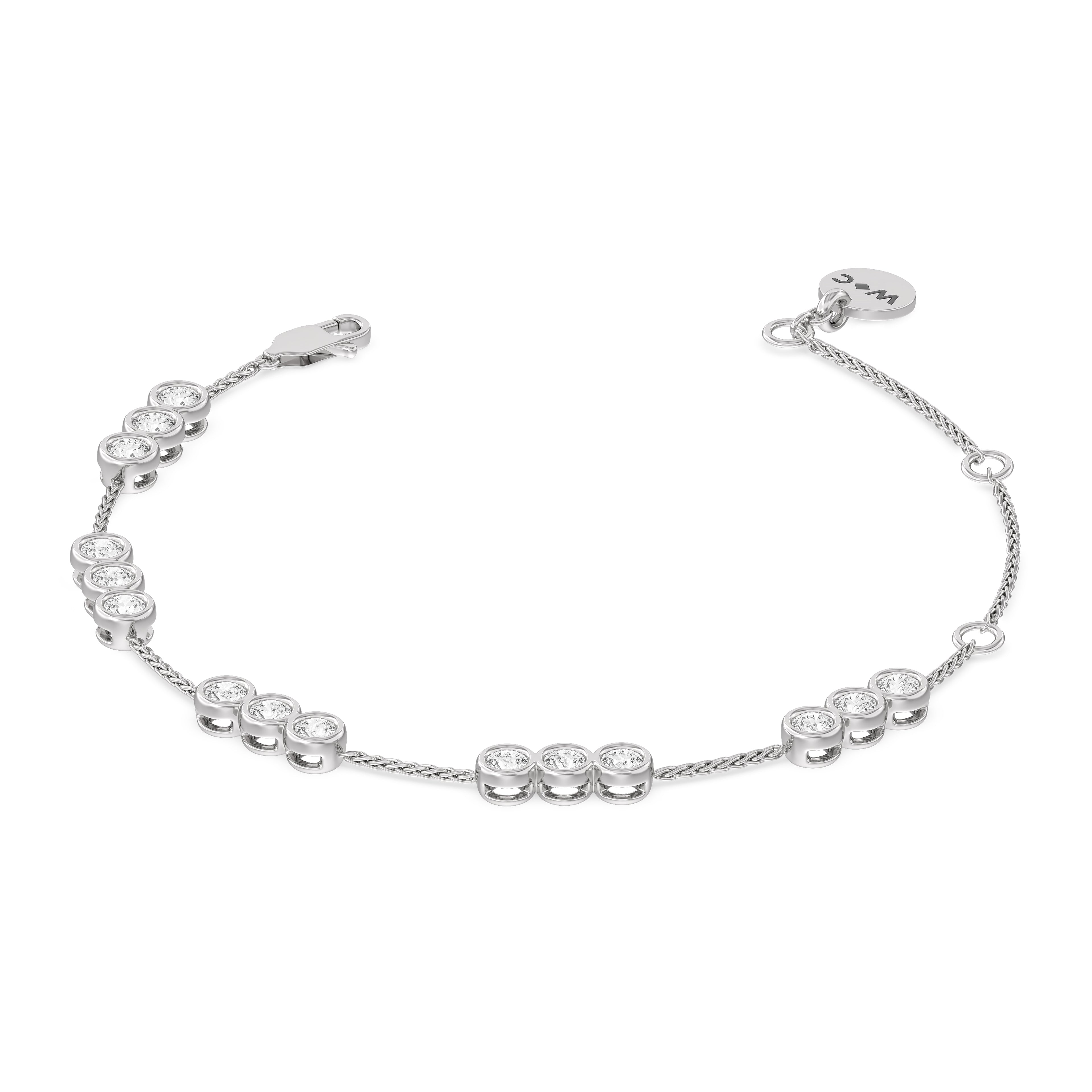 Round out your everyday style with the sparkle of this diamond bracelet. You can wear it on its own or stack it with a timepiece or a couple of bangles. This bracelet is designed to withstand frequent use. It features a series of diamond trios set securely on bezels. The bezel setting ensures the diamond stays firmly in place and its sides are protected from impact.