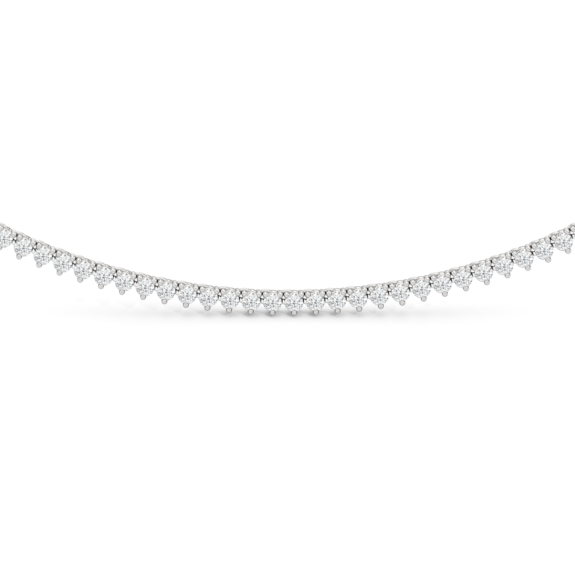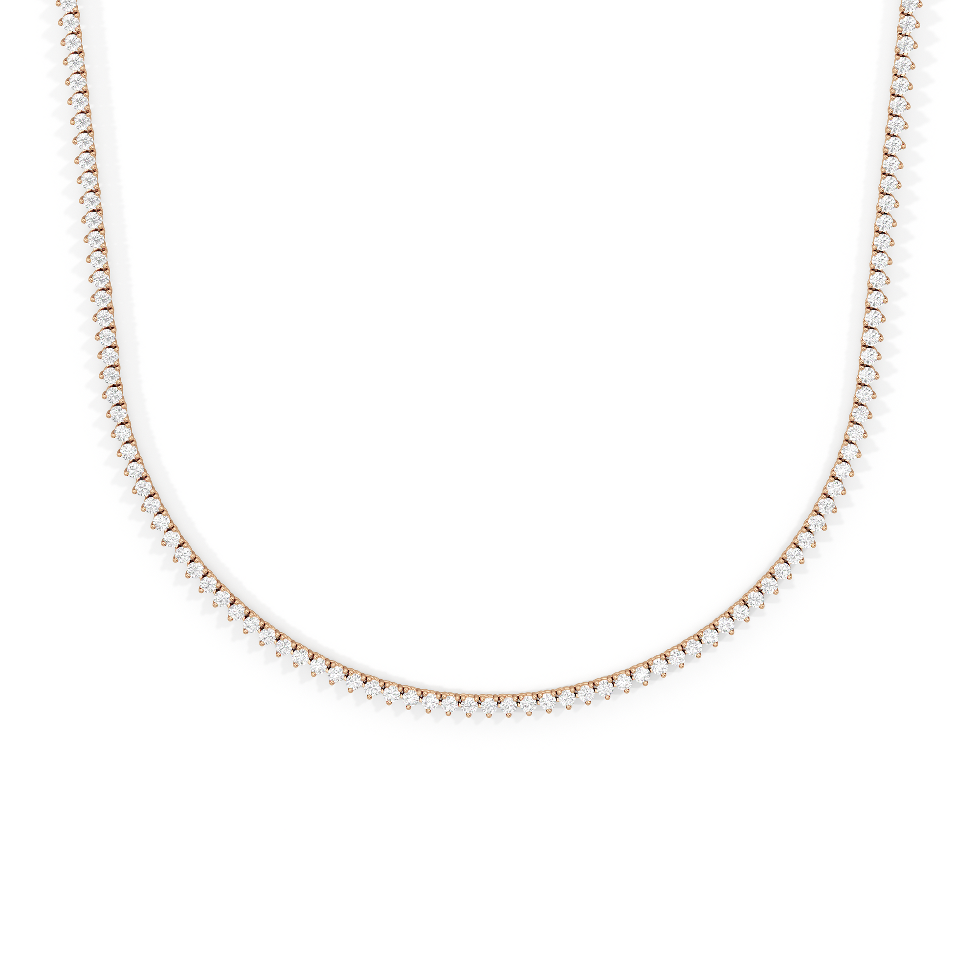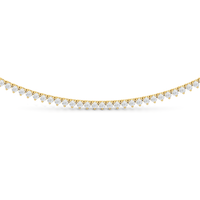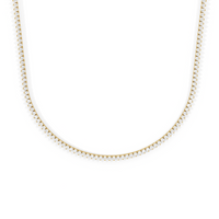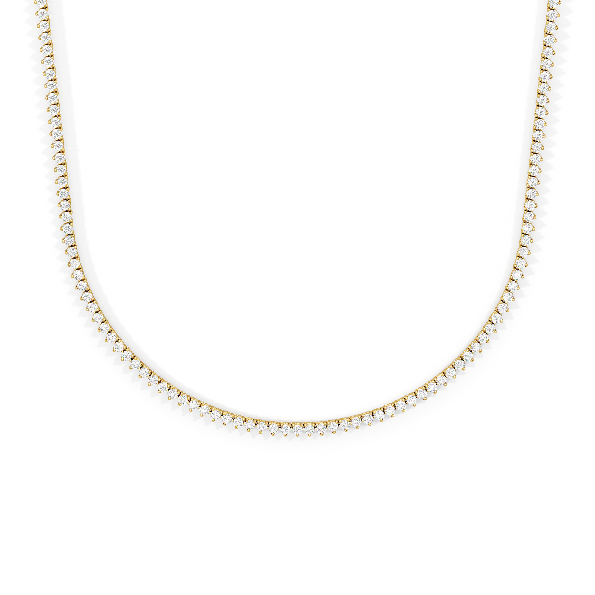 The Three Prong Half Diamond Tennis Necklace is a versatile and layer-friendly tennis necklace perfect for day-to-night wear. It features an airy, delicate profile with only three prongs holding each stone. The streamlined metal design also exposes more diamond surface, allowing more light to enter from all sides—maximizing the sparkle. With front-focused brilliance and a simple chain at the back, the necklace sits smoothly against the neck and is lighter and easier to wear.