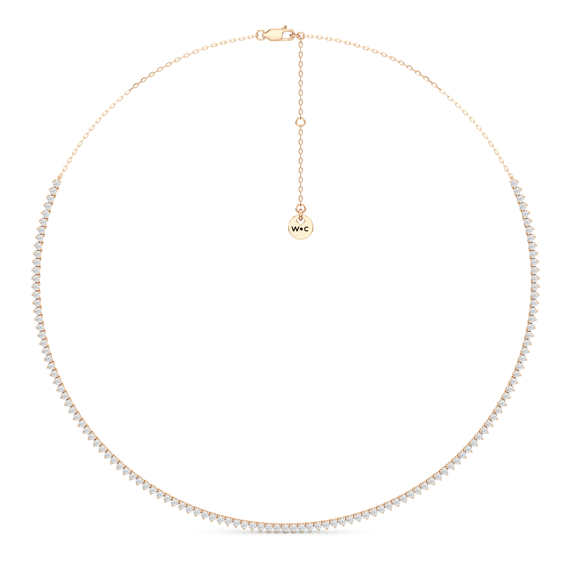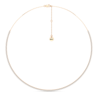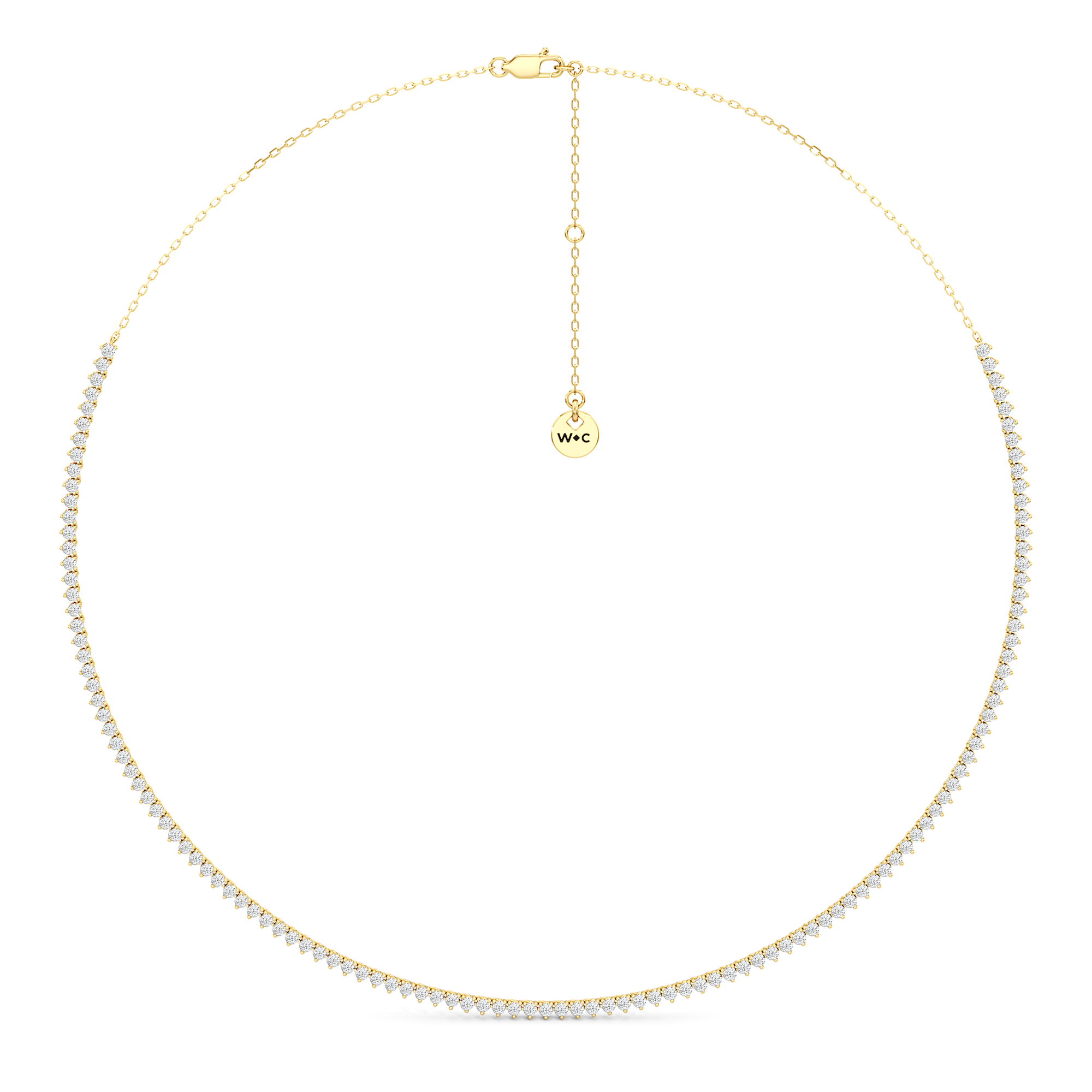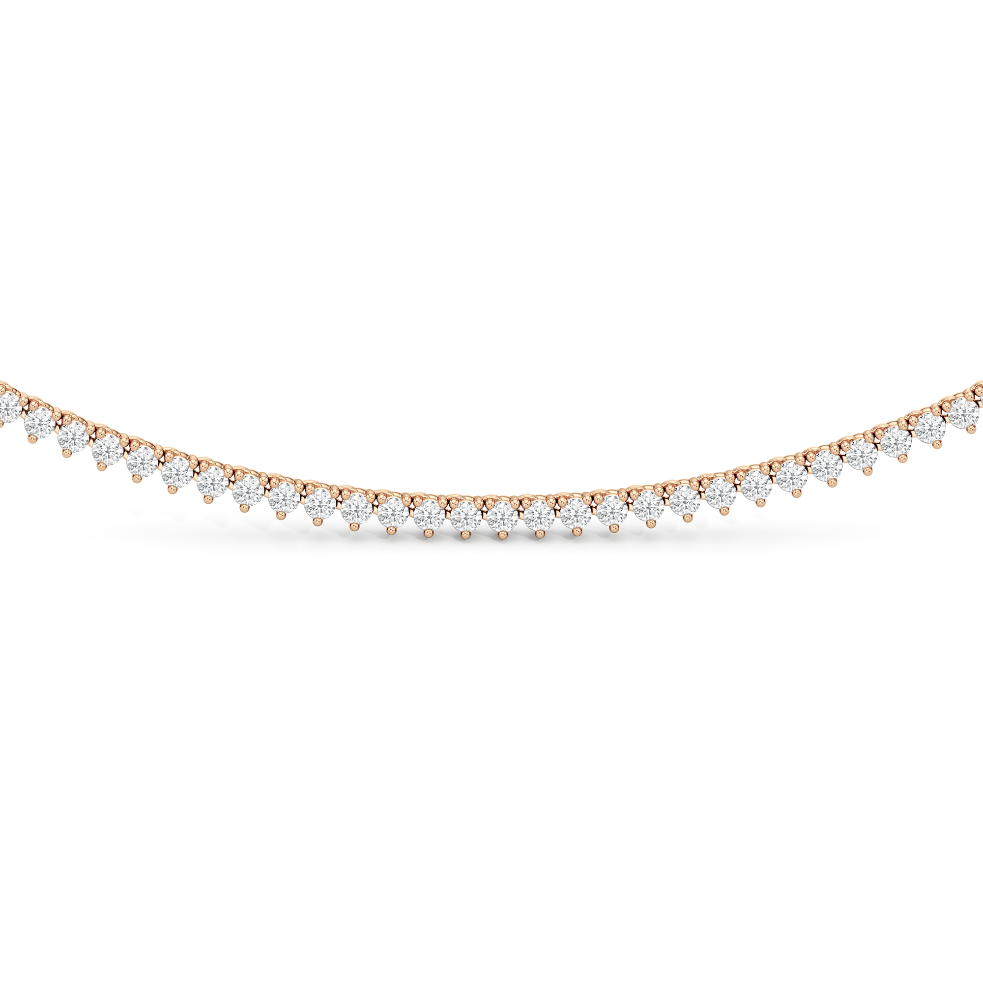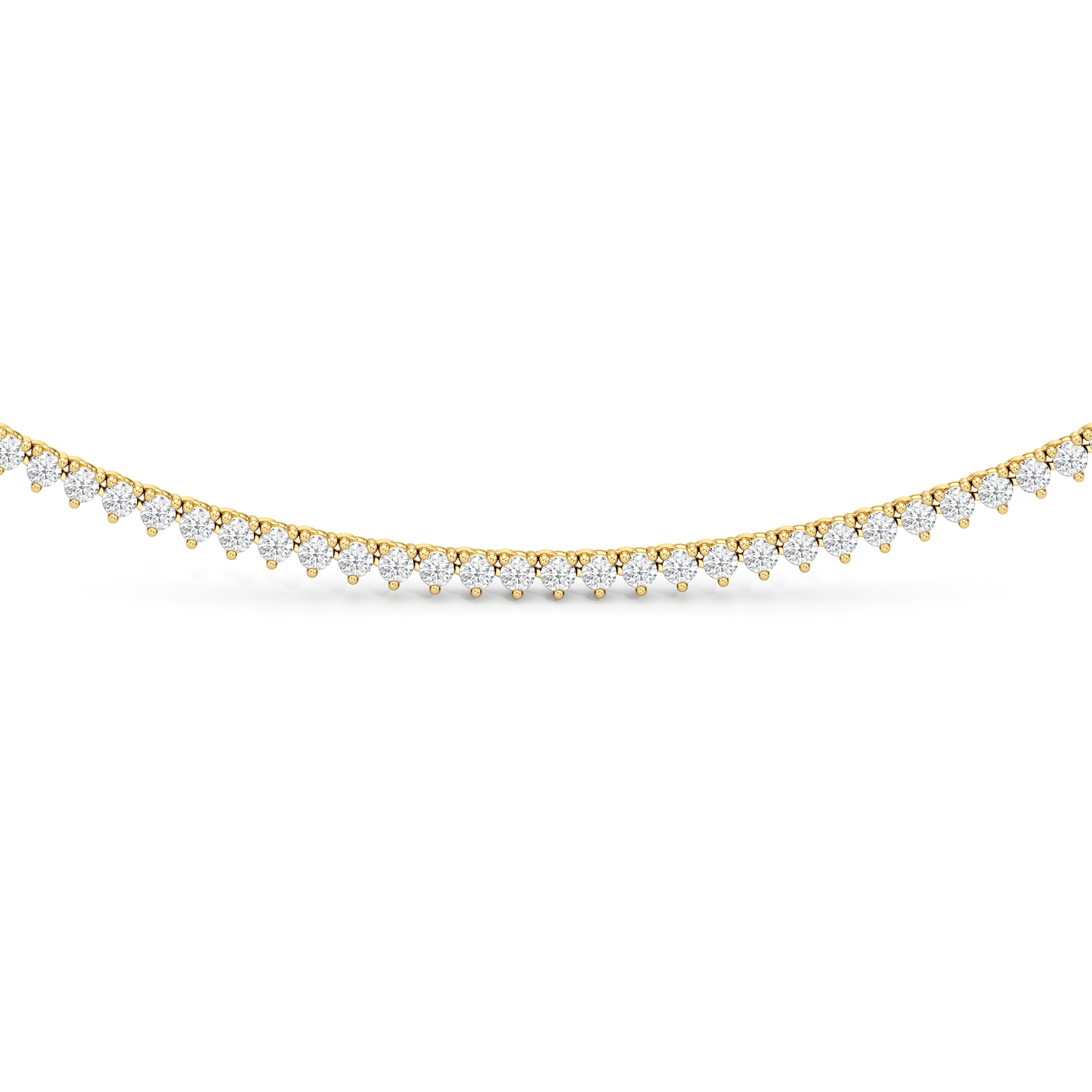 The Three Prong Half Diamond Tennis Necklace is a versatile and layer-friendly tennis necklace perfect for day-to-night wear. It features an airy, delicate profile with only three prongs holding each stone. The streamlined metal design also exposes more diamond surface, allowing more light to enter from all sides—maximizing the sparkle. With front-focused brilliance and a simple chain at the back, the necklace sits smoothly against the neck and is lighter and easier to wear.