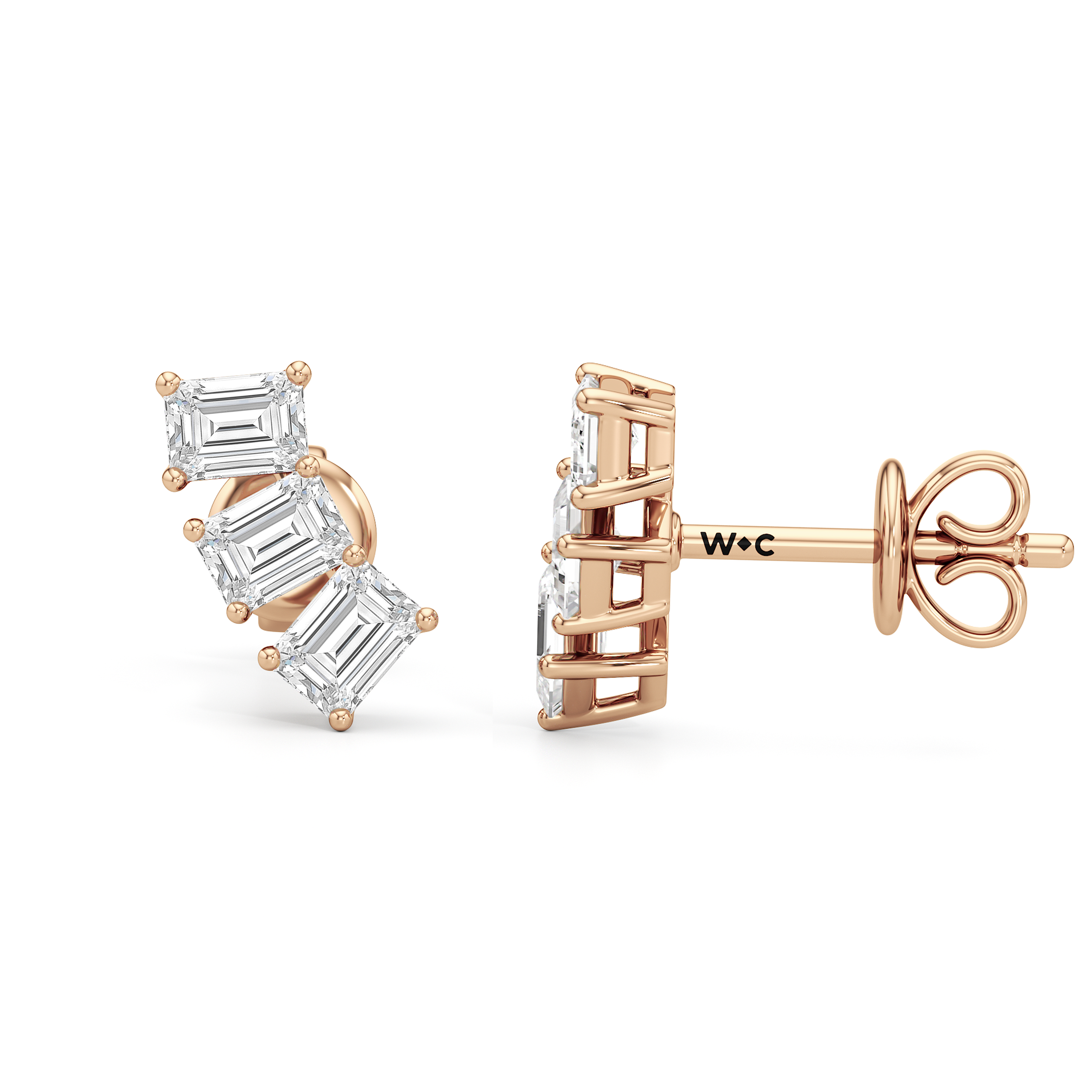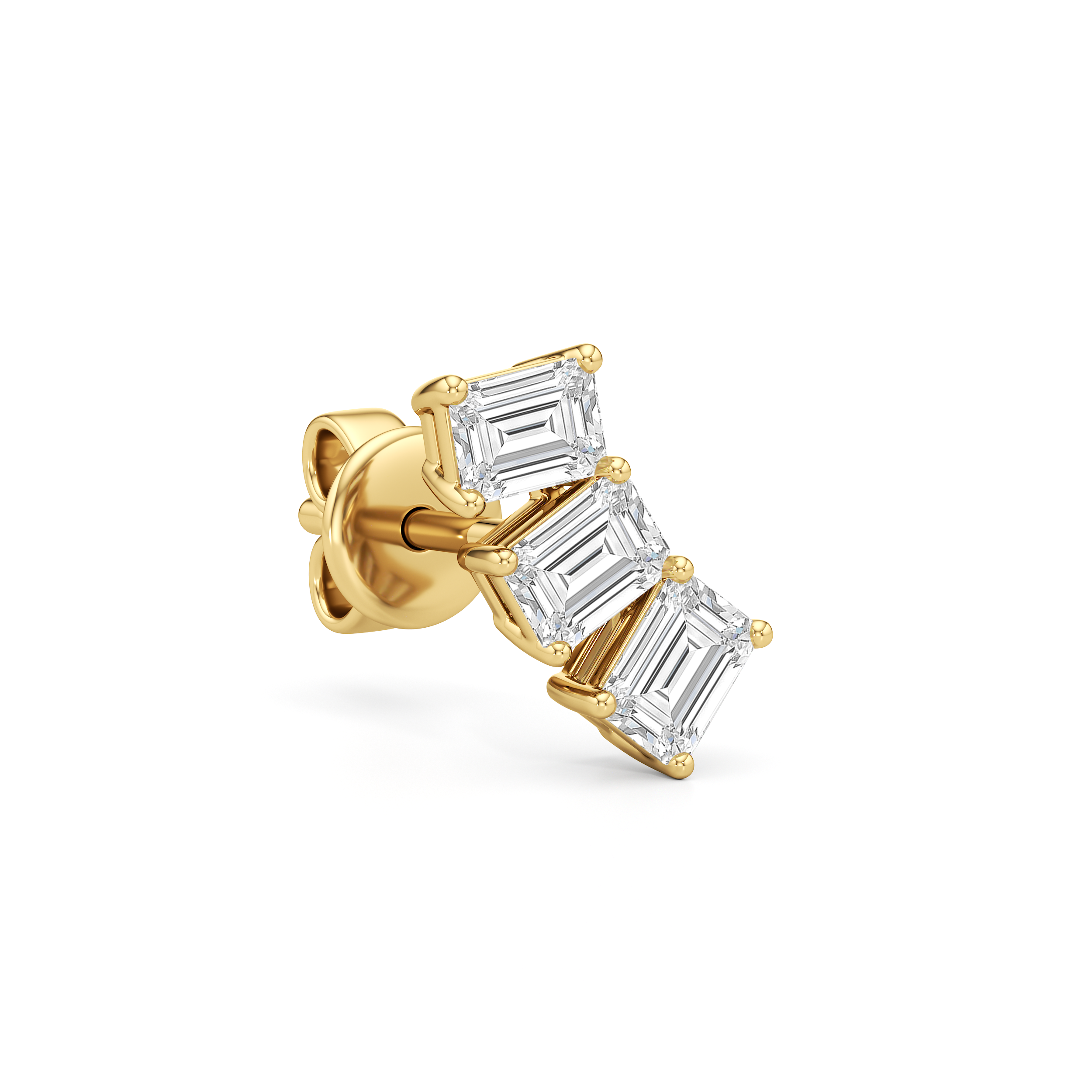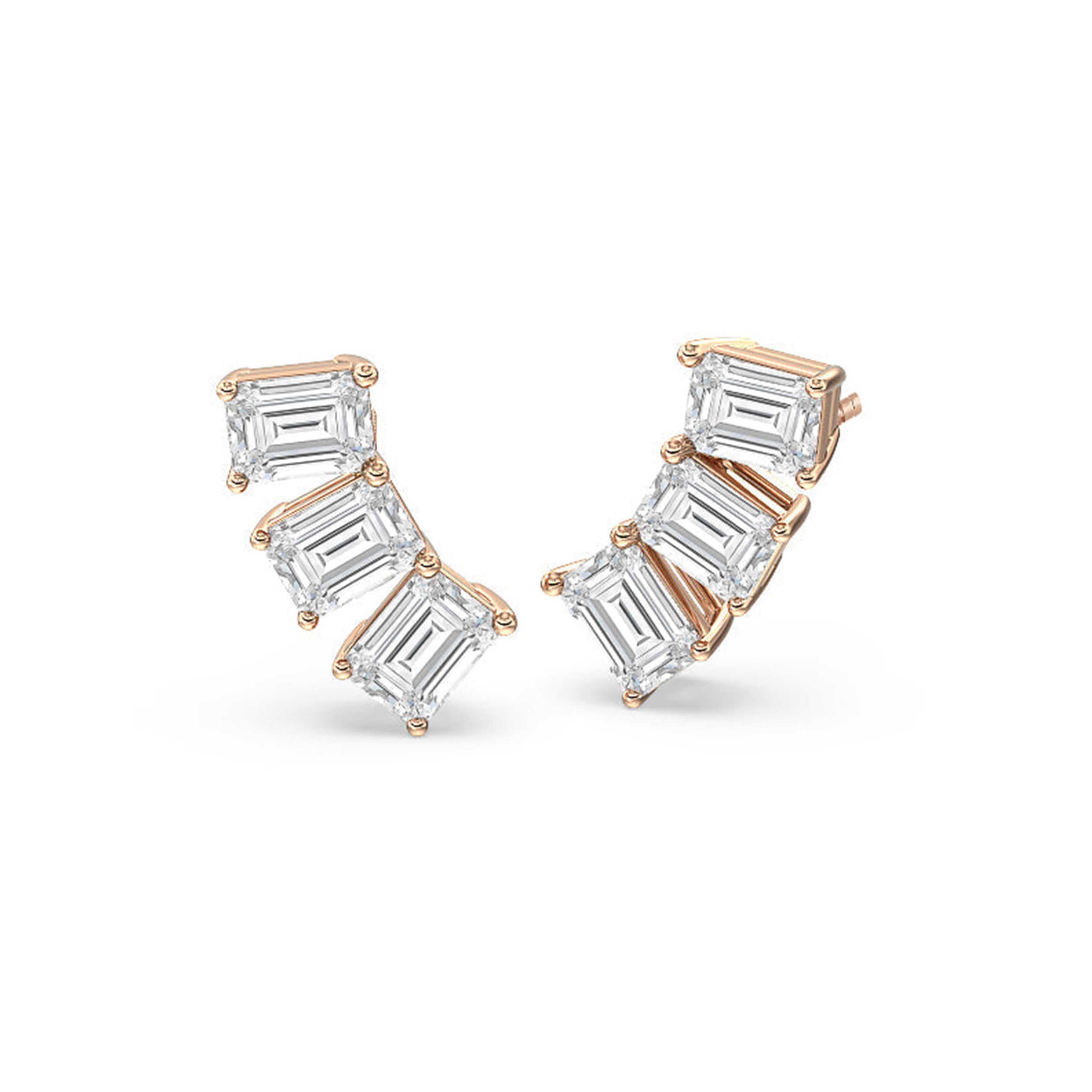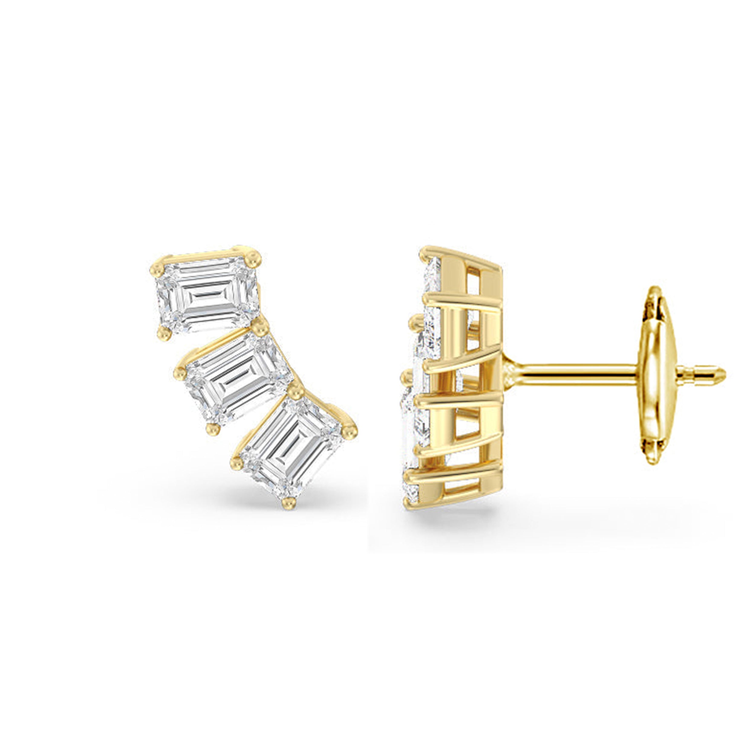 You need not get your ears pierced multiple times to get that stacked look. All you need is this pair of ear climbers to let your personality and style shine. Each earring features a curved line of three emerald-cut diamonds. The "climbing" layout of the gems gives the illusion of multiple piercings. Wear this pair to add a touch of edginess to any ensemble instantly.