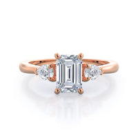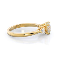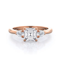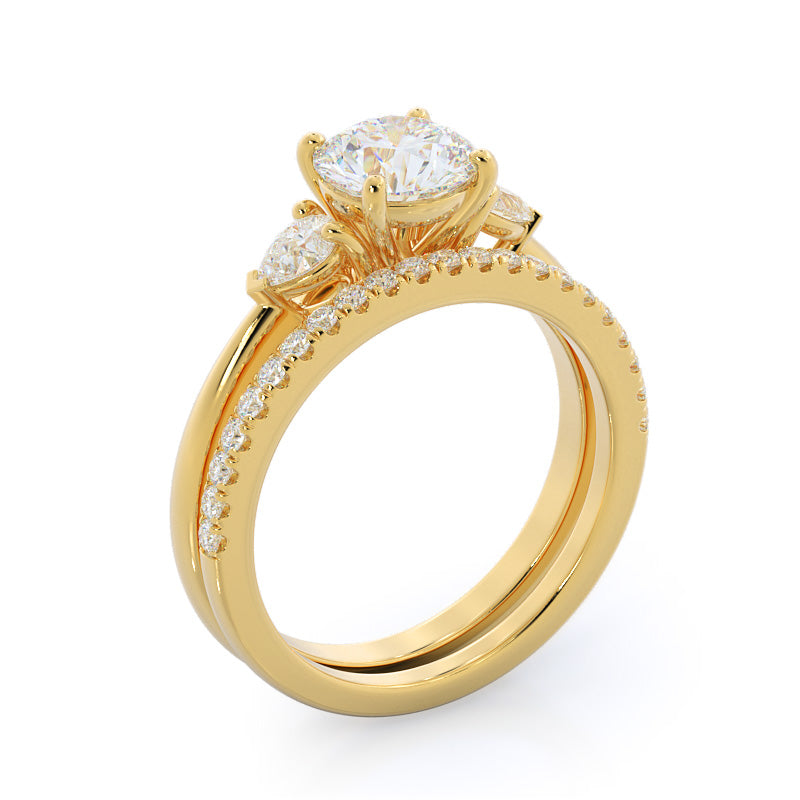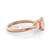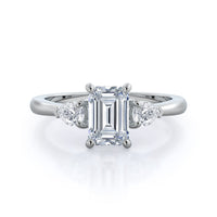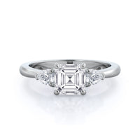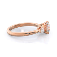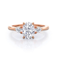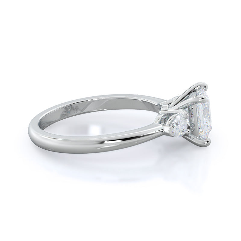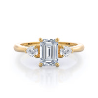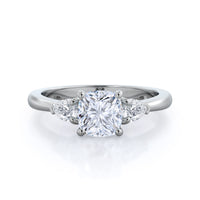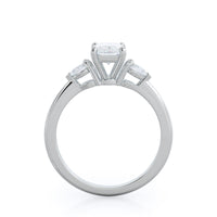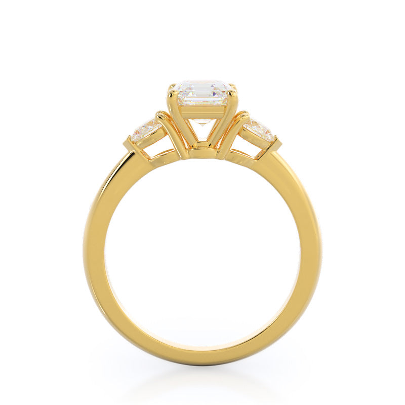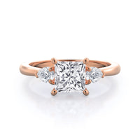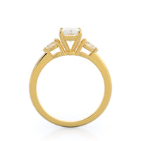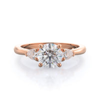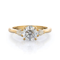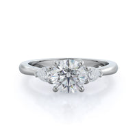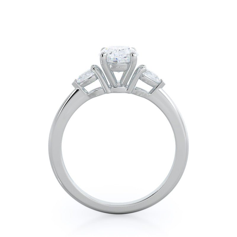 Two beautiful pear shaped diamonds offer an elegant variation to a classic three stone diamond ring