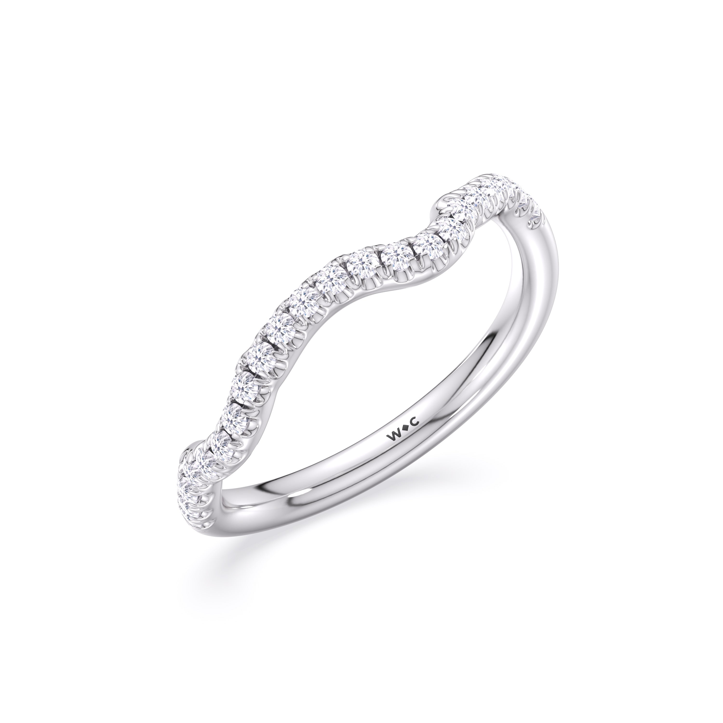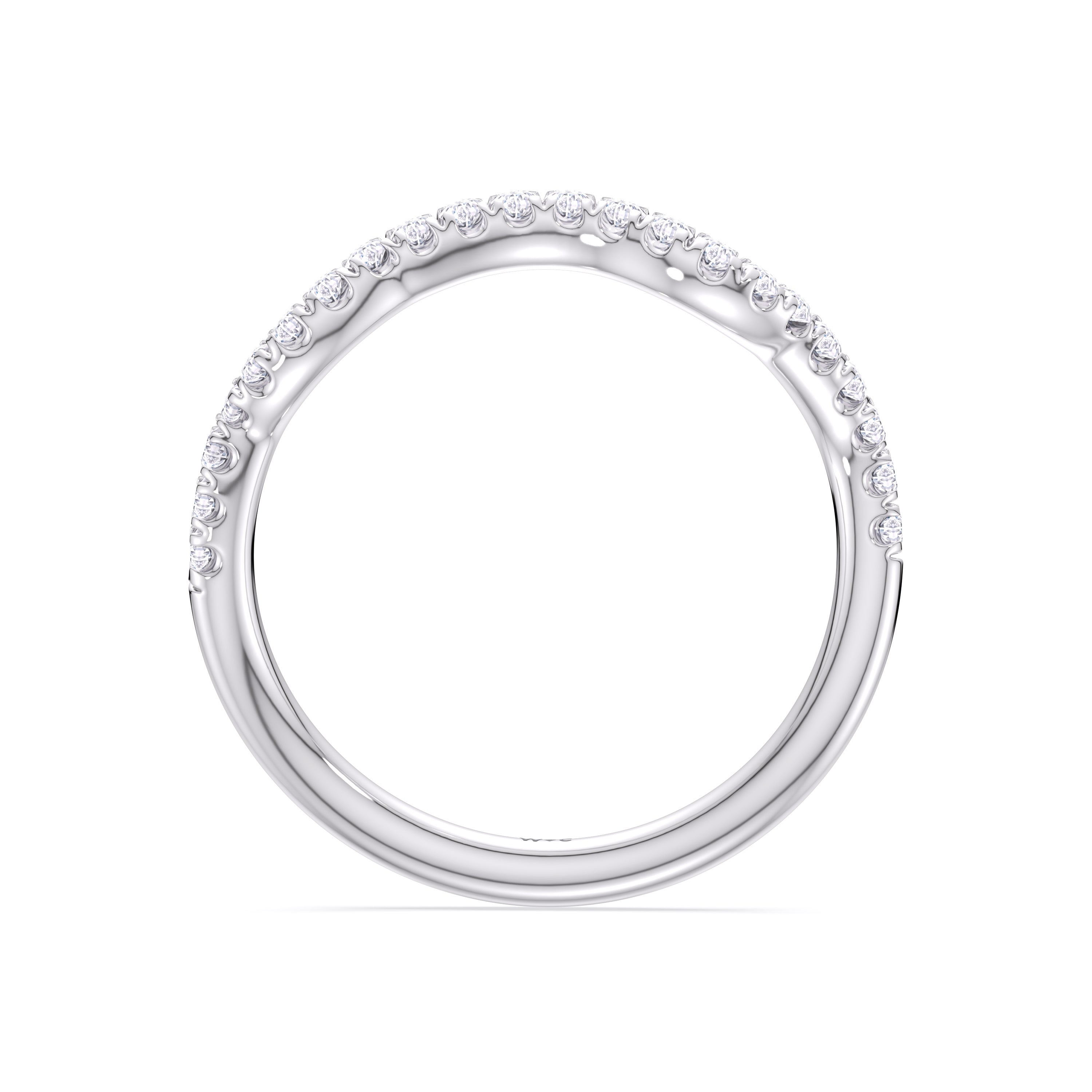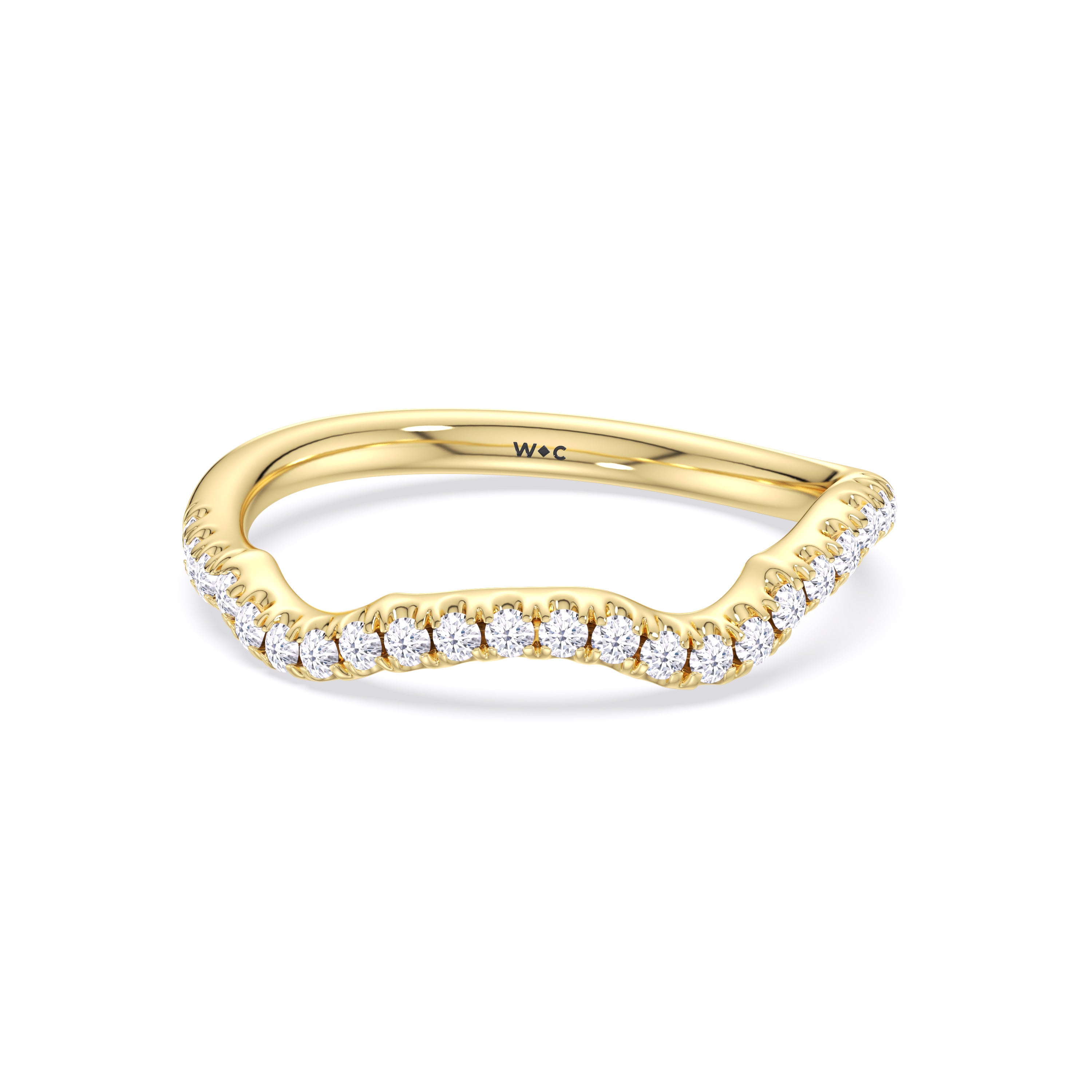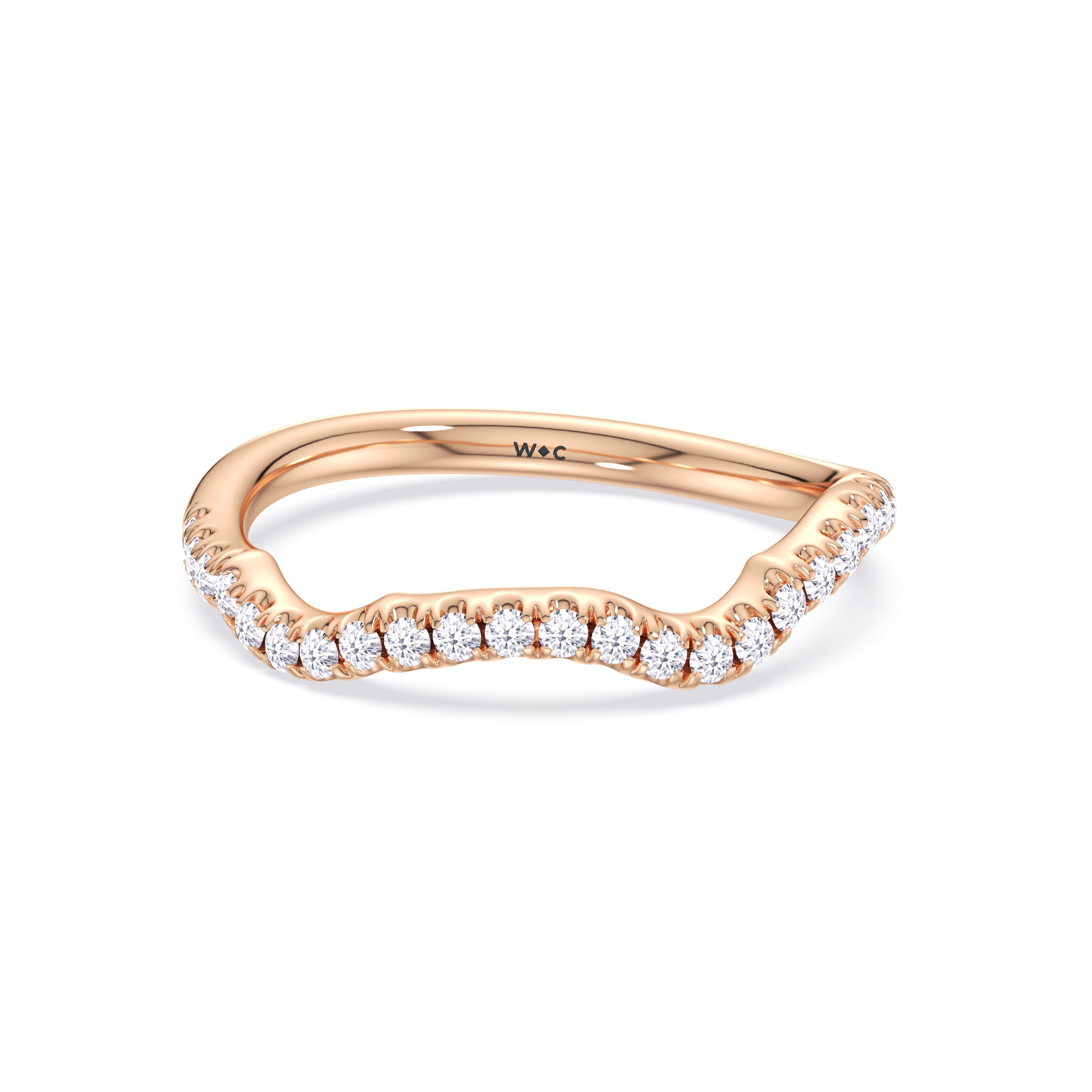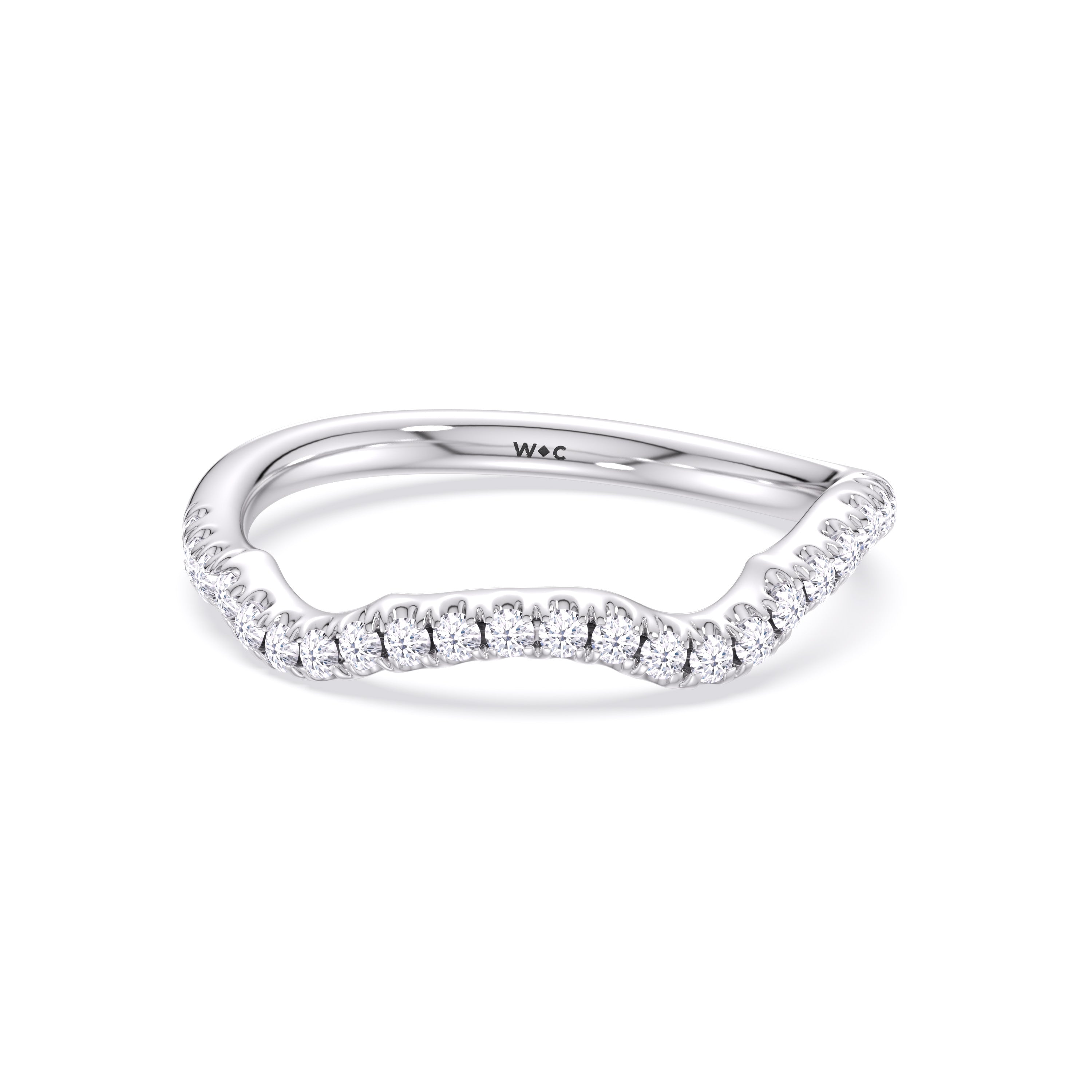 This curved diamond set wedding band is perfectly contoured to complement our Timeless Vine Pave Engagement Ring for a simple and sophisticated look.