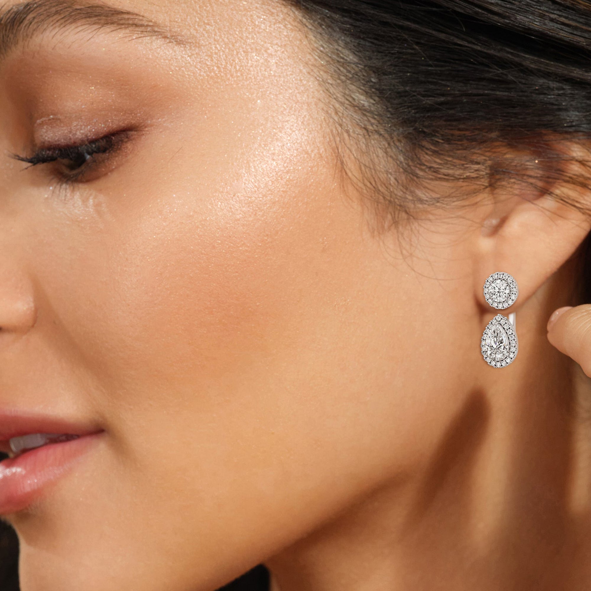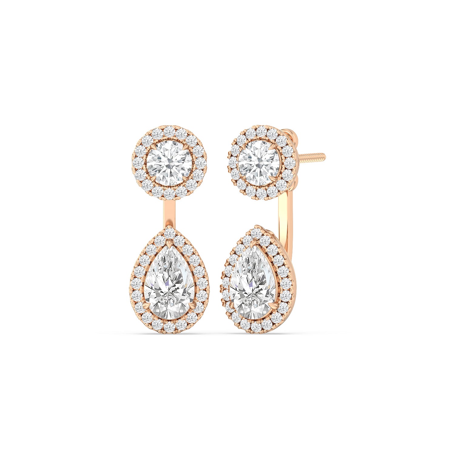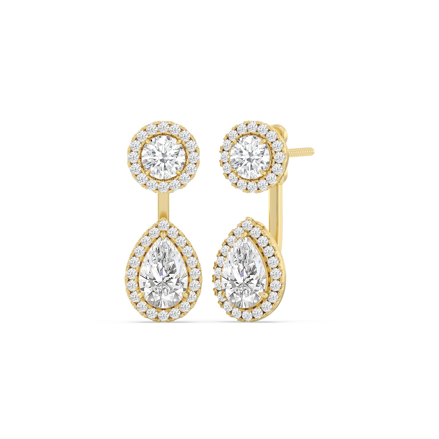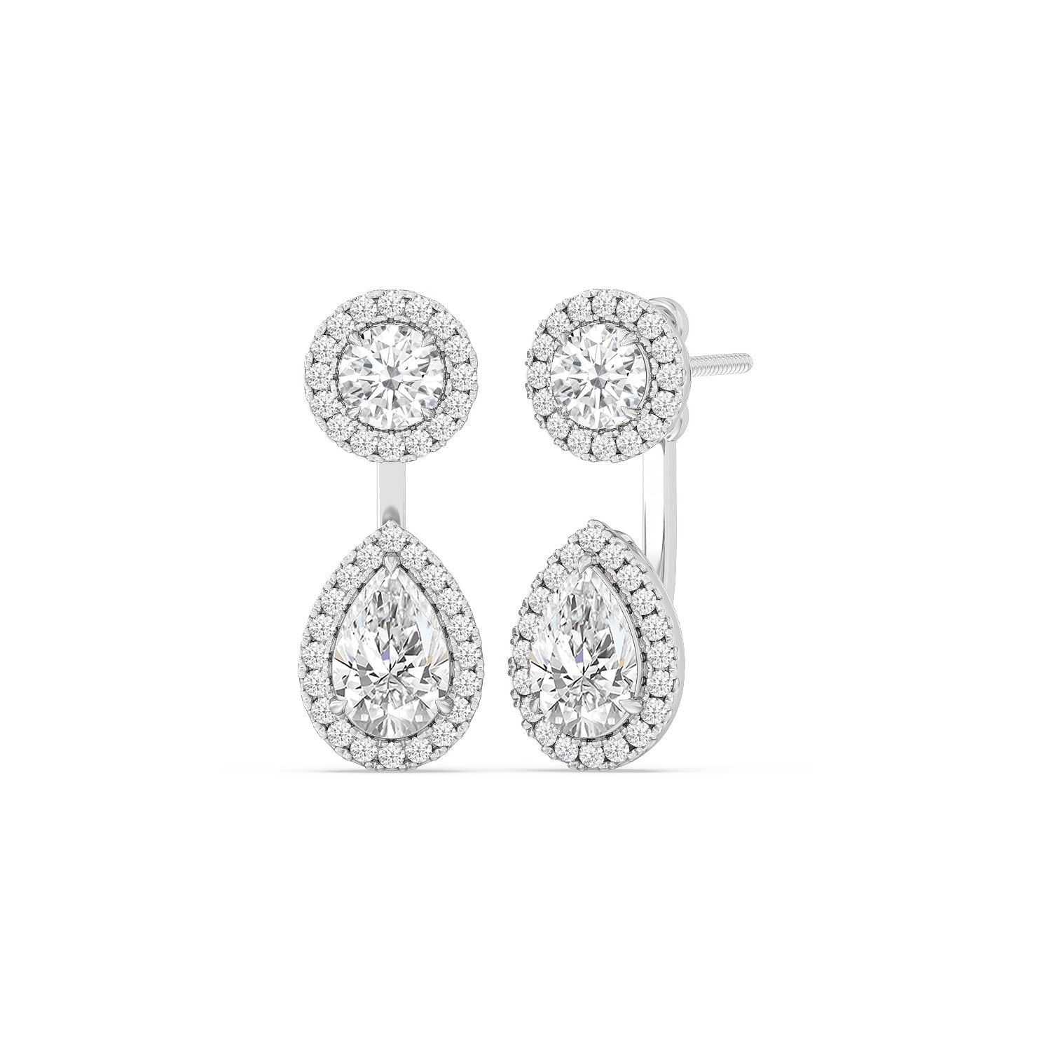 Toi Et Moi Halo Round and Teardrop Front Back Earrings
