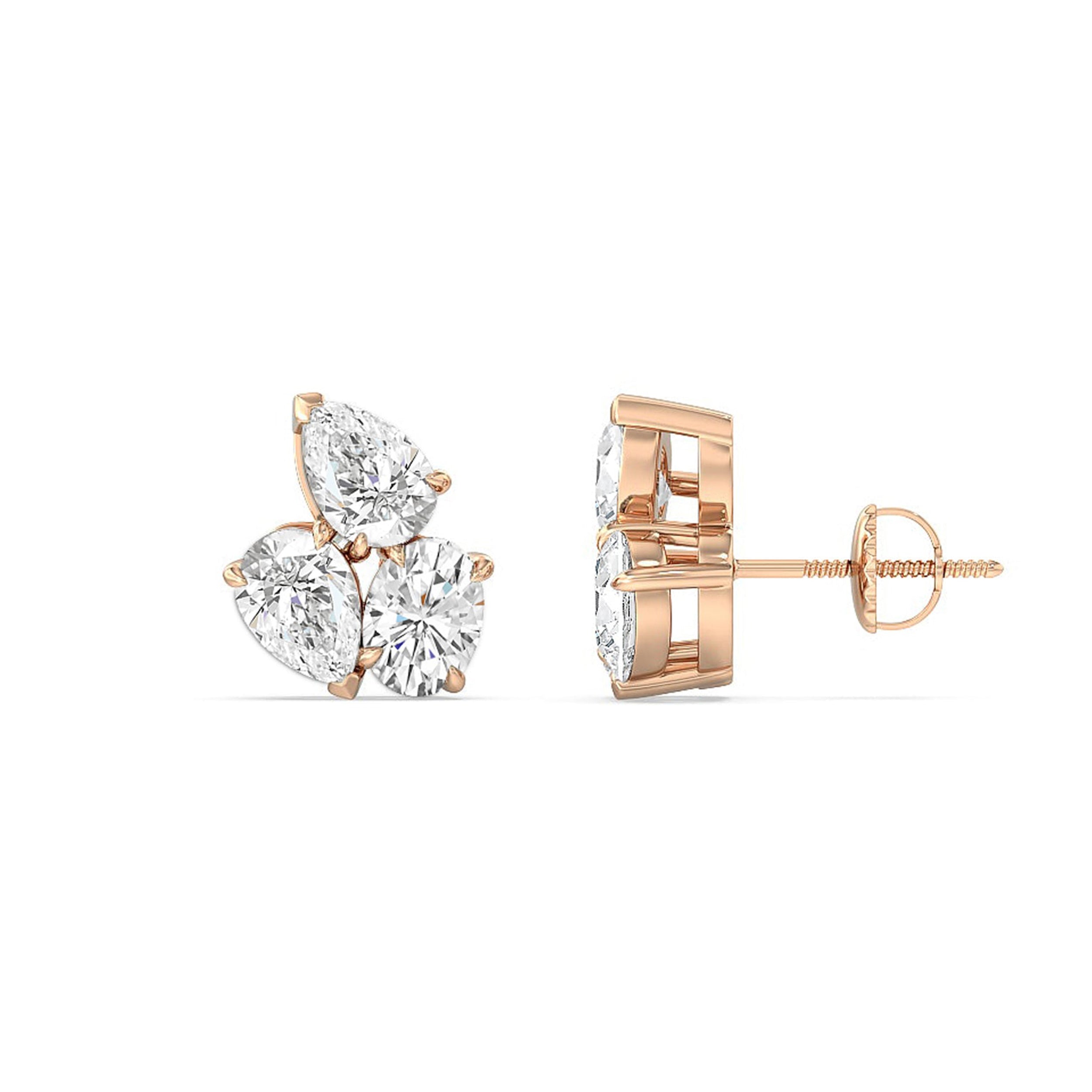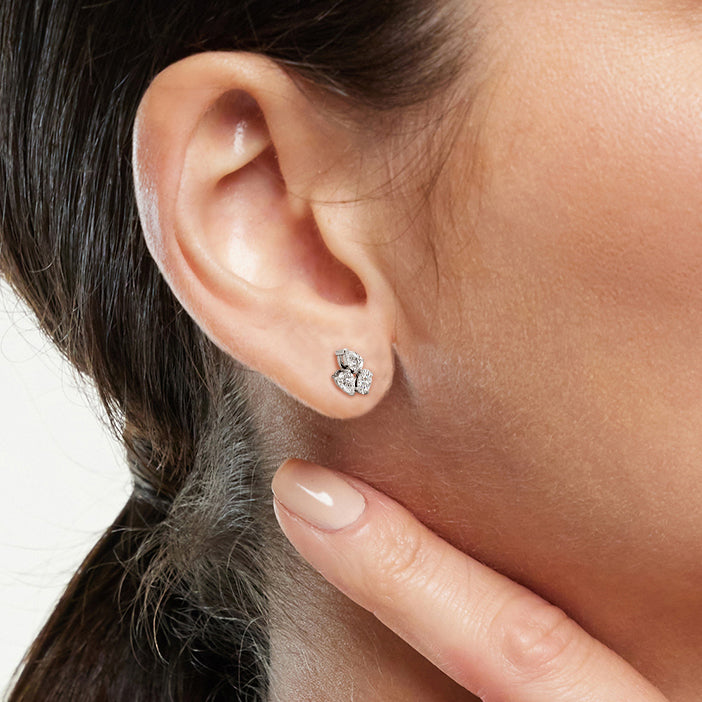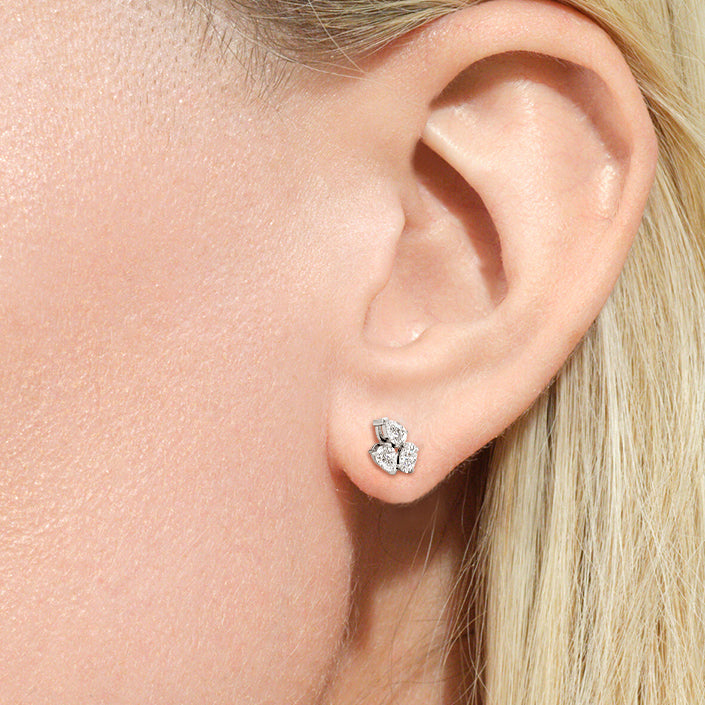 You won't regret treating yourself to this fuss-free wardrobe staple. These diamond cluster earrings will easily fit in with many different looks. Each earring features three diamonds set close to each other: two of which are pear-shaped and set in opposite directions, and one oval-shaped secured by four prongs.