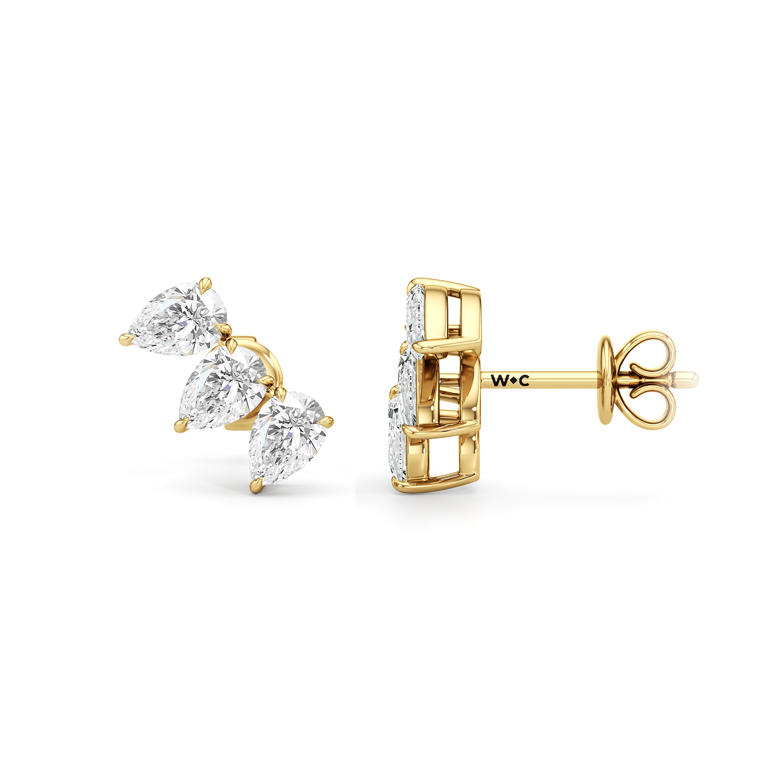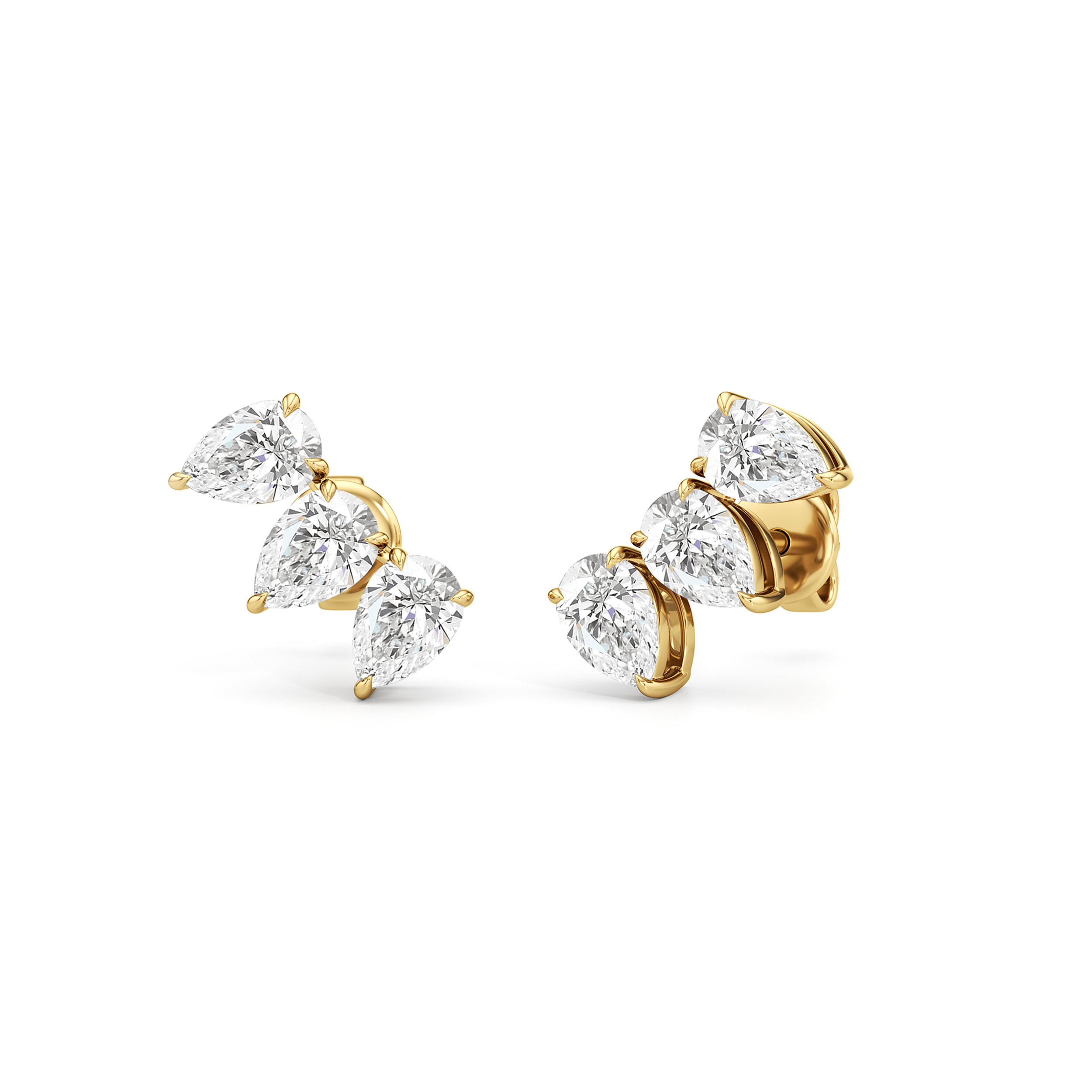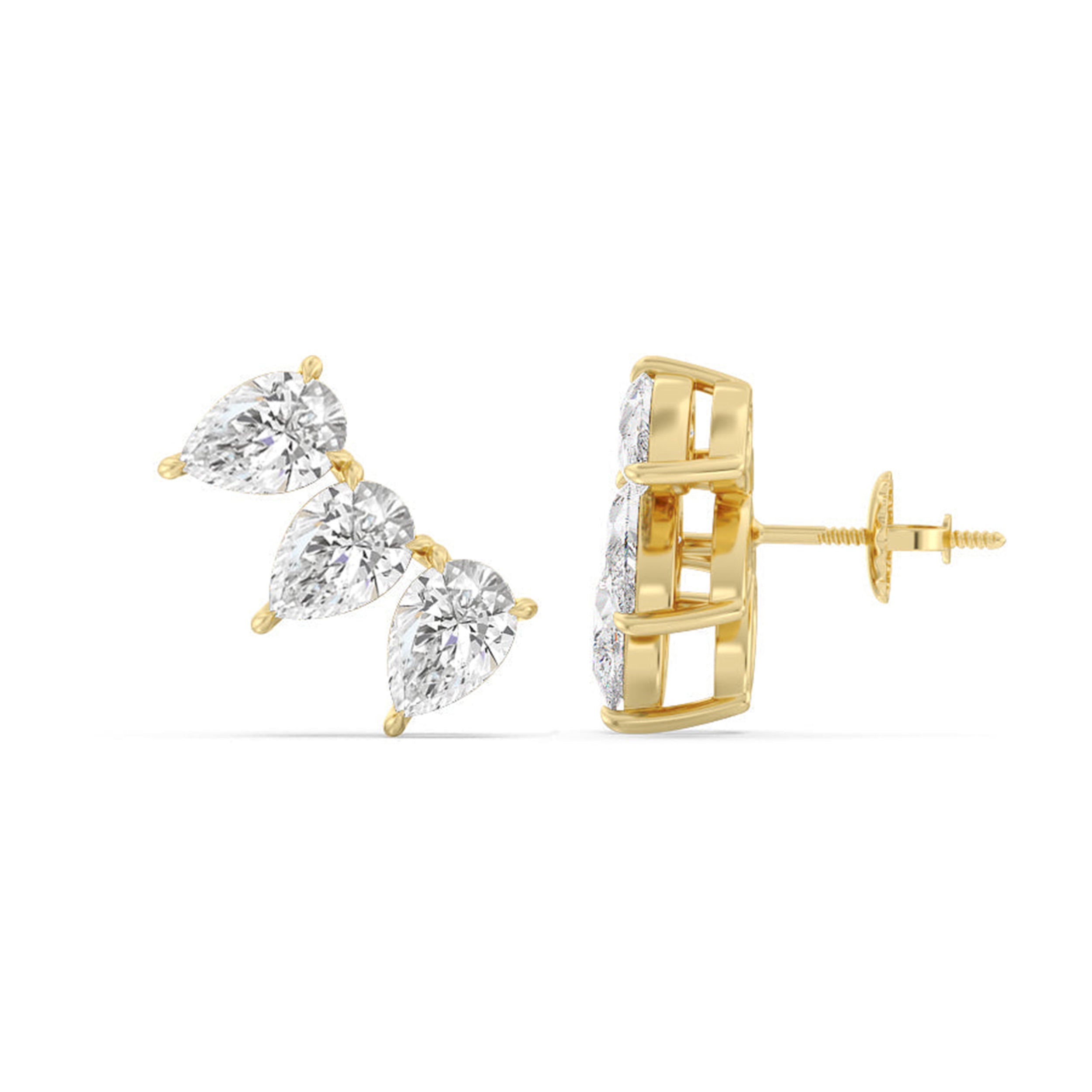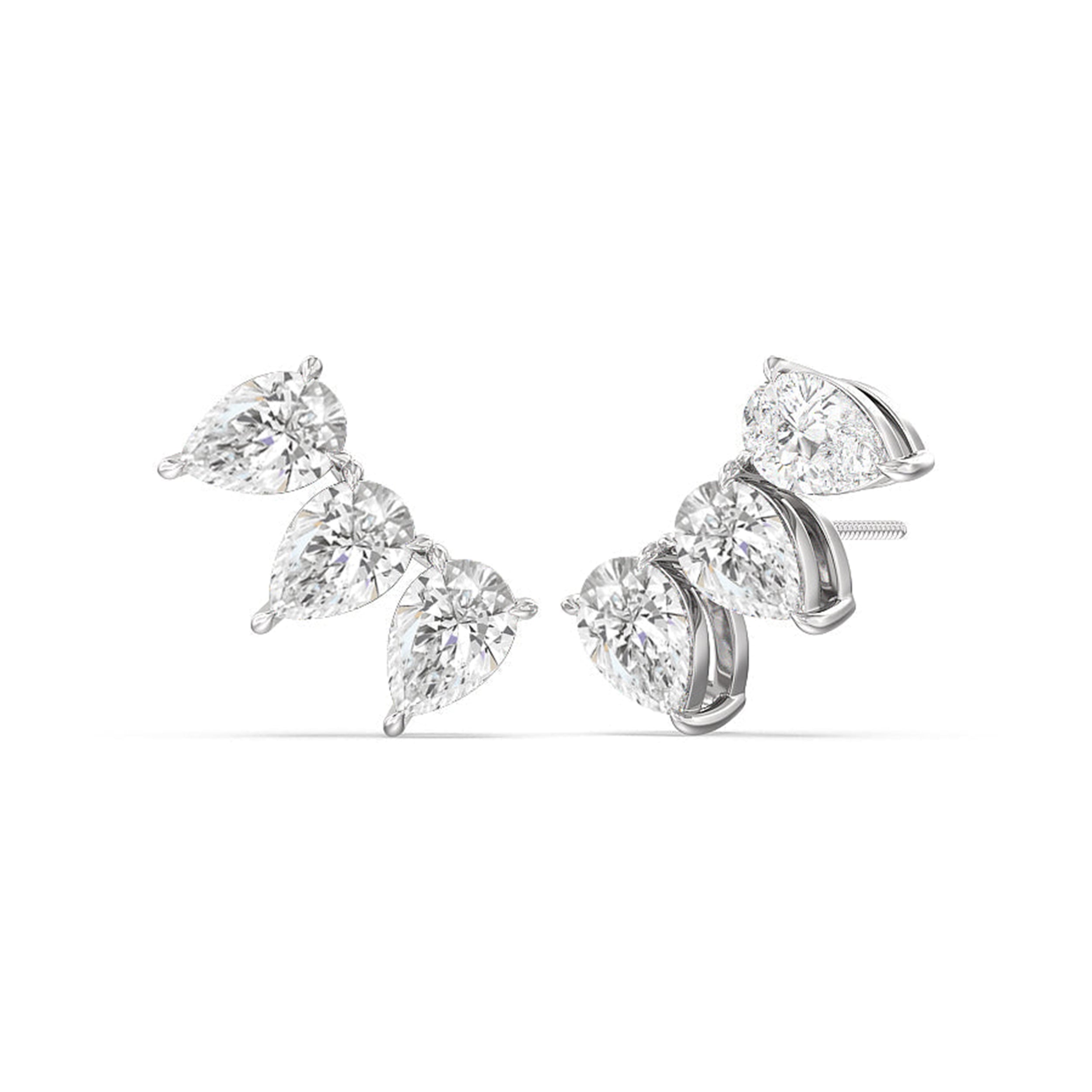 For days that call for extra style and sparkle, opt for these dazzling ear crawlers. These diamond earrings feature a trio of pear diamonds set on a curved layout that follows the ear's natural curve. Designed with comfortable confidence in mind, these climber earrings can give you that edgy look effortlessly.