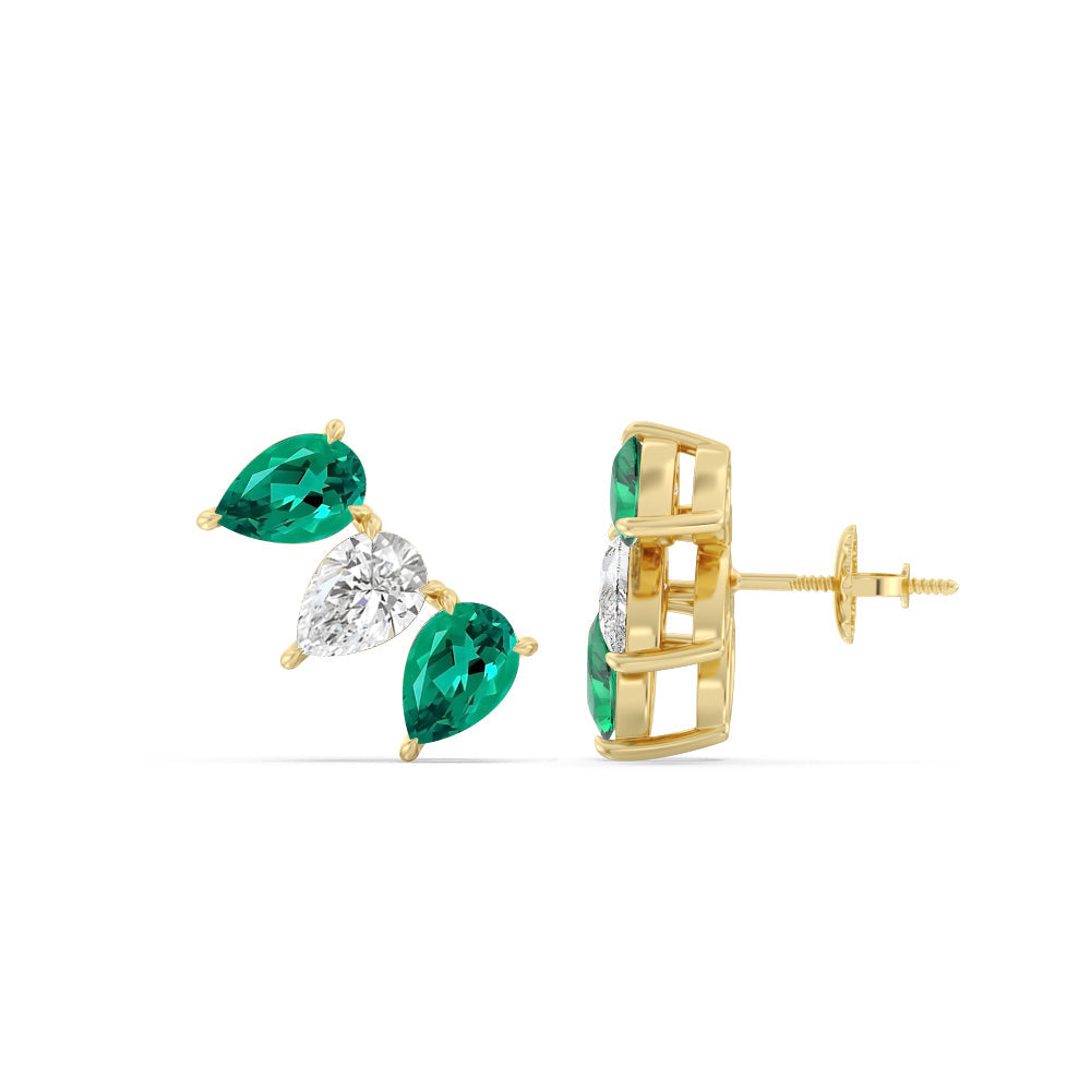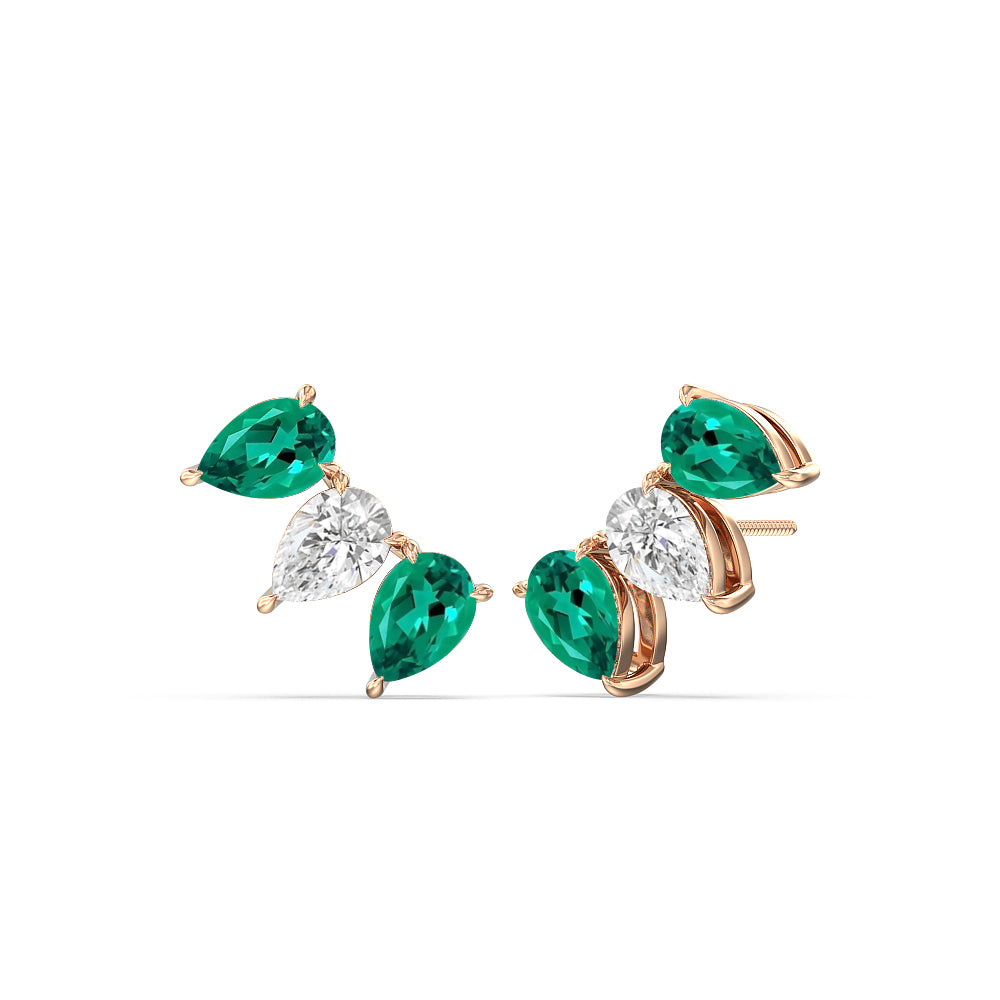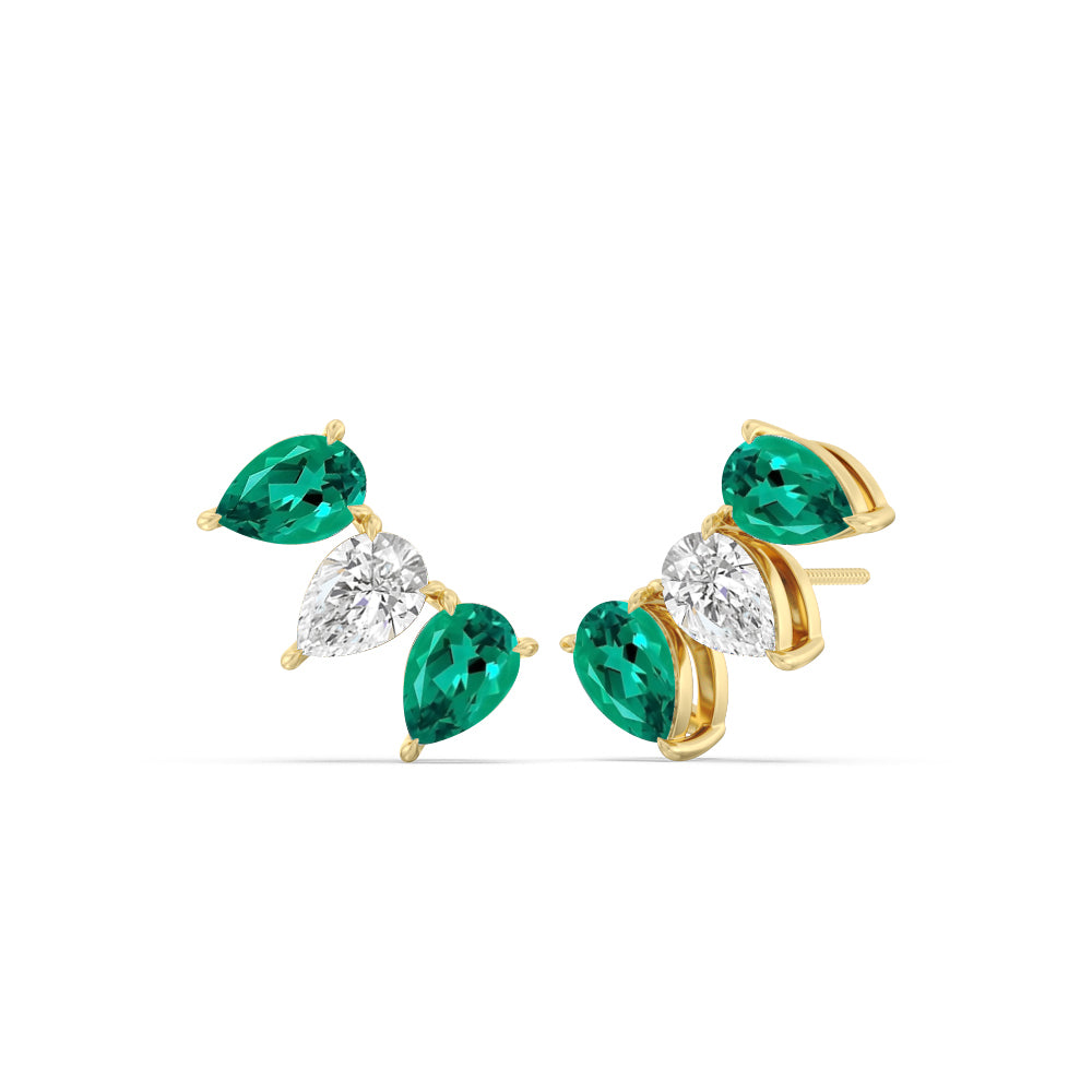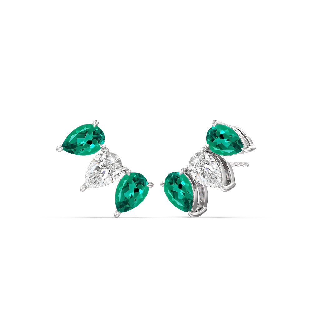 For days that call for extra style and sparkle, opt for these dazzling ear crawlers. These earrings feature a trio of pear diamond and created emerald set on a curved layout that follows the ear's natural curve. Designed with comfortable confidence in mind, these climber earrings can give you that edgy look effortlessly.