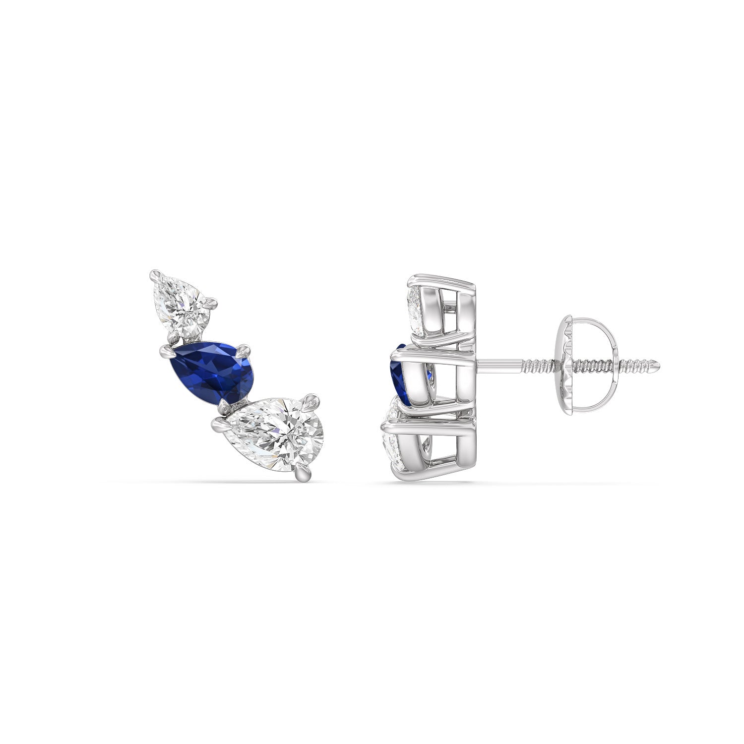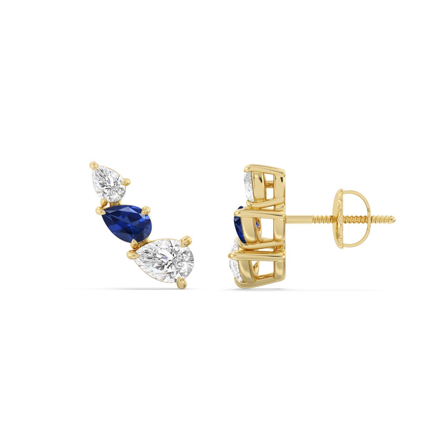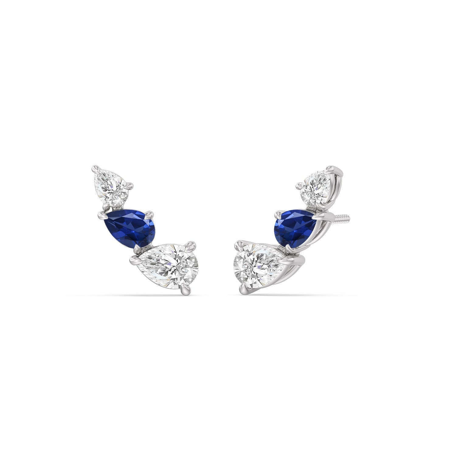 These sparkling ear climbers are ready to simultaneously bring brilliance and personality to your looks. These trendy earrings feature a trio of pear diamonds and created sapphire in tapering sizes, set in a curved line to follow the curve of the ear. With these on, you can effortlessly pull off a stacked-earring look without the need for multiple piercings.