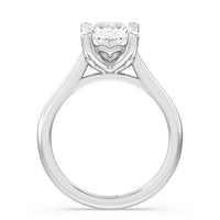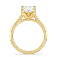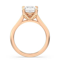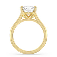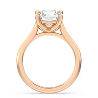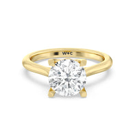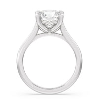 This ring exudes confidence with its stunning simplicity. Its single stone is nestled in a tulip basket and is effortlessly taking the spotlight. A chic tapered band complements the solitary diamond's delicate beauty.