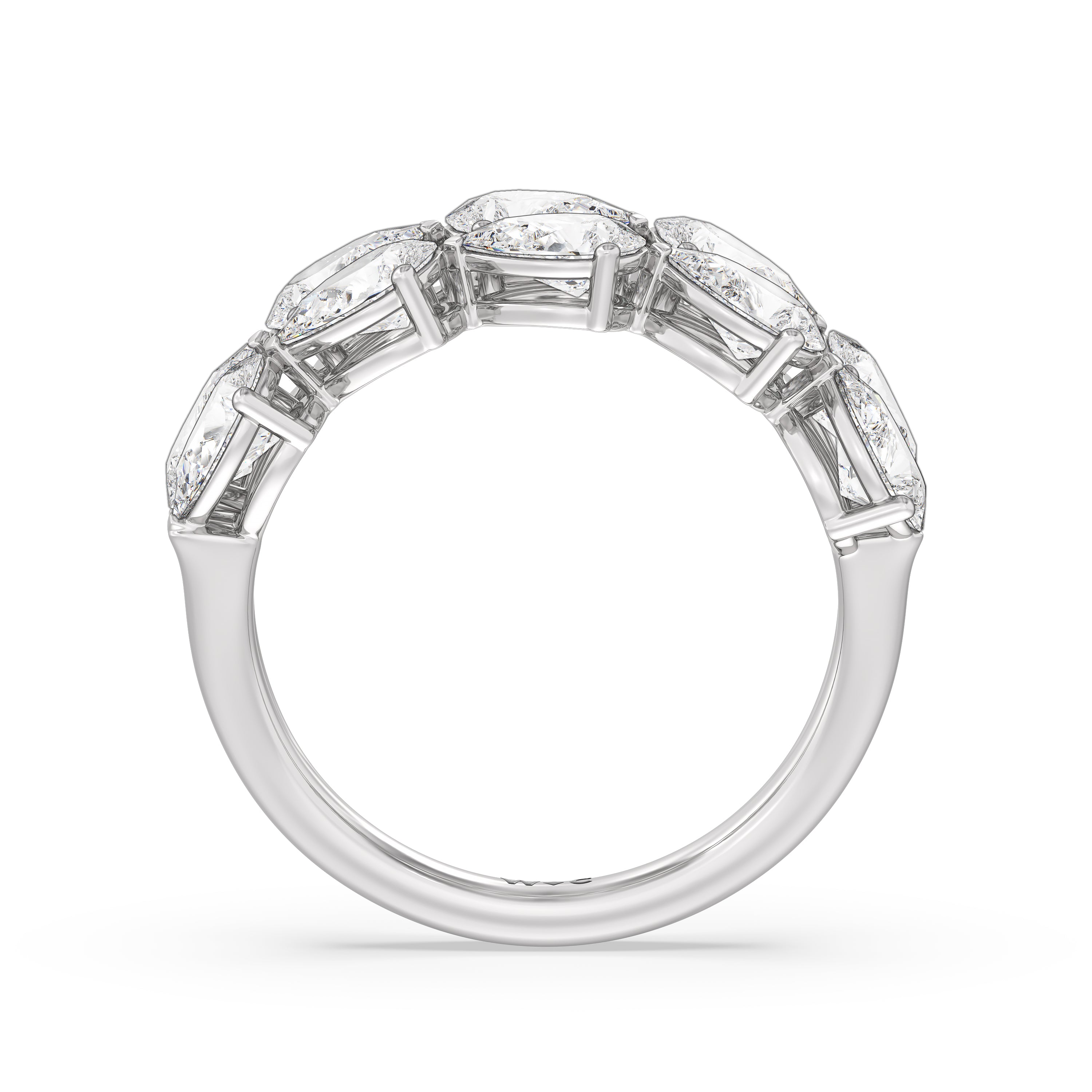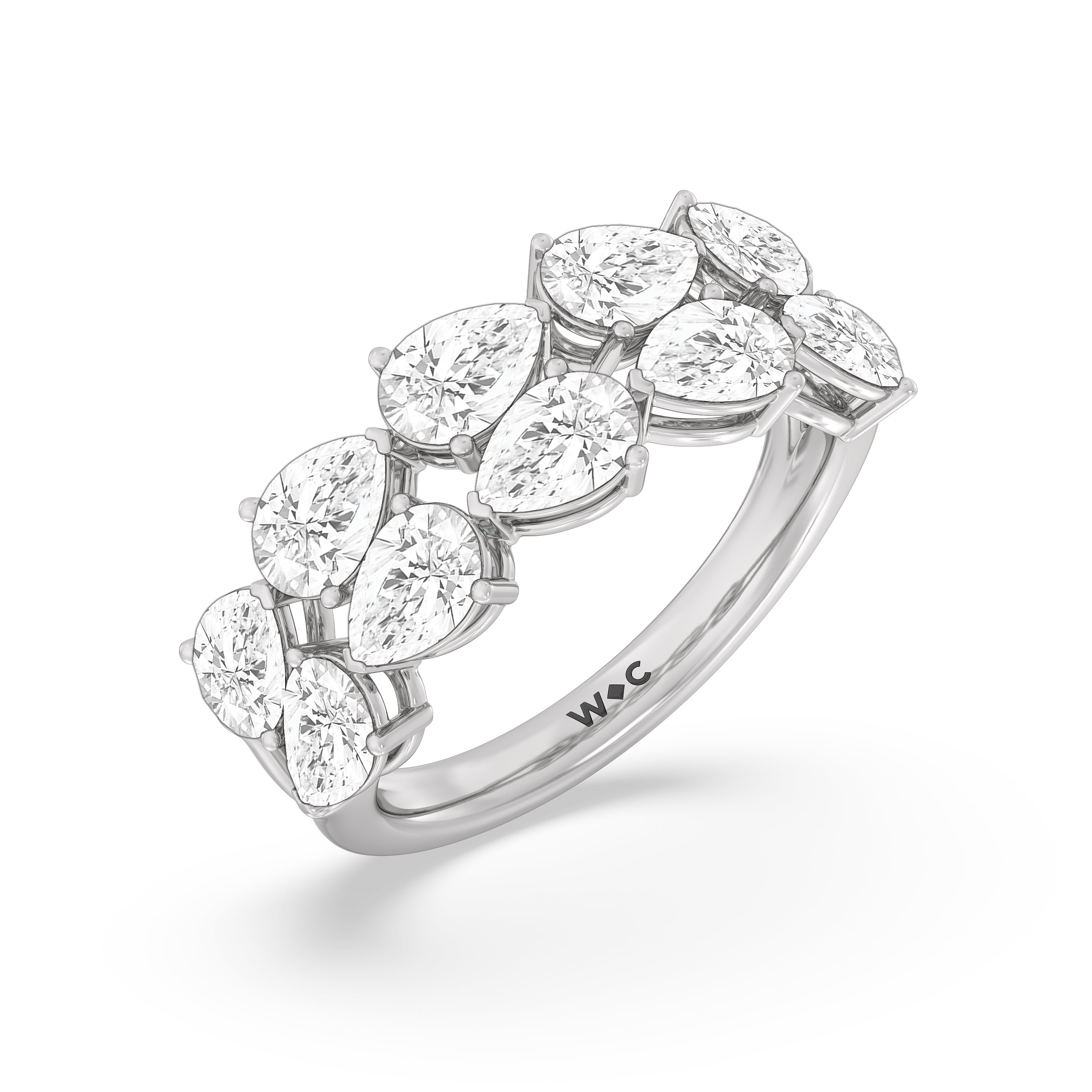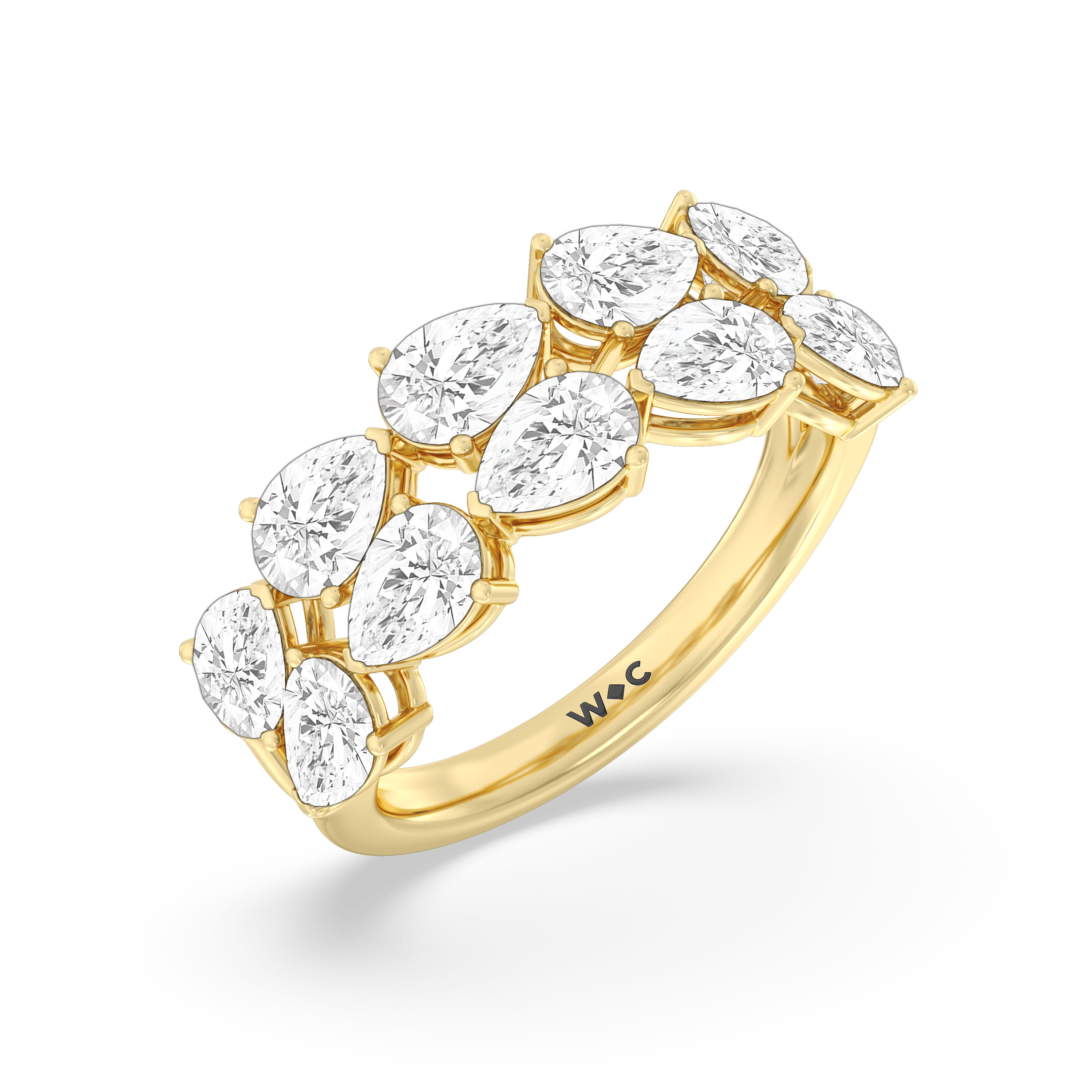 A subtle shift in perspective and you'll instantly see how this modernized classic can effortlessly wow the one you love. This anniversary band features a polished shank, half of which is traced with pear-cut diamonds in an unconventional east-west setting. The horizontal setting of the diamonds gives a fresh, unexpected, and dramatic twist to the classic look of a traditional half-eternity diamond ring.