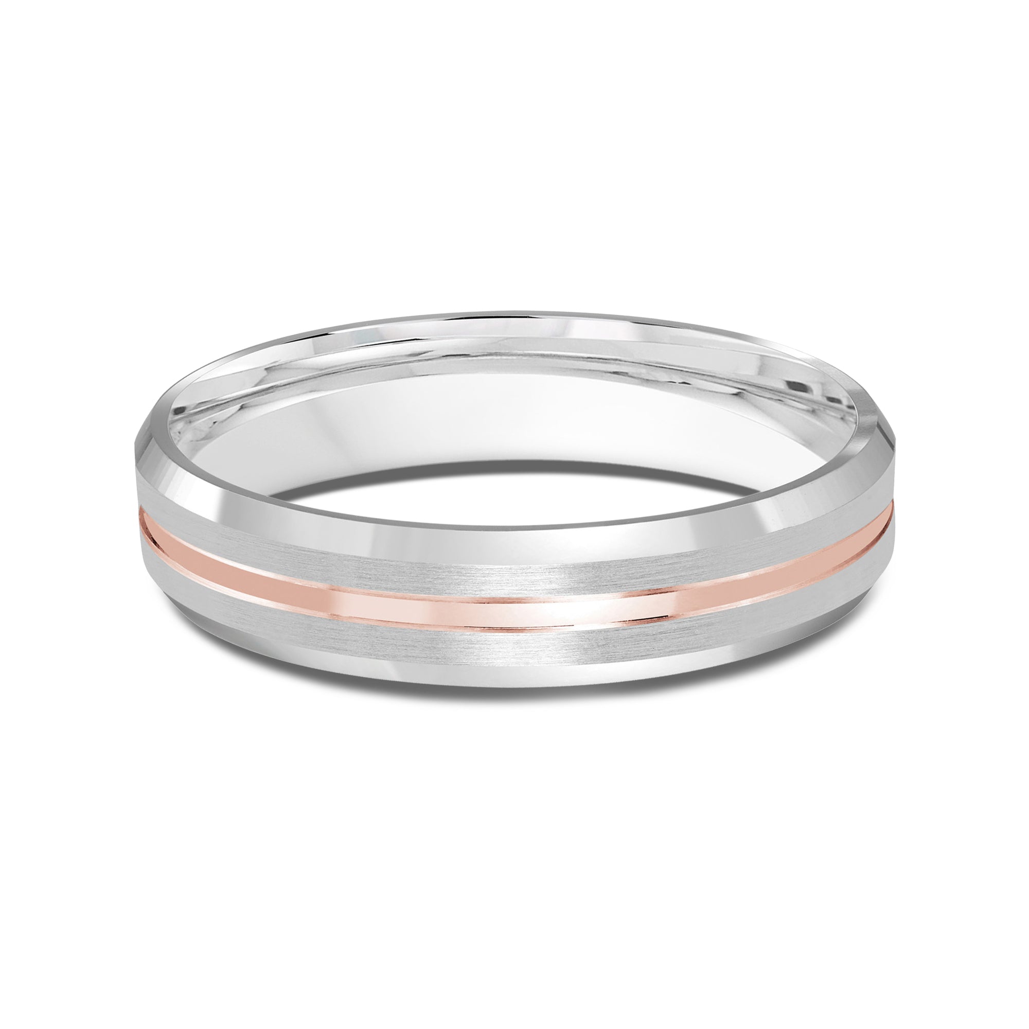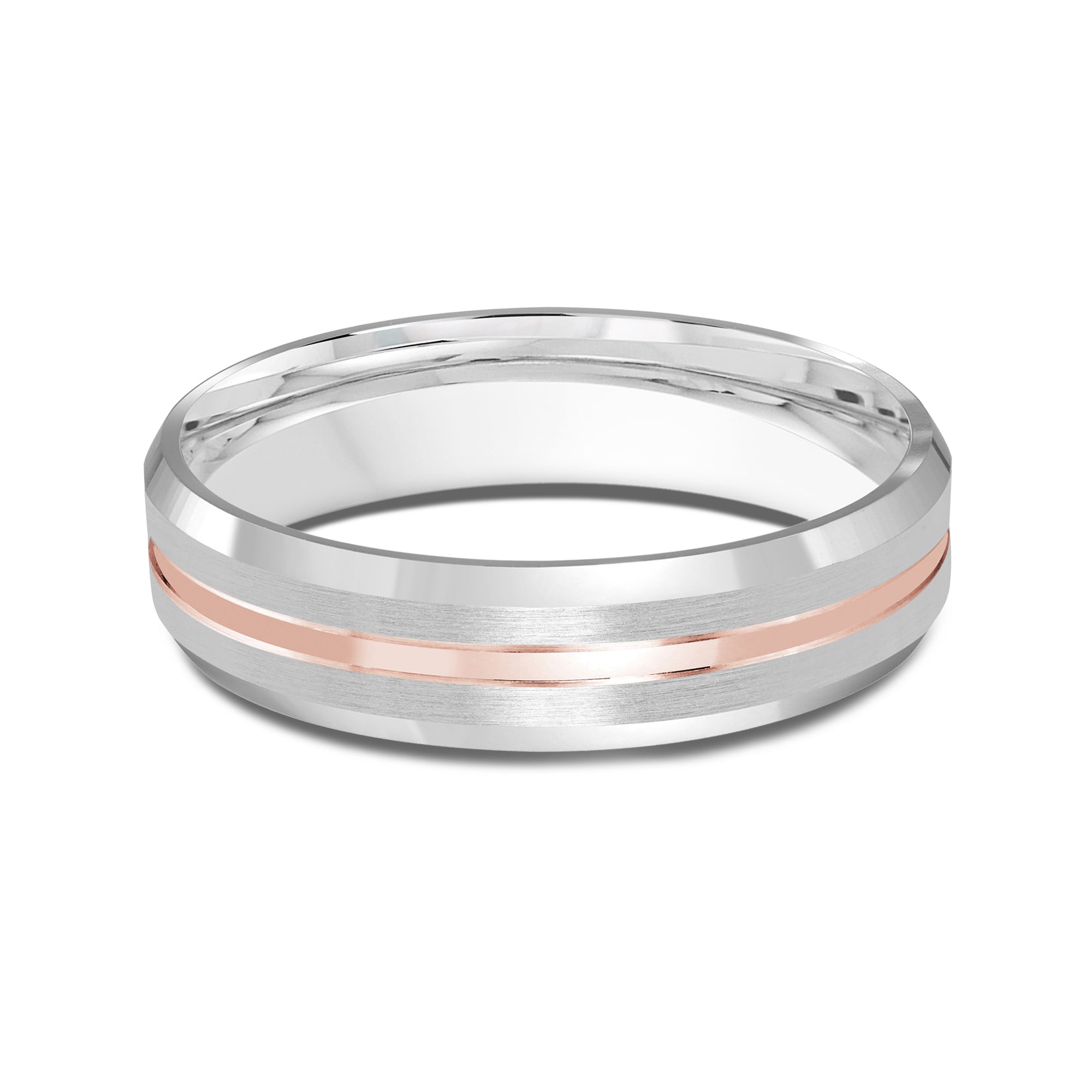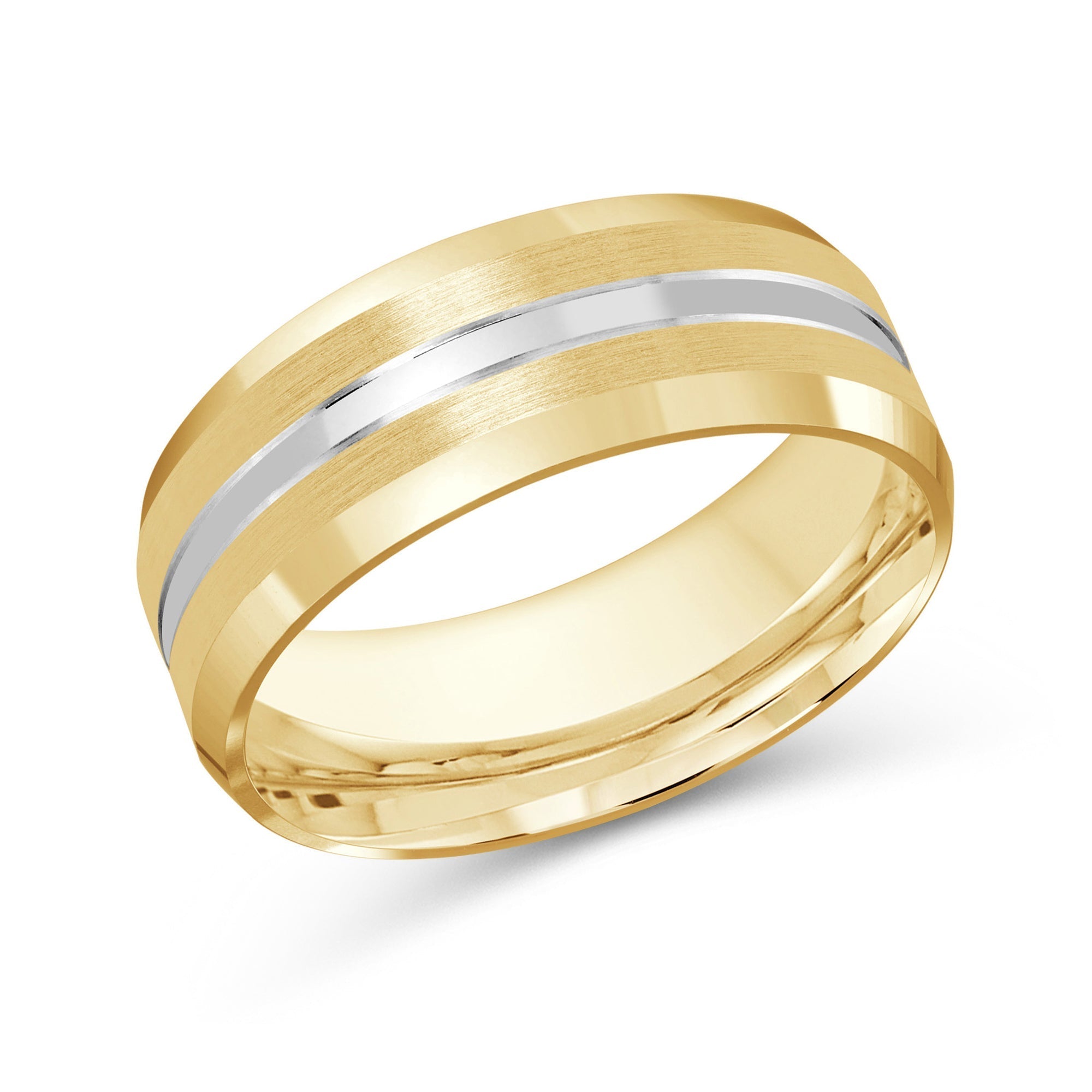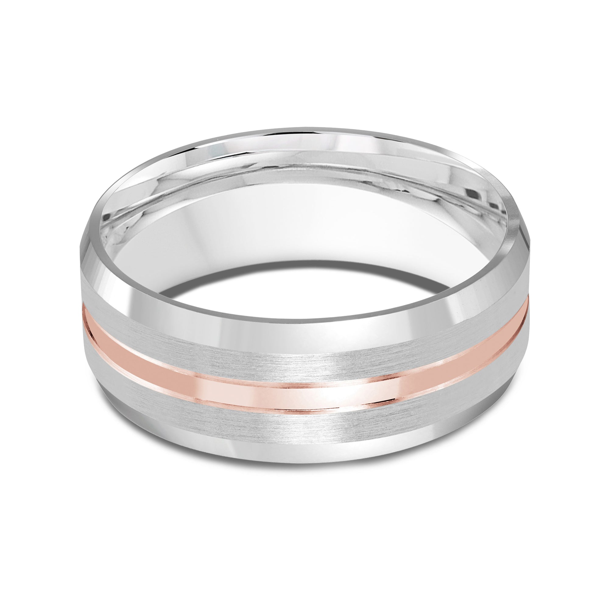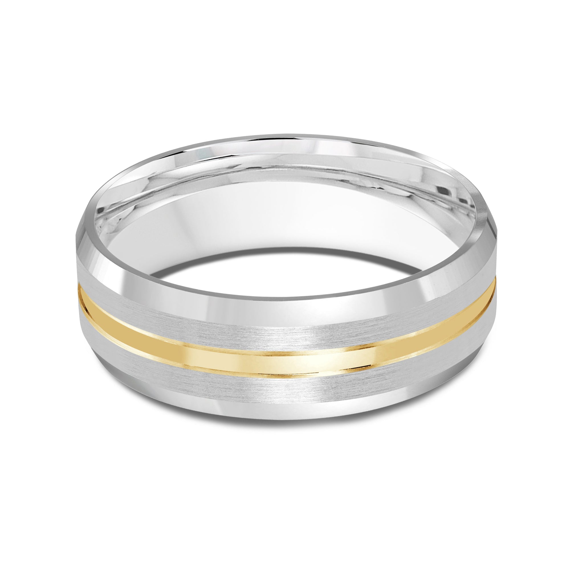 This satin-finished ring features a classic profile and a textured shine. The beveled edges and grooved center add interest to this men's band. The ring's inner wall is curved for a comfortable fit.