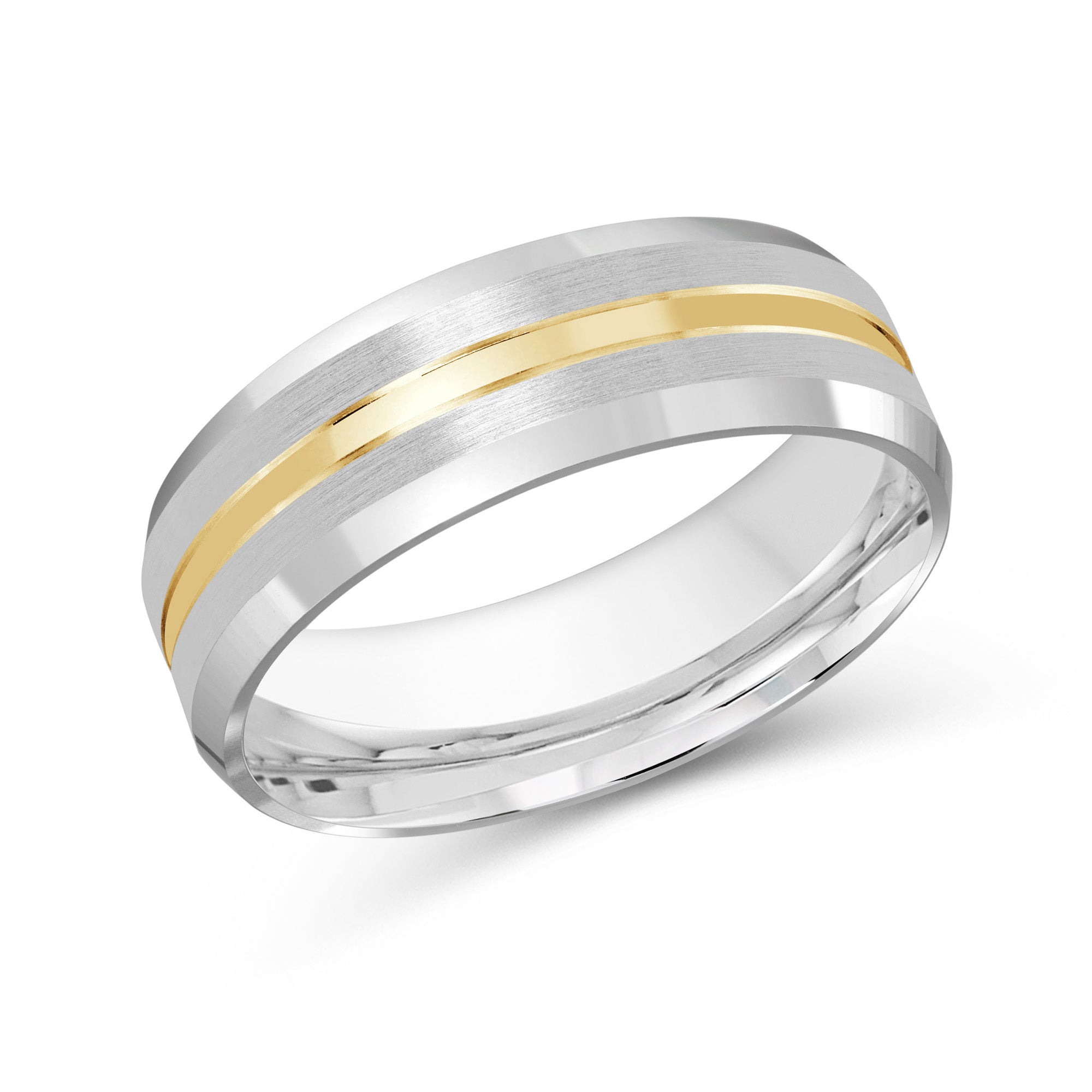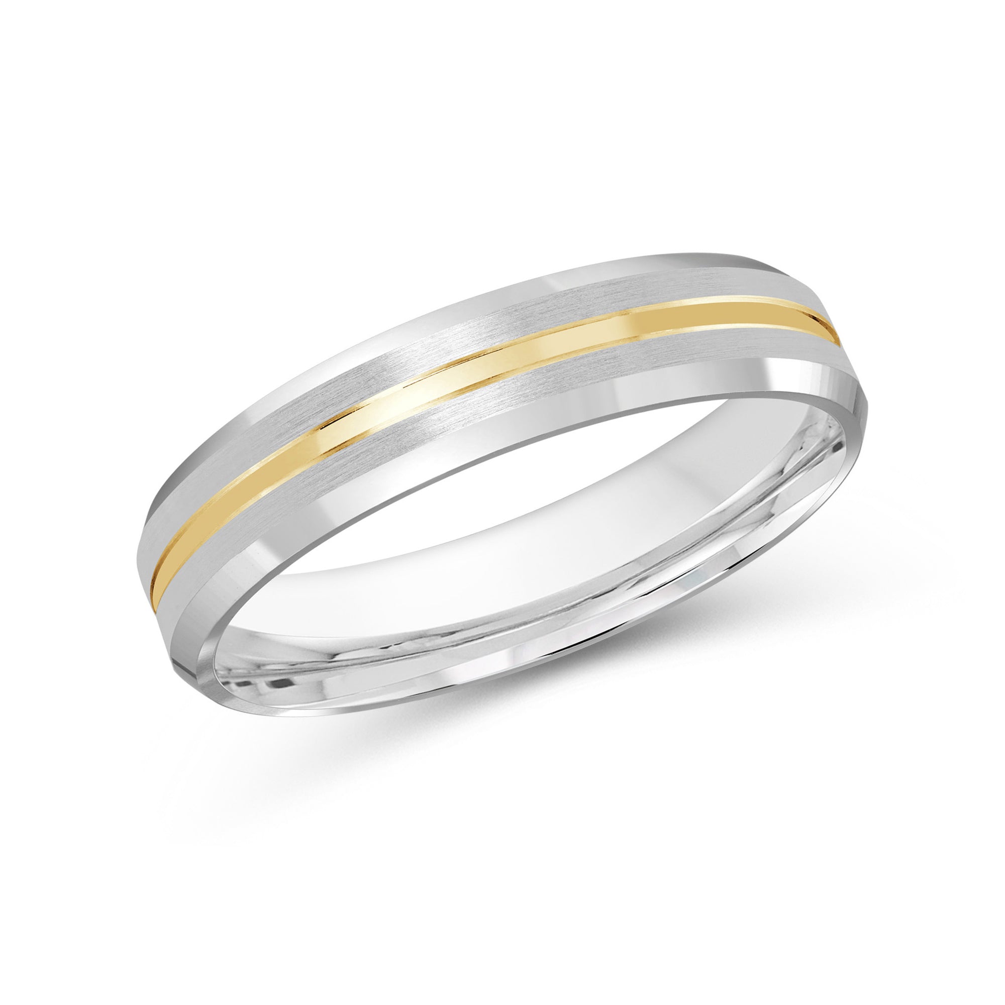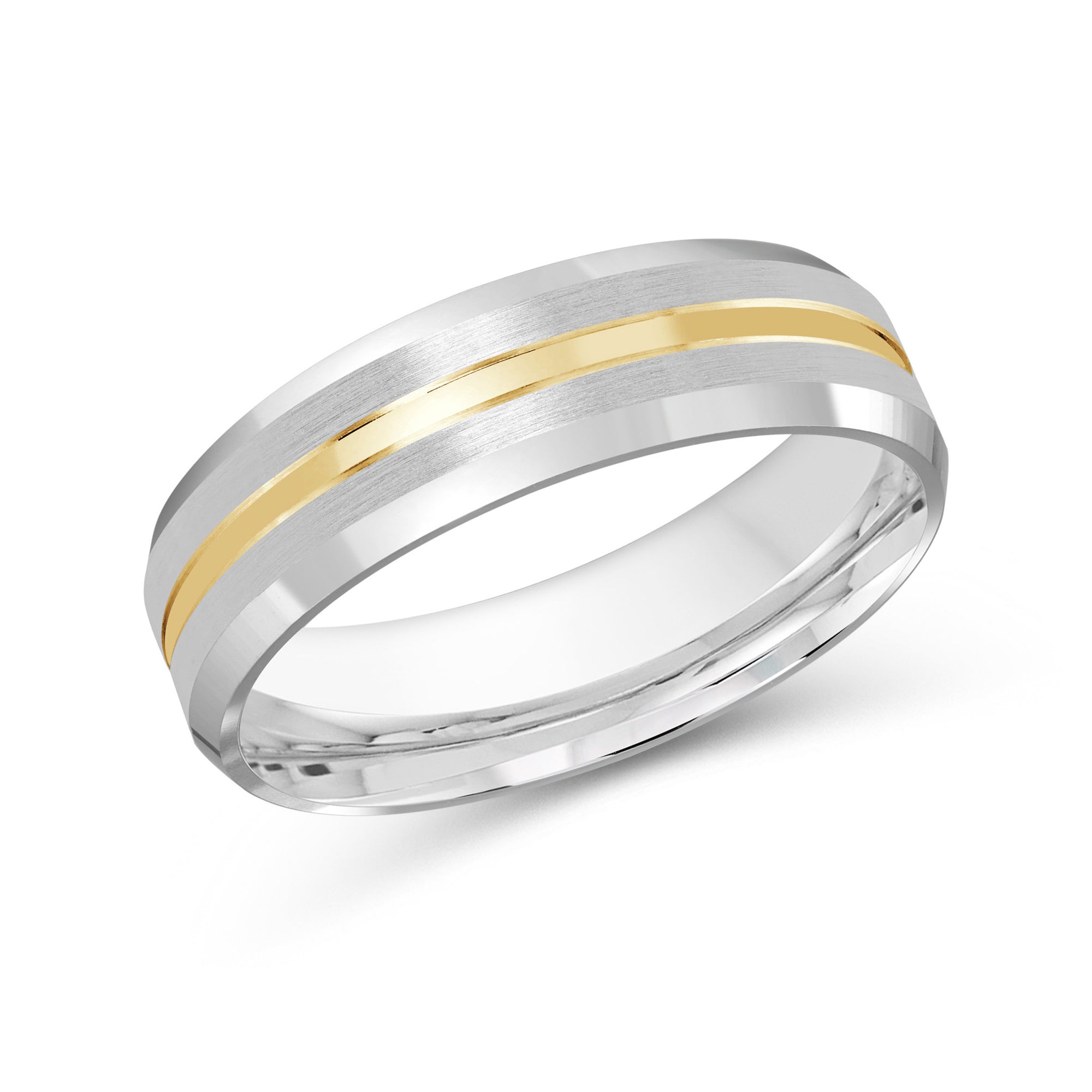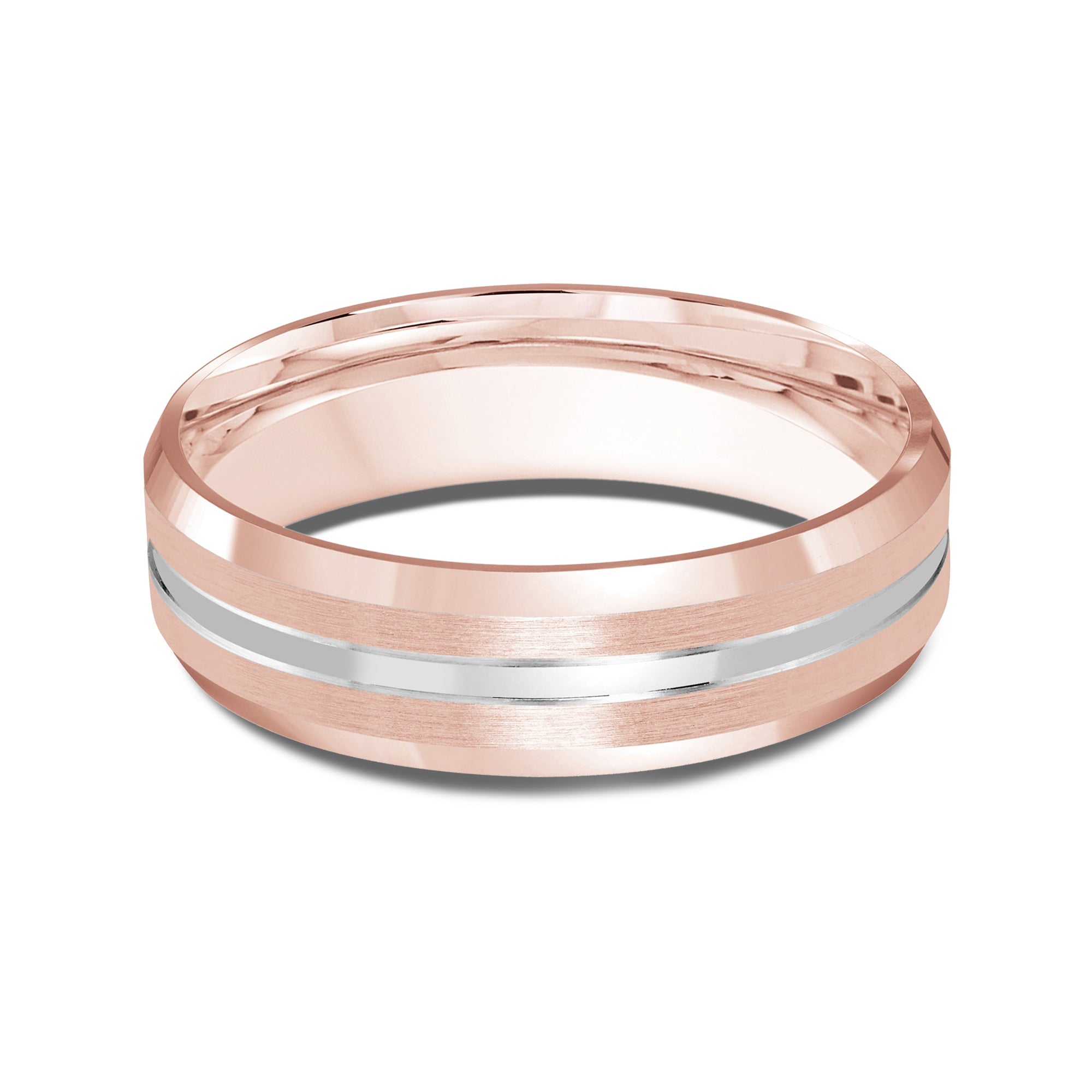 This satin-finished ring features a classic profile and a textured shine. The beveled edges and grooved center add interest to this men's band. The ring's inner wall is curved for a comfortable fit.