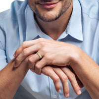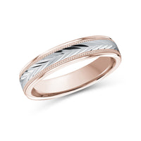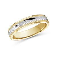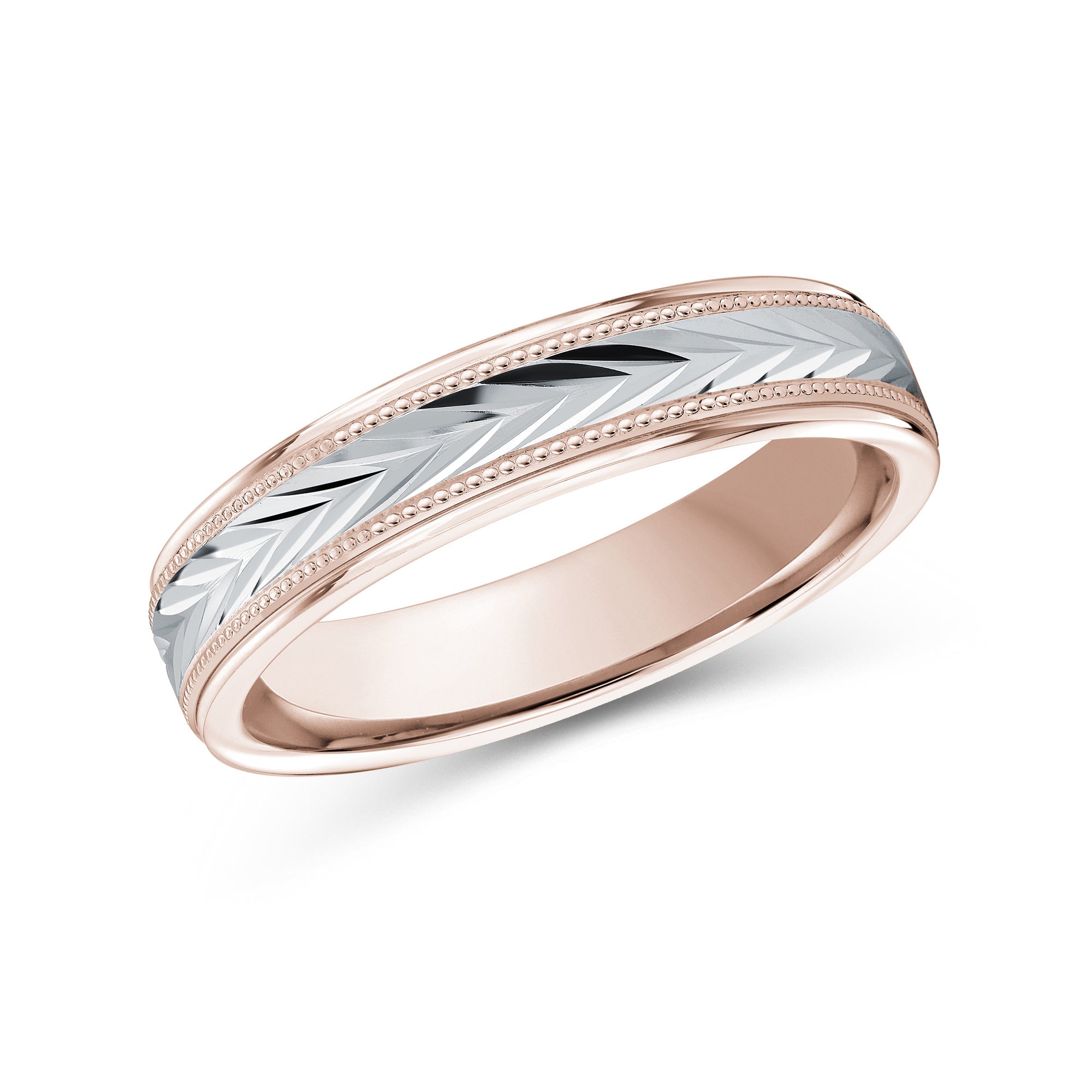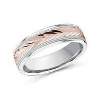Fit for a man of style. This two-tone ring is detailed with a horizontally laid-out chevron pattern on a satin-finished band. A milgrain decoration borders the chevron pattern, lending a unique look to the ring.