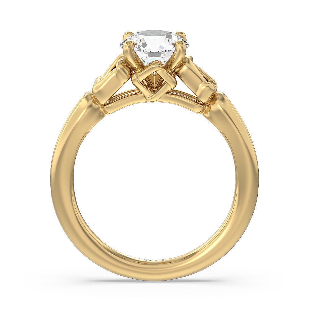 Inspired by Celtic knots symbolizing love and commitment, this vintage-style ring features a half-split shank and a four-twist knot to complement the four-prong setting of the dazzling center stone. Set in gold.