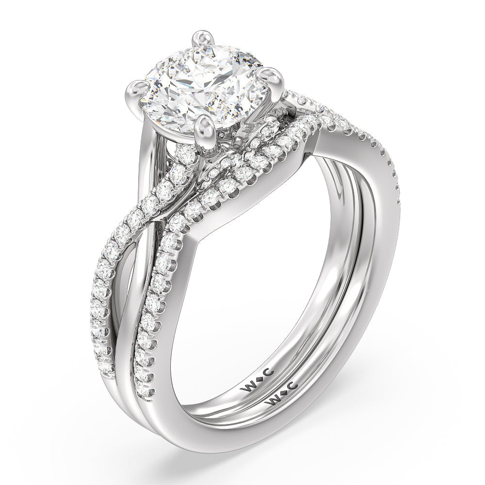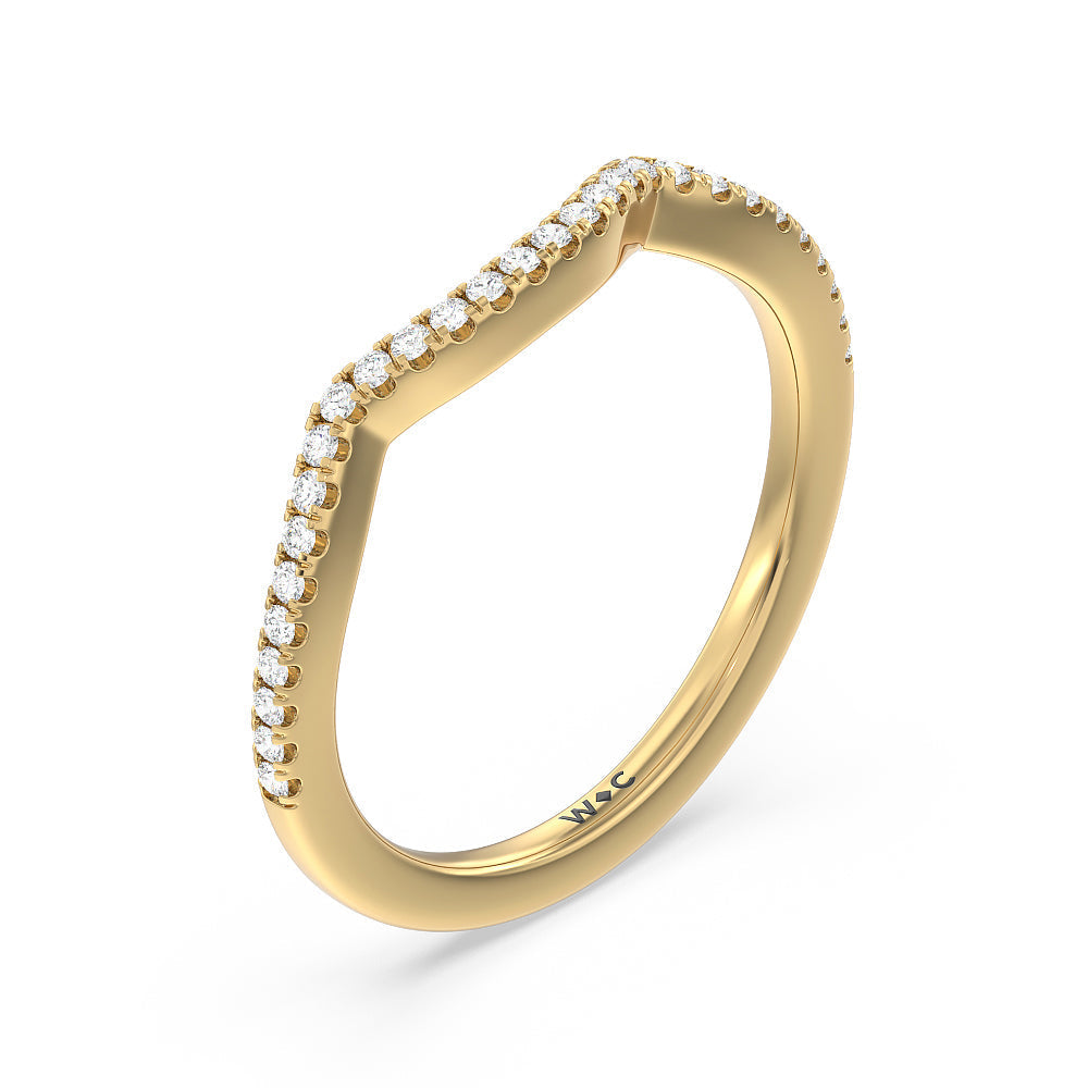 This curved diamond set wedding band is perfectly contoured to complement our vintage glamour ribbon swirl engagement ring for a simple and sophisticated look.