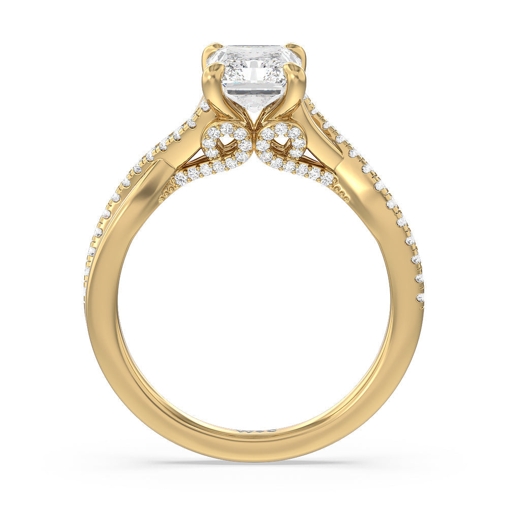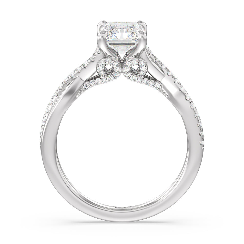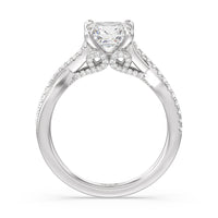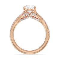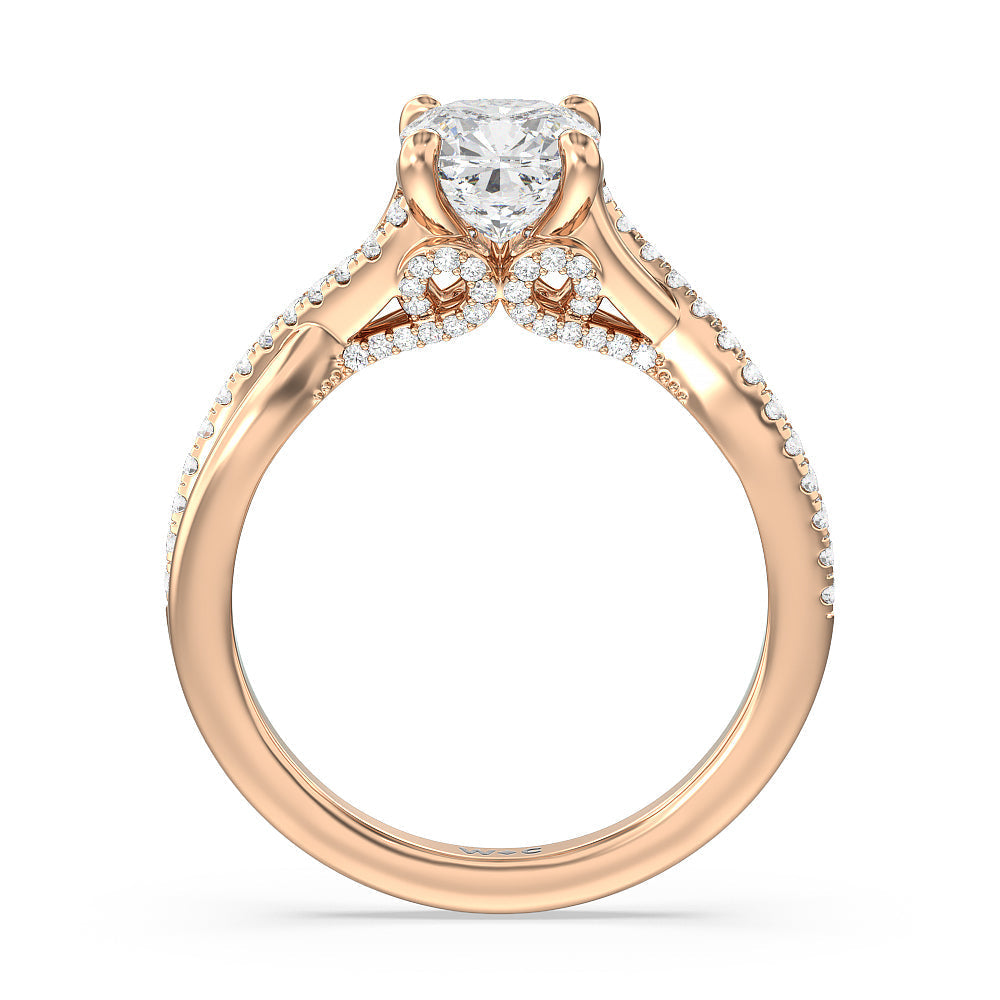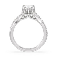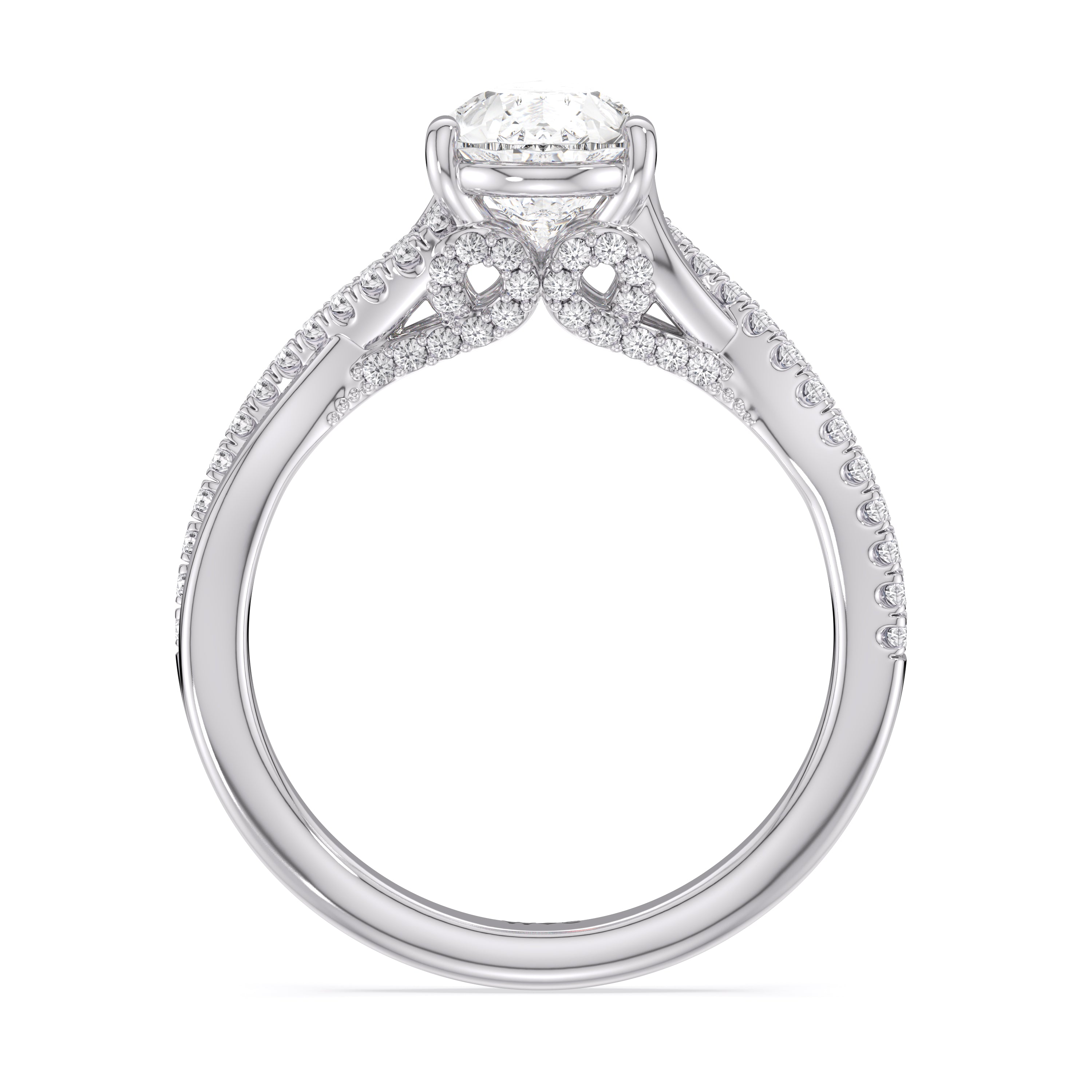 As a symbol of commitment, this elegant vintage-style ring features a beautifully shaped split shank that crosses and joins to accentuate the center stone. Filigree styling on the front view and beaded detail on the band add extra detail to stunning effect.