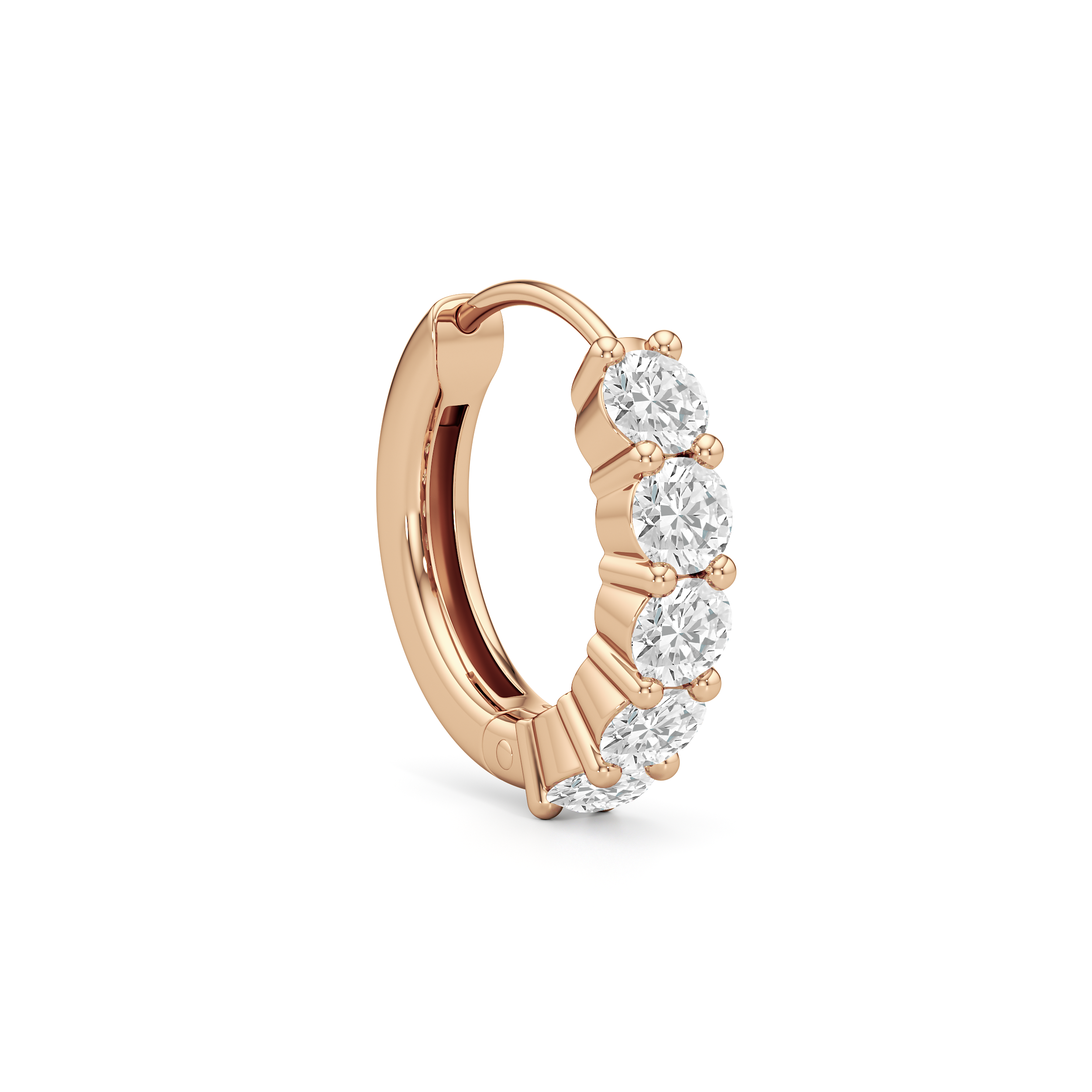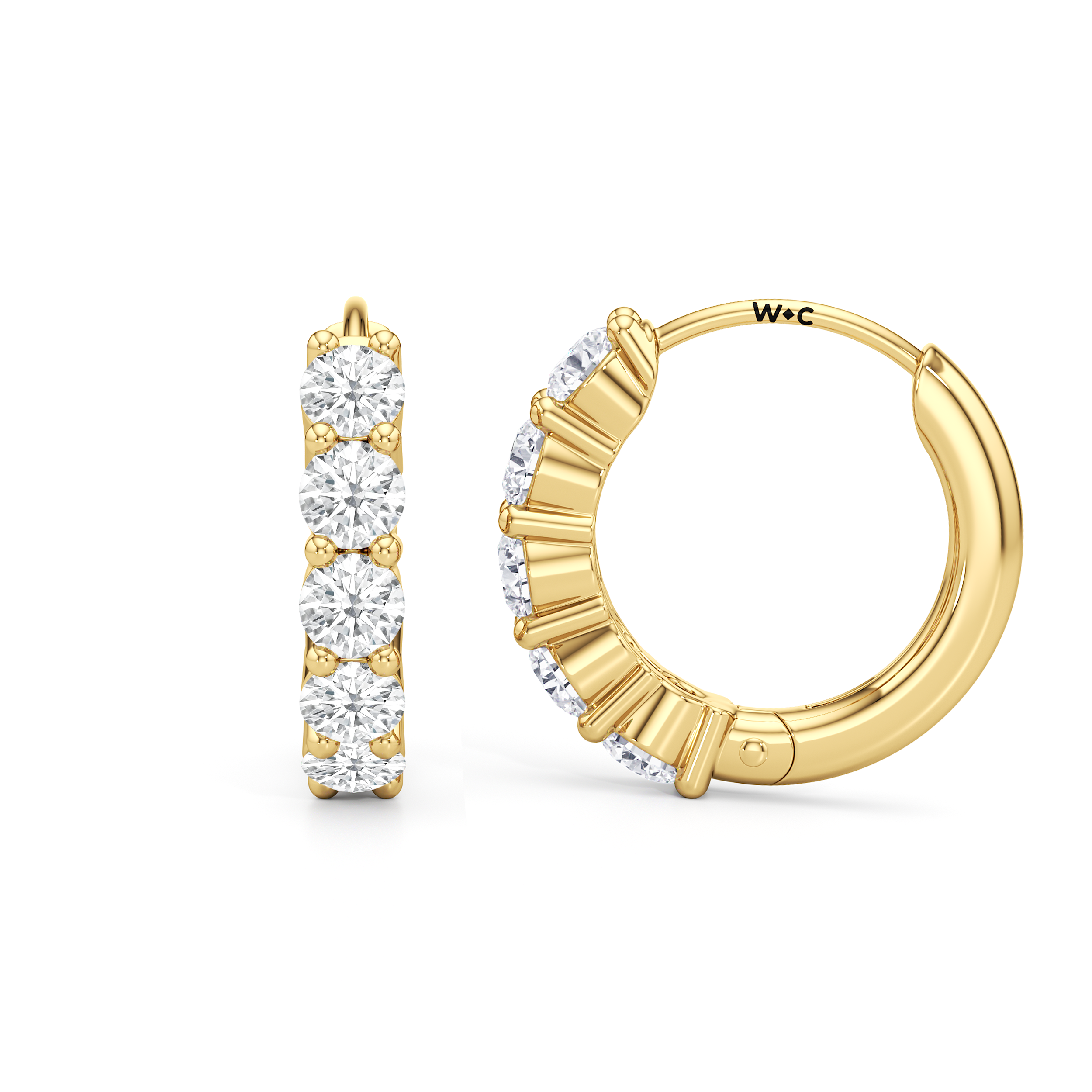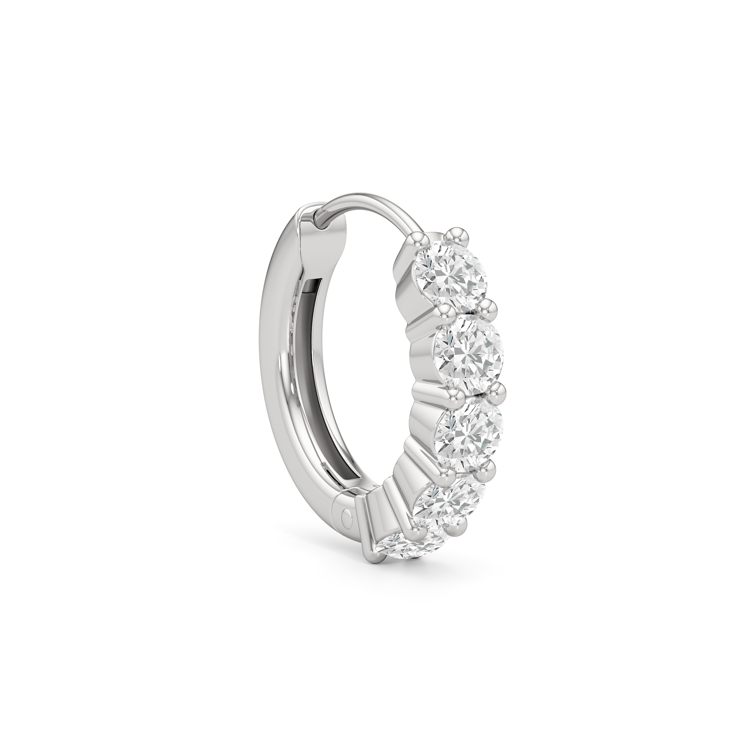 Willow bends, flows, and follows your rhythm. The kind you’ll wear all day—without a second thought. These petite hoops hug the ear just right. The front contour comes lined with diamonds on shared prongs, giving the illusion of an uninterrupted line of sparkle.